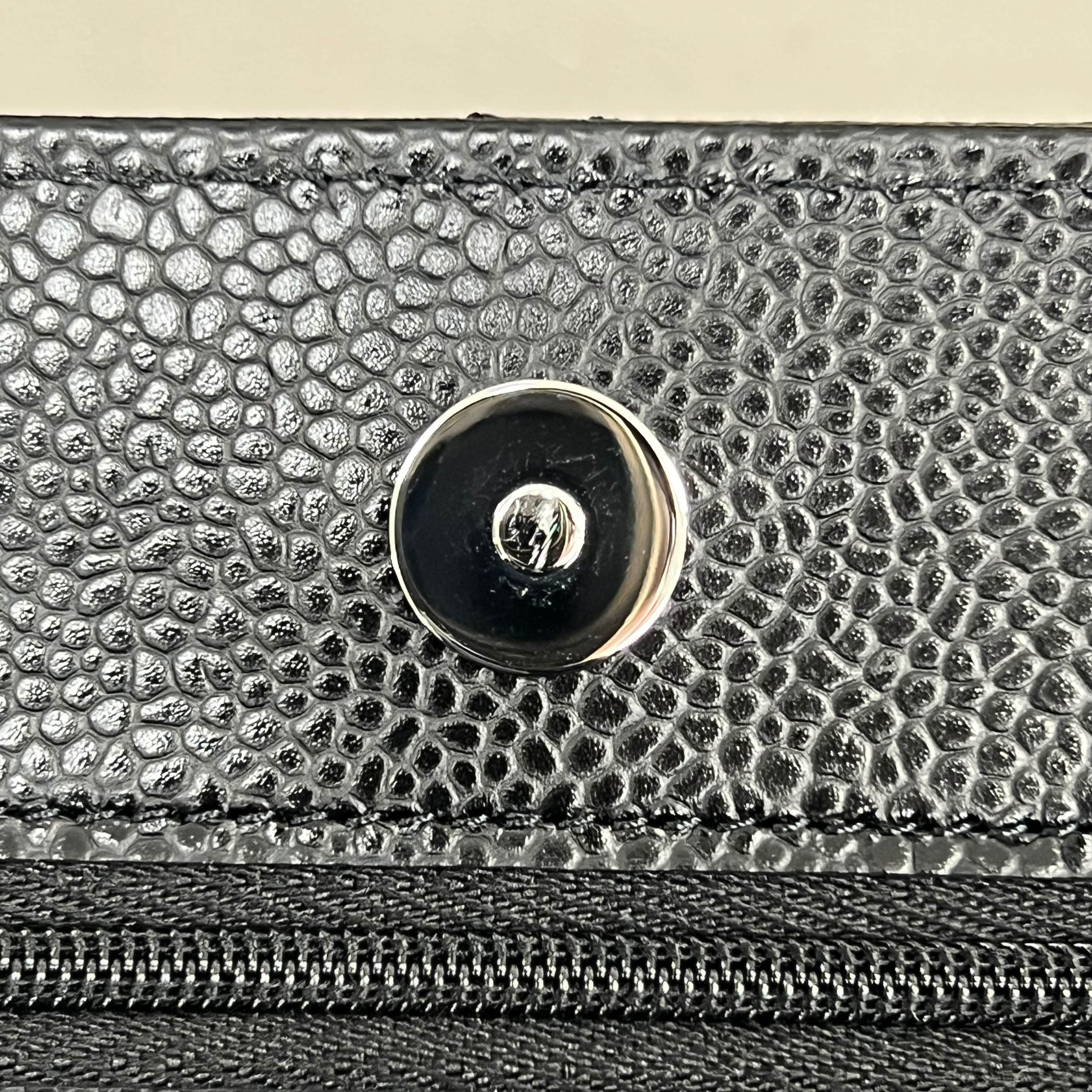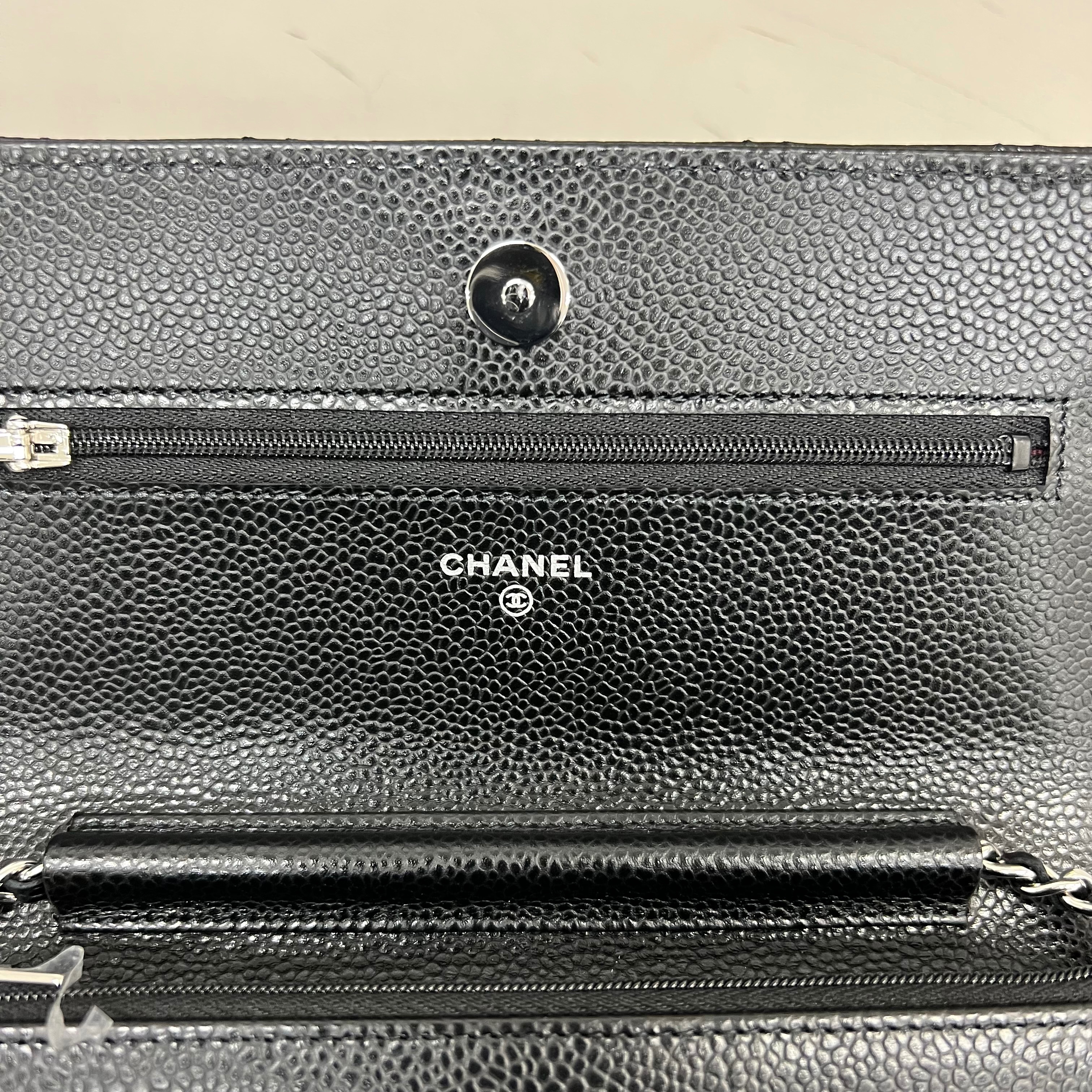 샤넬 클래식 체인 지갑 그레인드 카프스킨 & 실버 메탈 블랙