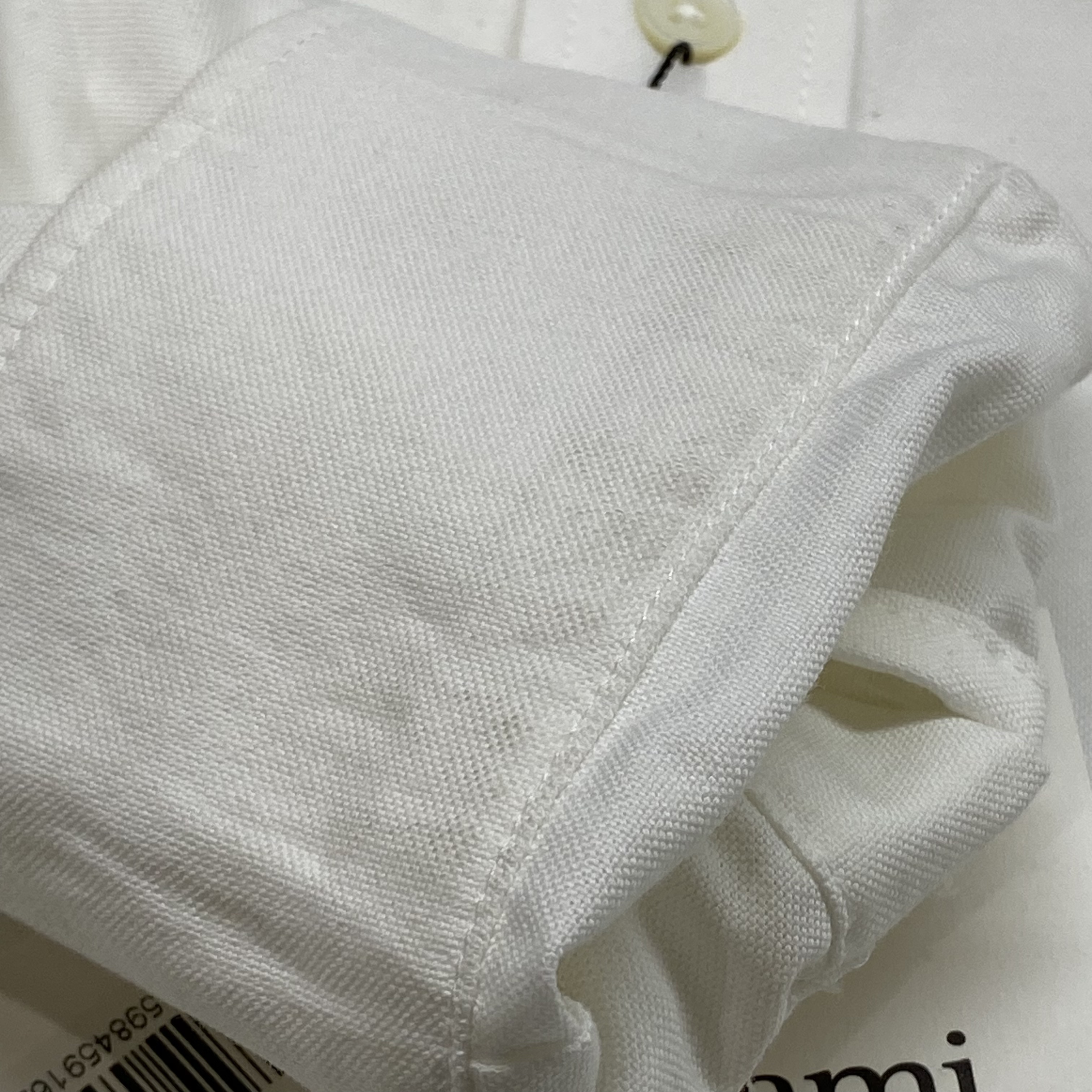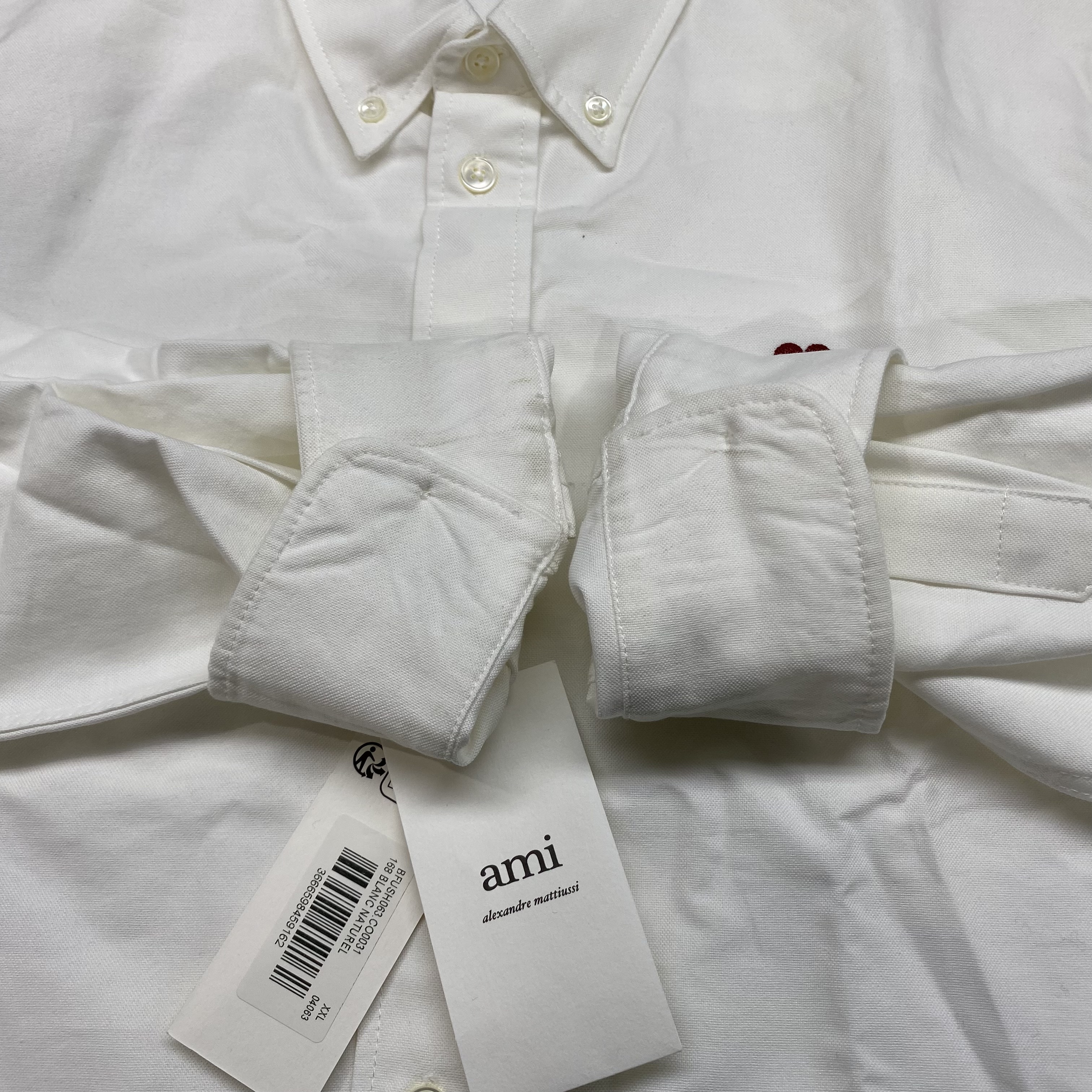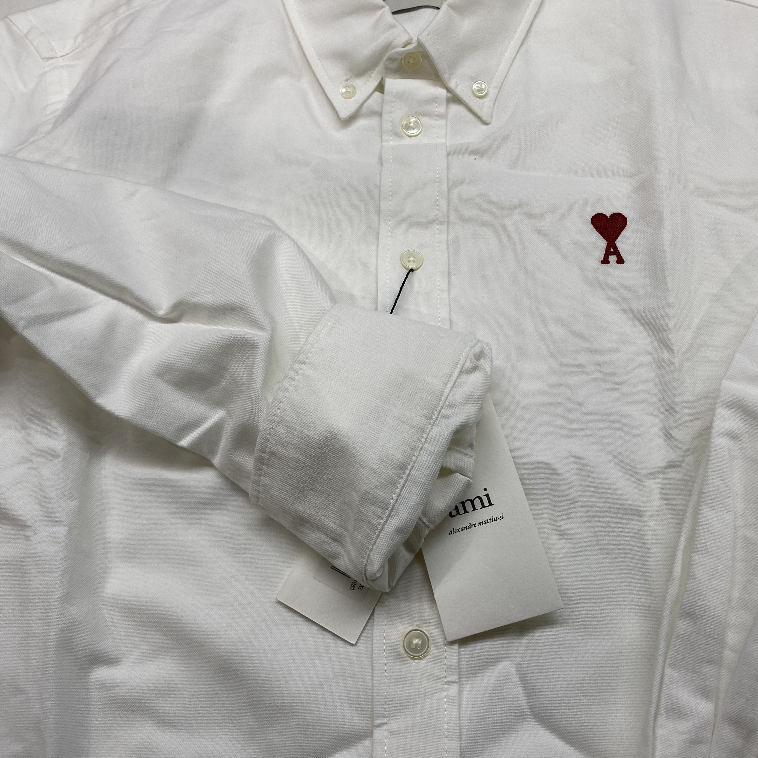 아미 스몰 하트 로고 코튼 옥스포드 버튼 다운 셔츠 내츄럴 화이트