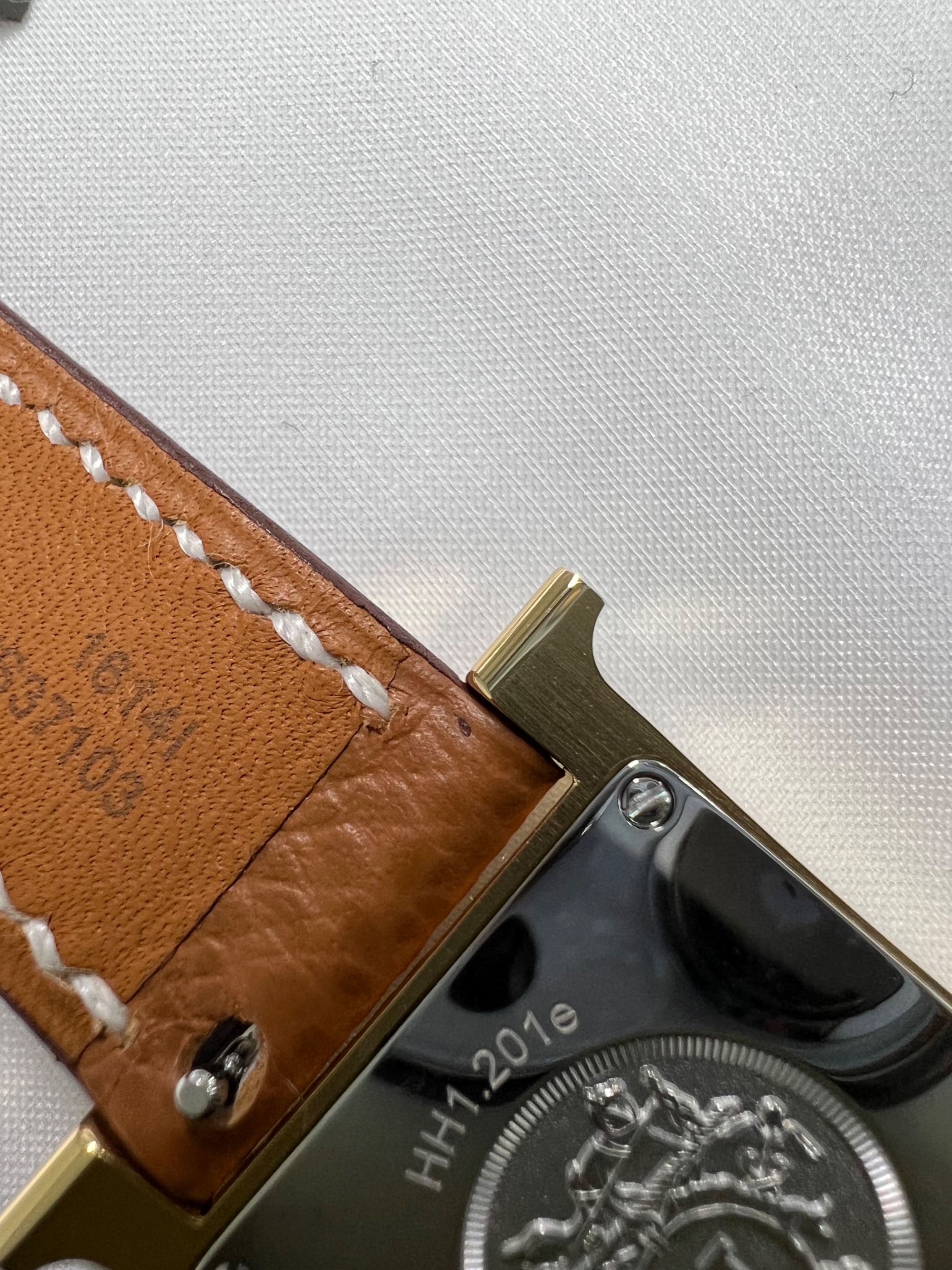 에르메스 H 아워 워치 스몰 골드 앱송 스트랩 & 옐로우 골드 스틸