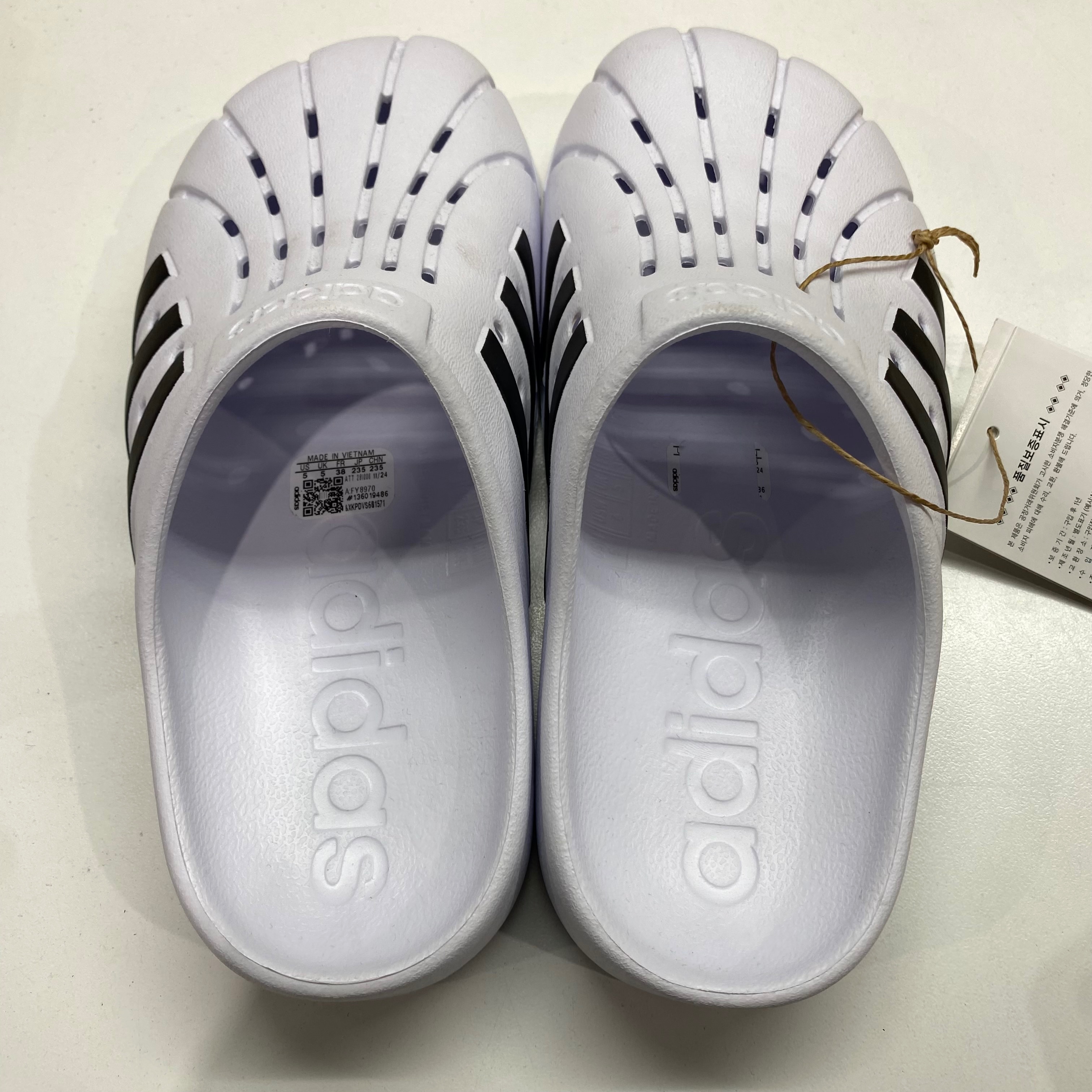 아디다스 아딜렛 클로그 화이트 블랙