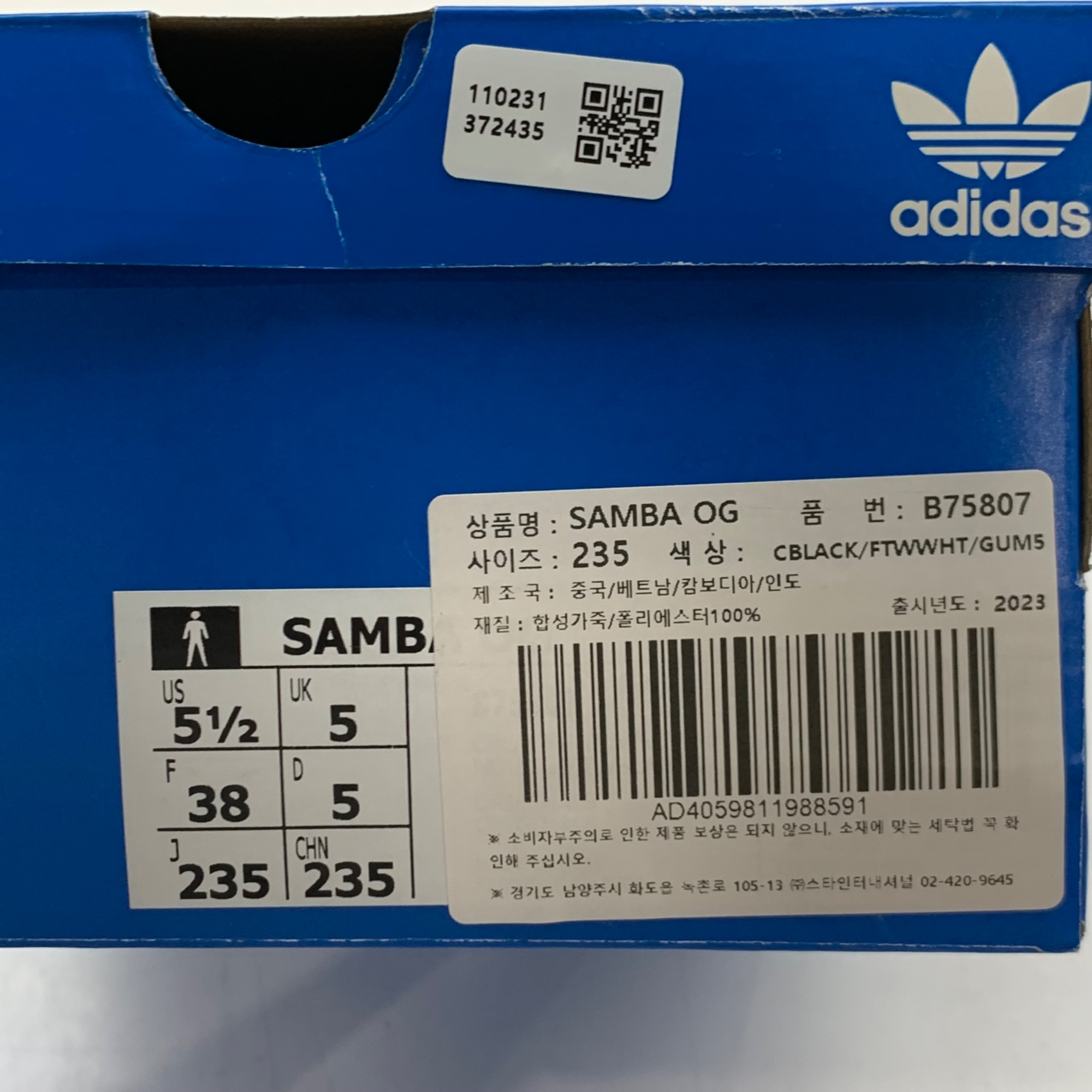 아디다스 삼바 OG 블랙 화이트 검