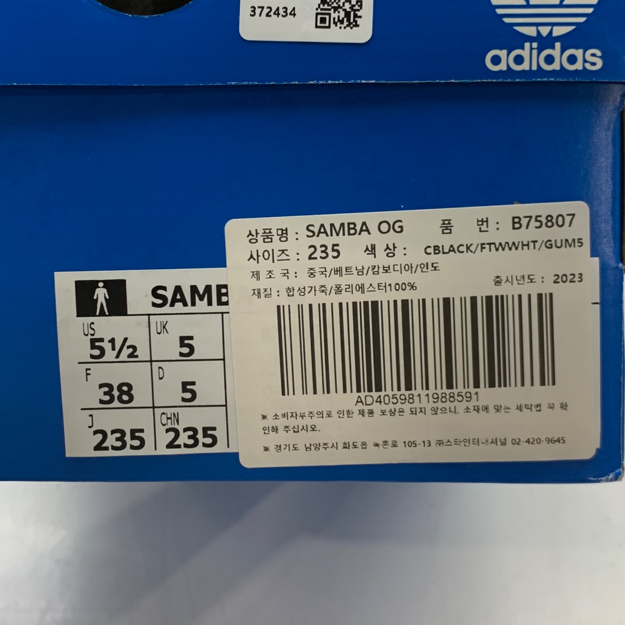 아디다스 삼바 OG 블랙 화이트 검