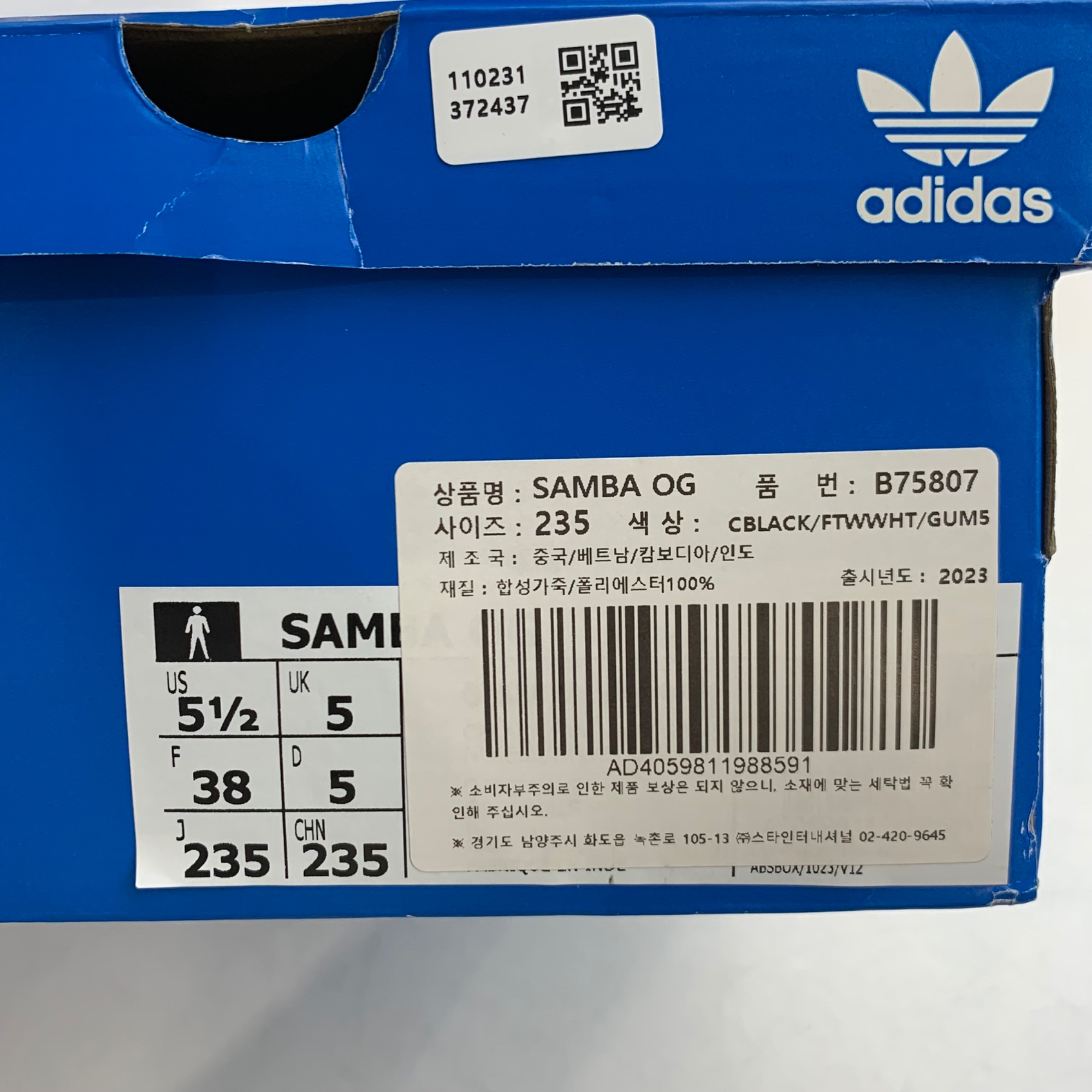아디다스 삼바 OG 블랙 화이트 검