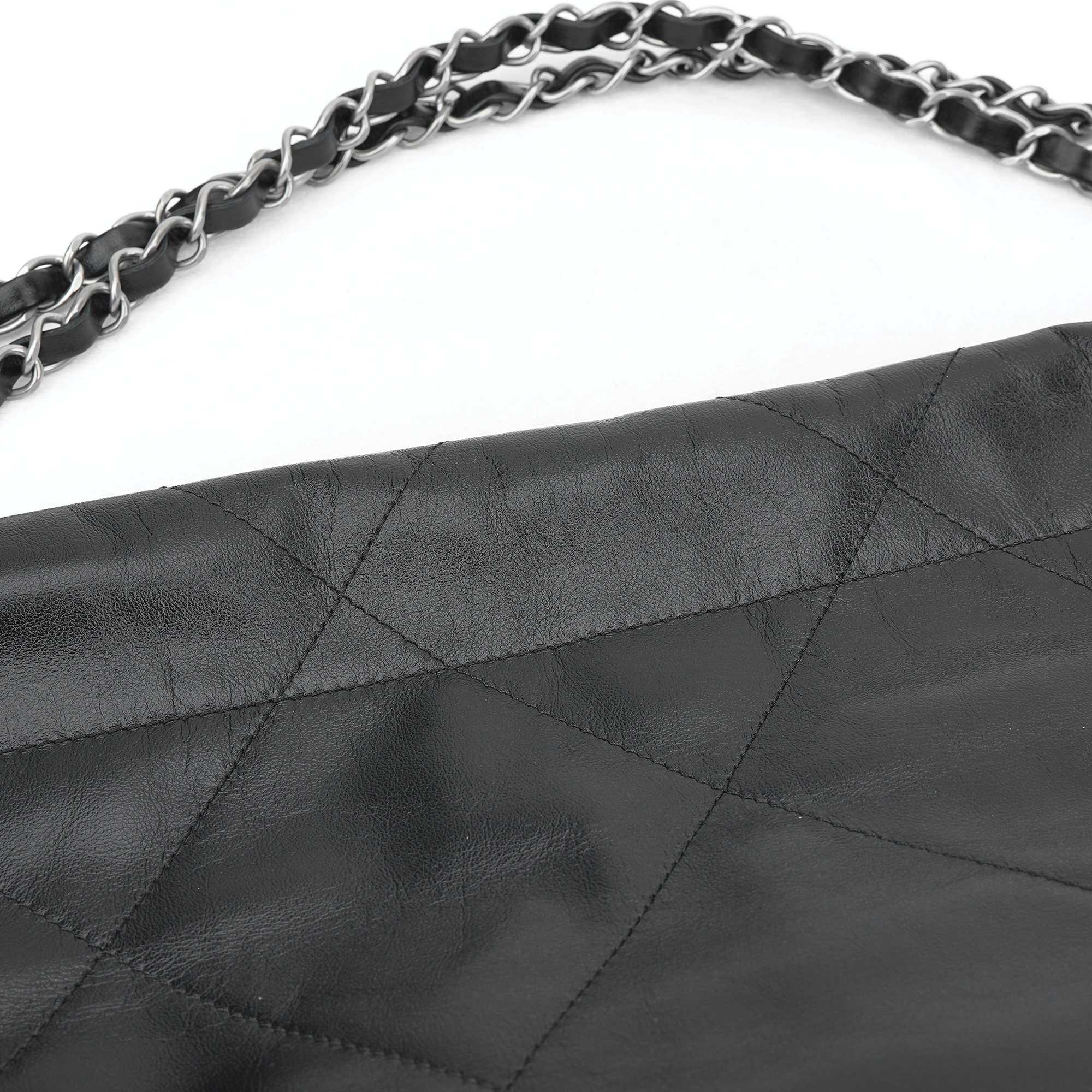 샤넬 22 스몰 핸드백 샤이니 카프스킨 & 실버 메탈 블랙