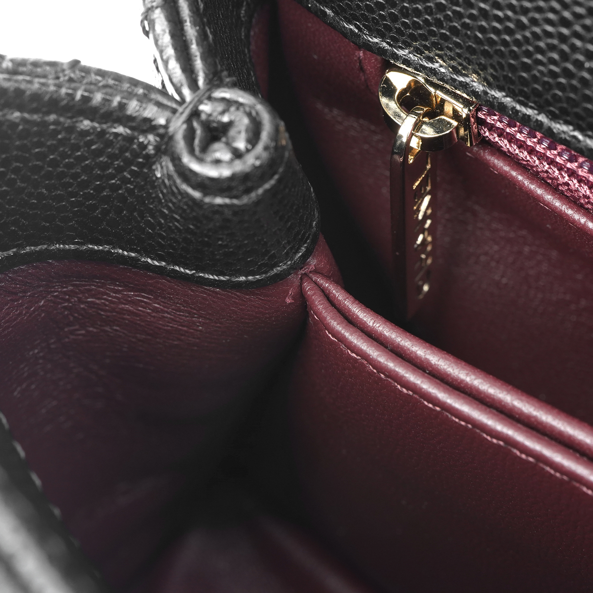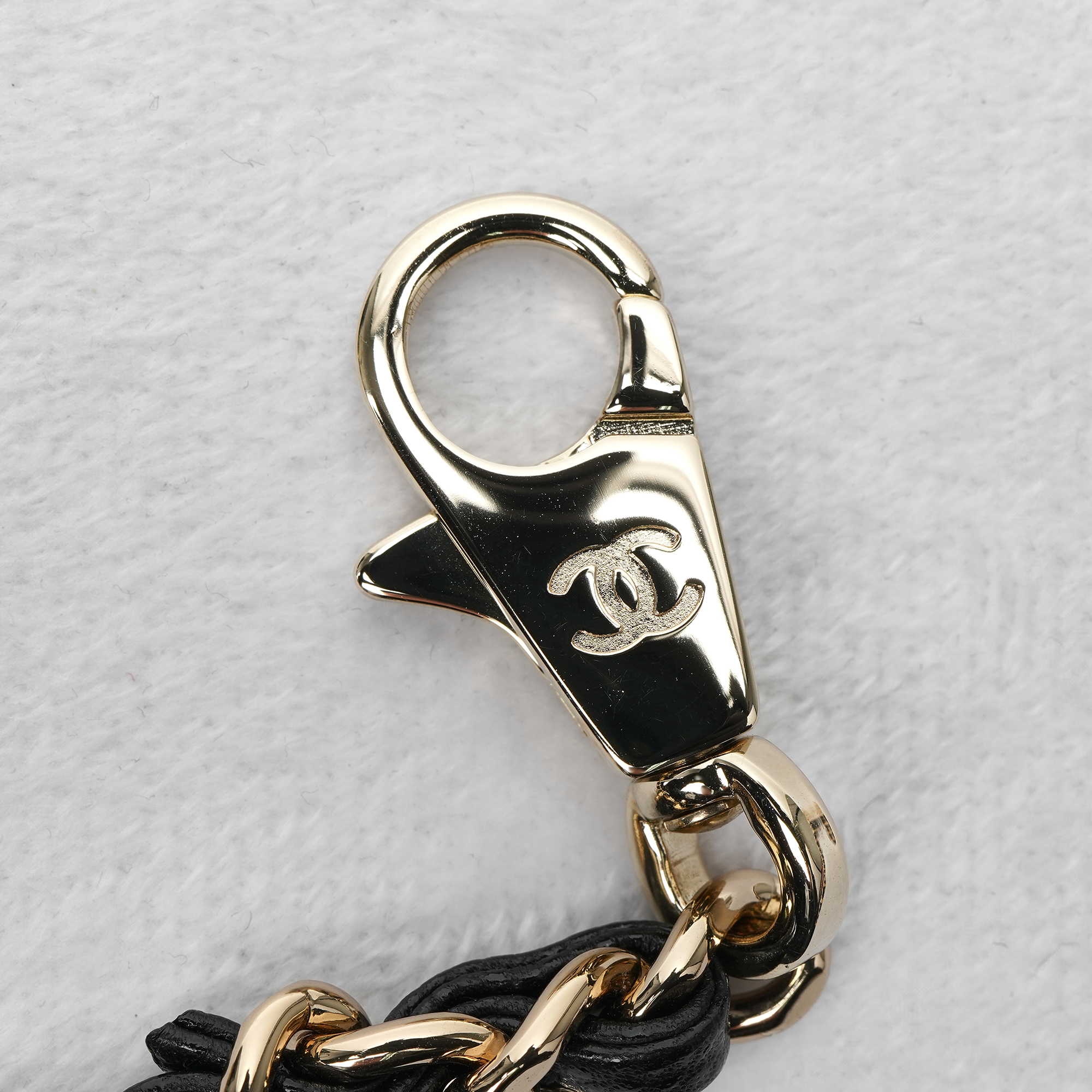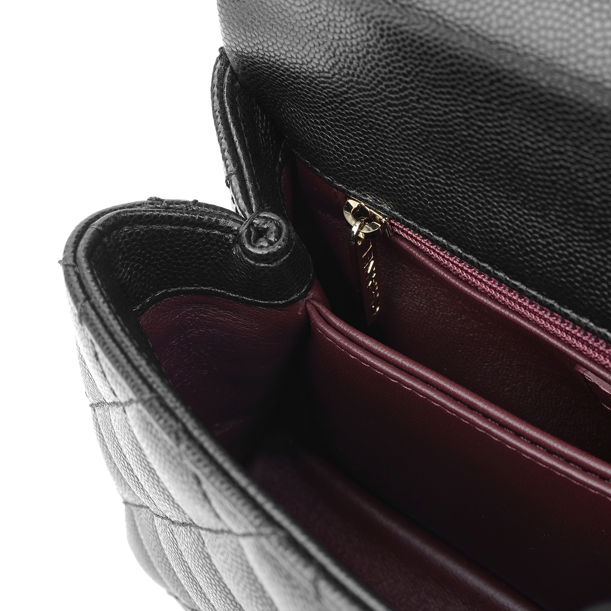 샤넬 핸들 장식의 플랩백 그레인드 카프스킨 & 골드 메탈 블랙