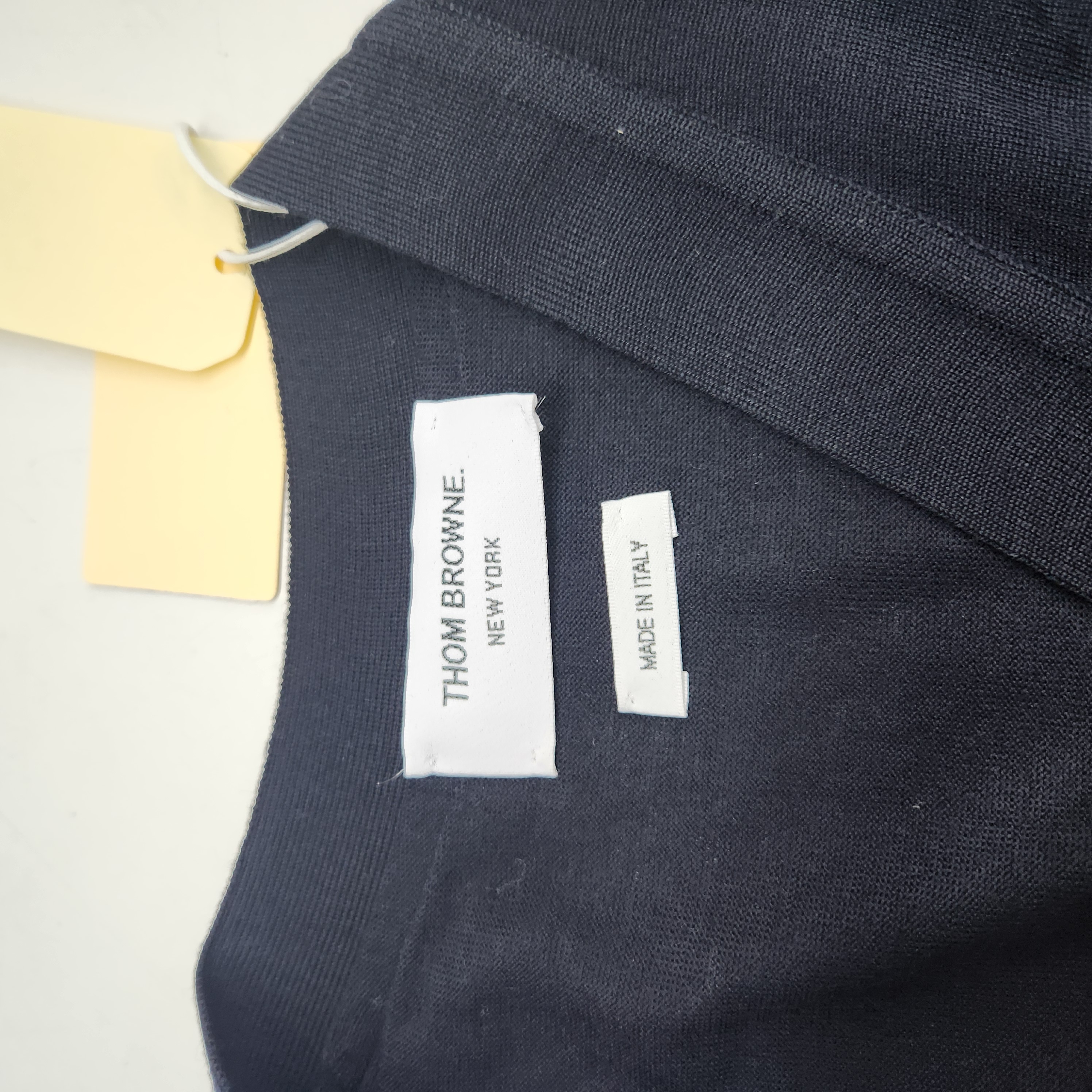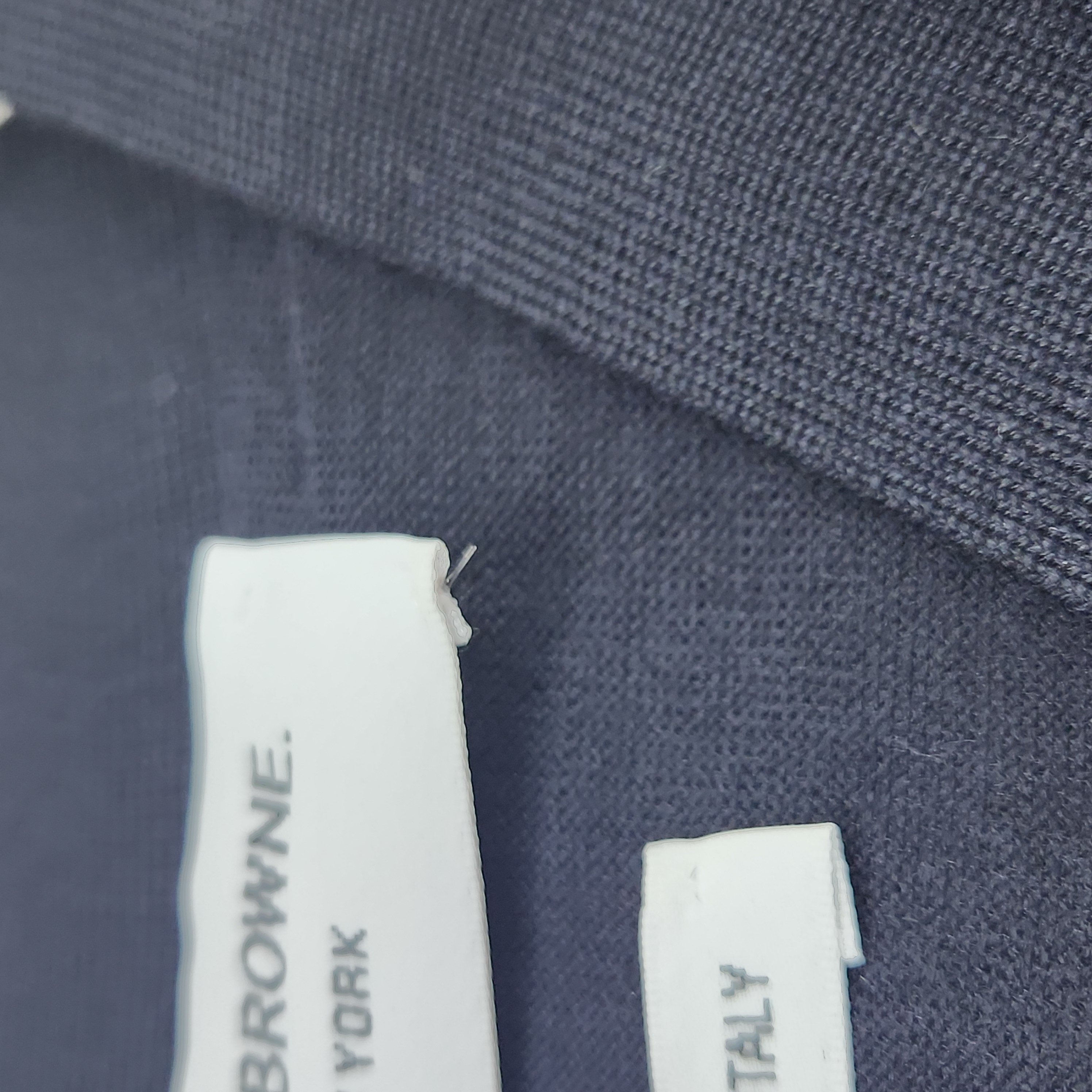 톰브라운 서스테이너블 파인 메리노 울 사선 클래식 가디건 네이비