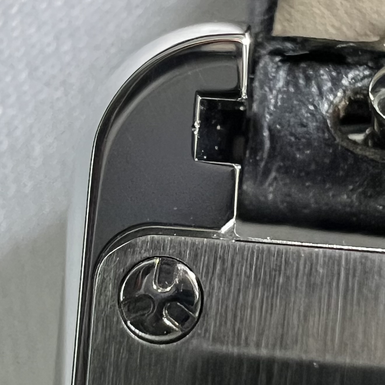 까르띠에 탱크 머스트 워치 라지 쿼츠 스틸 카프스킨 블랙