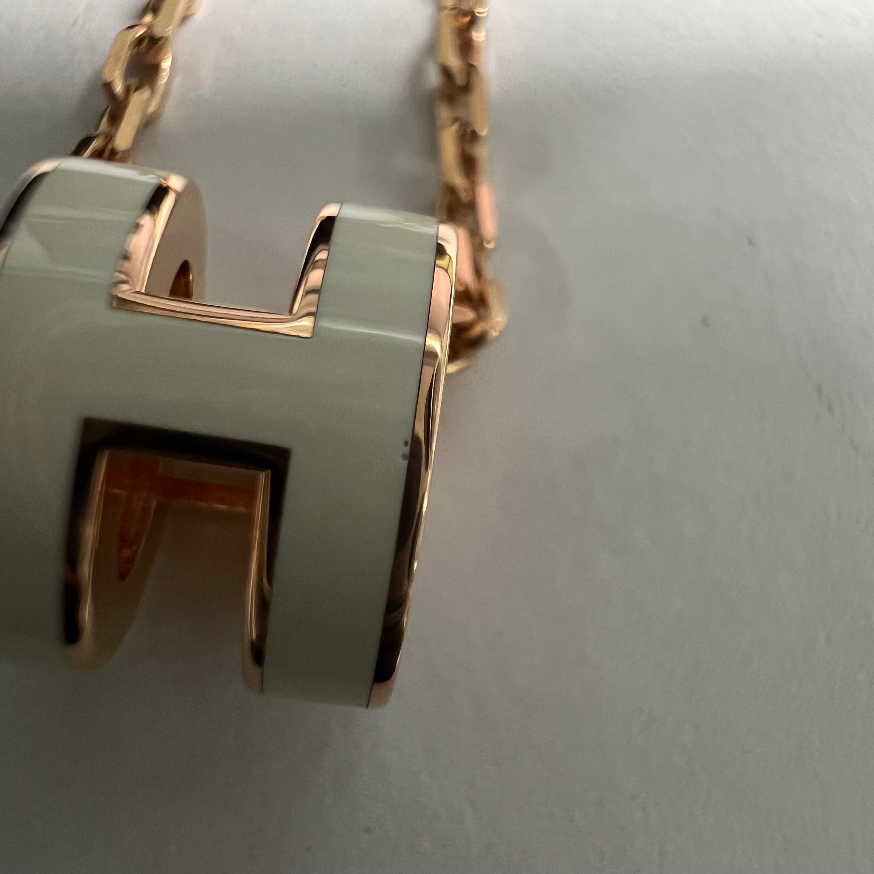 (W) Hermes Mini Pop H Pendant Rose Gold & Blanc