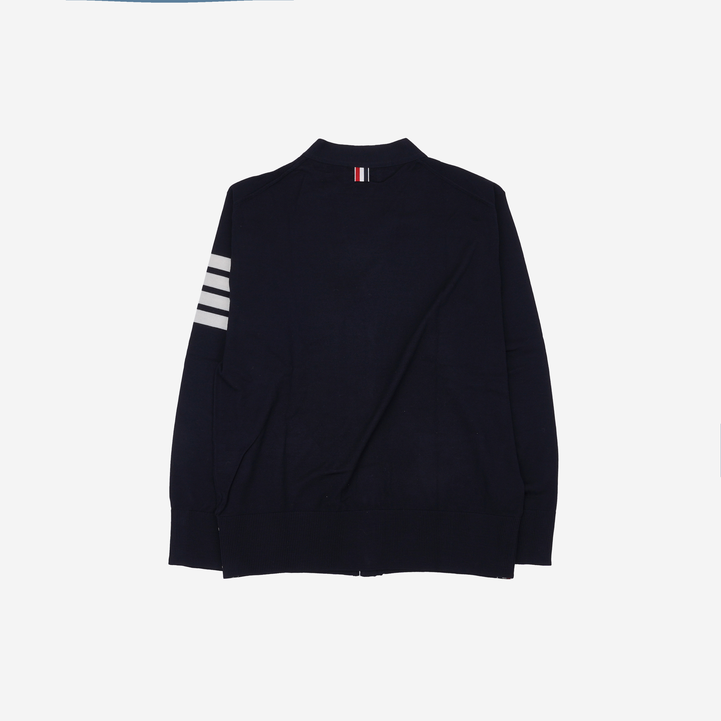 톰브라운 서스테이너블 파인 메리노 울 사선 클래식 가디건 네이비