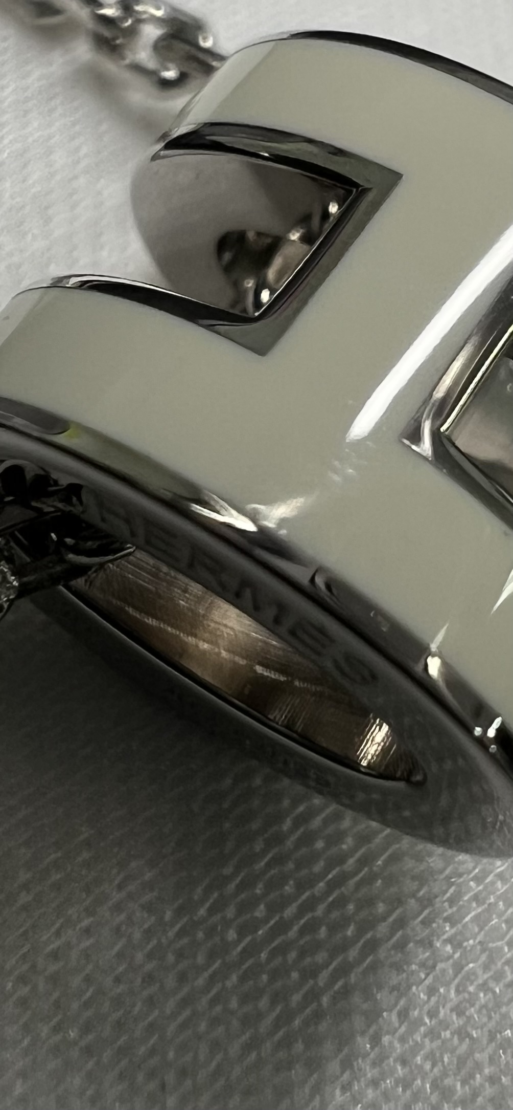 (W) Hermes Mini Pop H Pendant Palladium & Blanc
