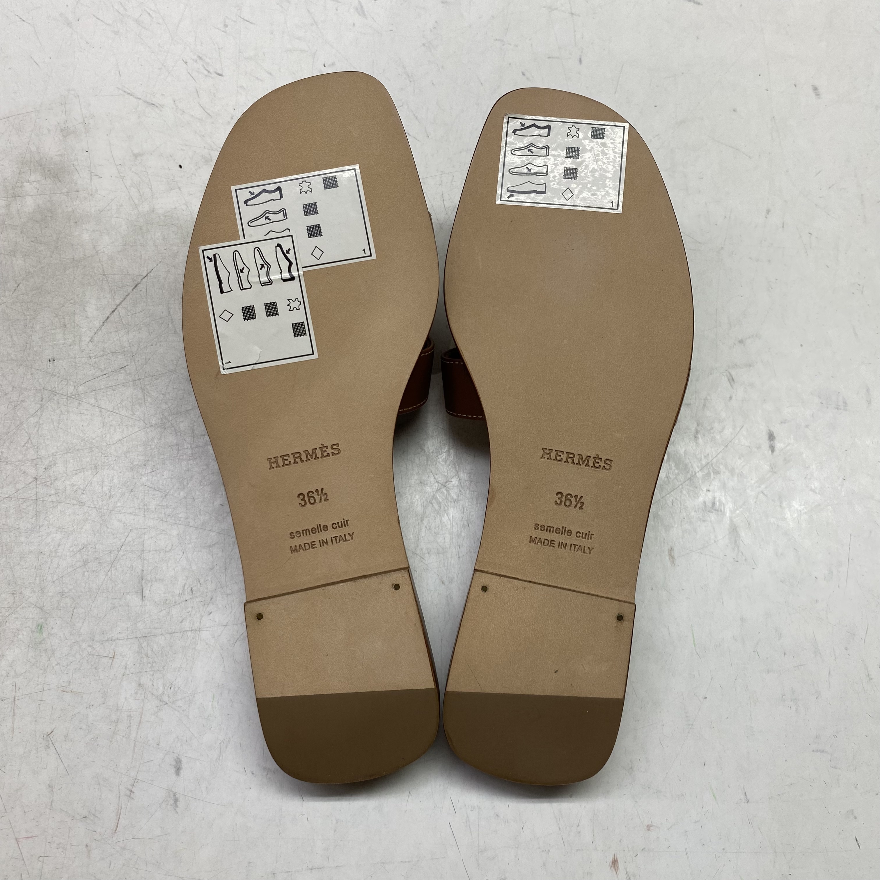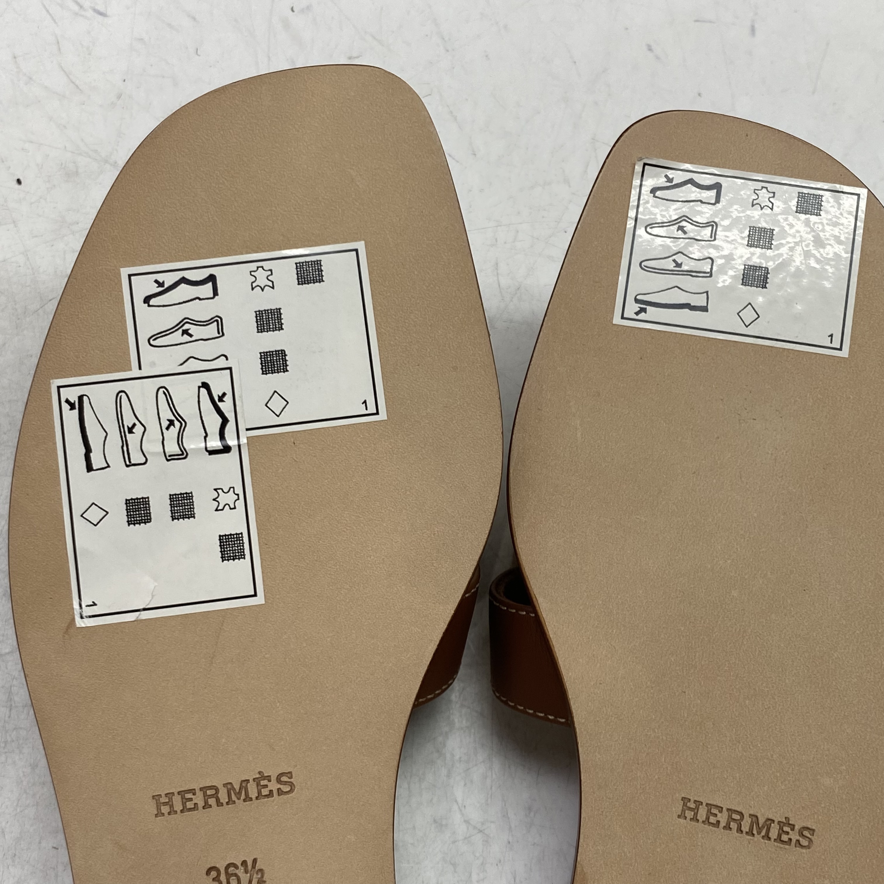(W) Hermes Oran Sandal Calfskin & Gold Piqures Ecrues