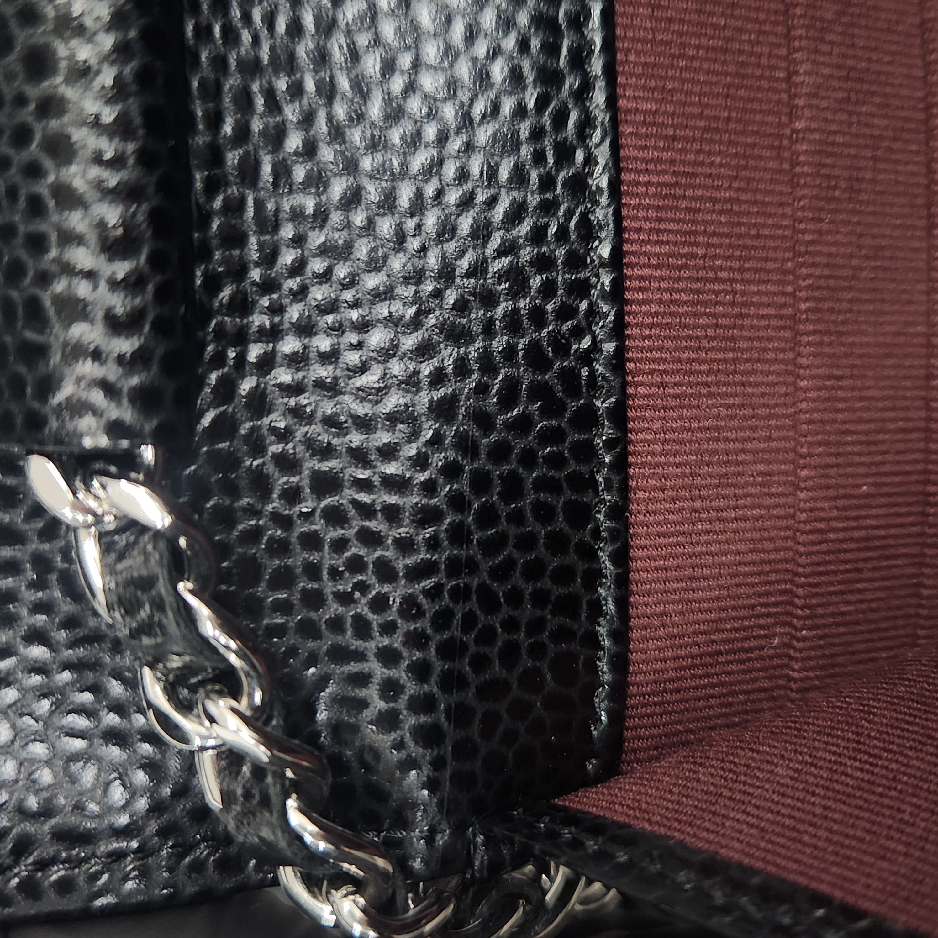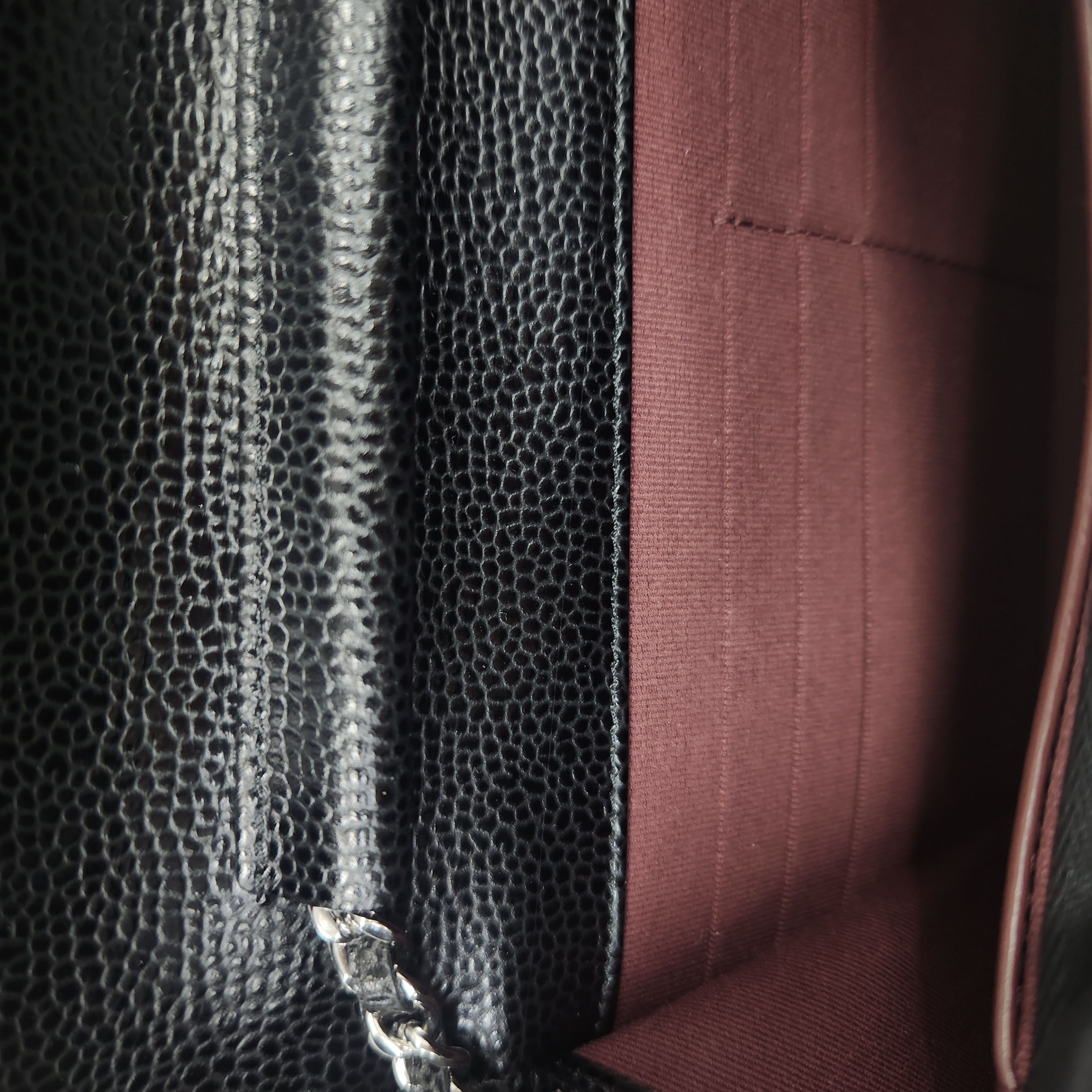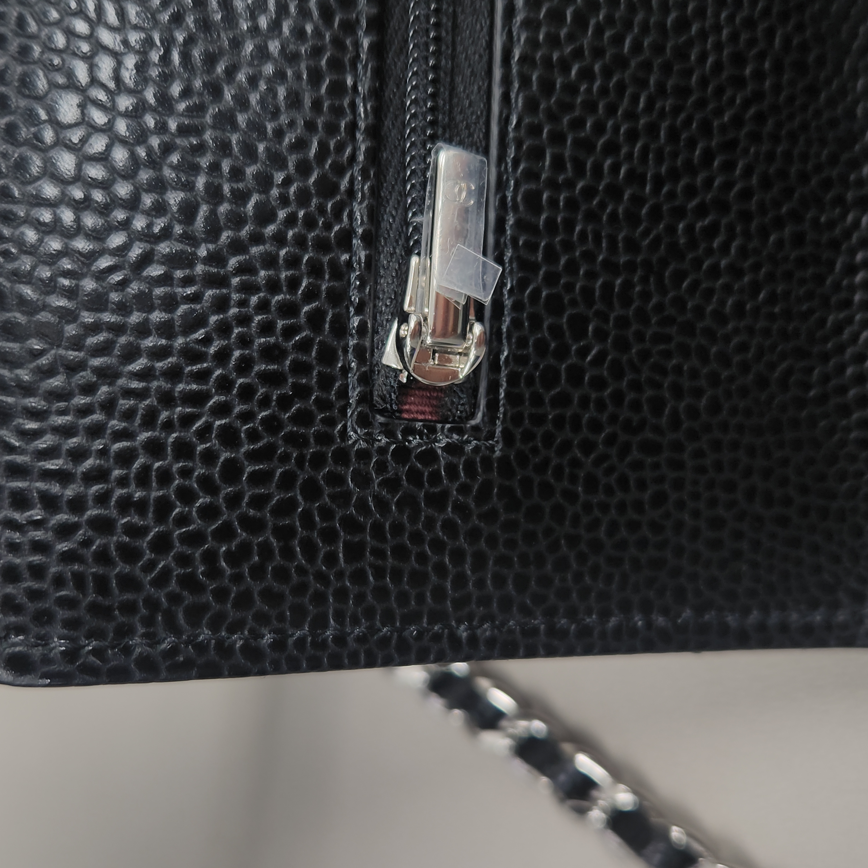 샤넬 클래식 체인 지갑 그레인드 카프스킨 & 실버 메탈 블랙