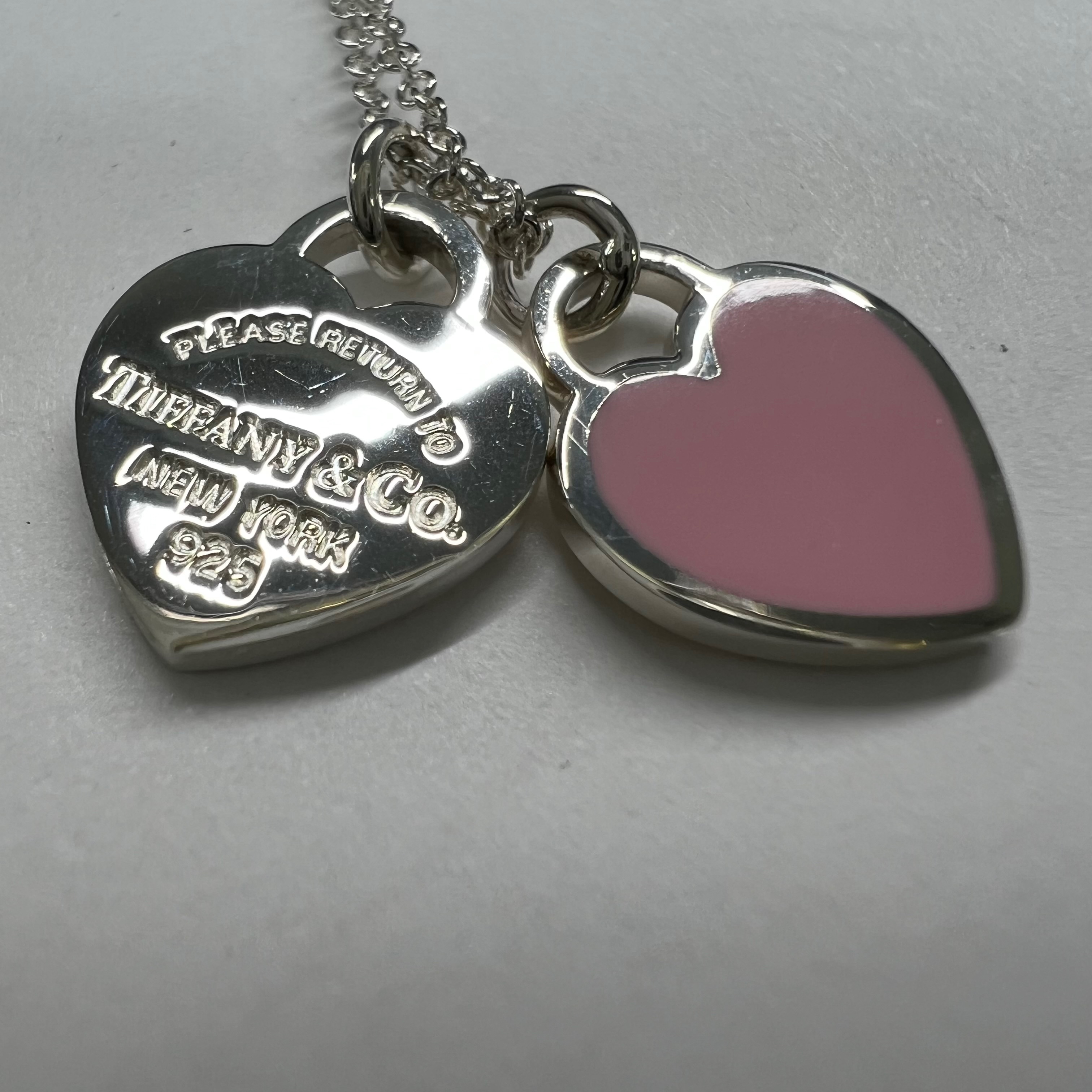 Tiffany & Co. Return To Tiffany Pink Double Heart Tag Pendant Mini Silver (16in)