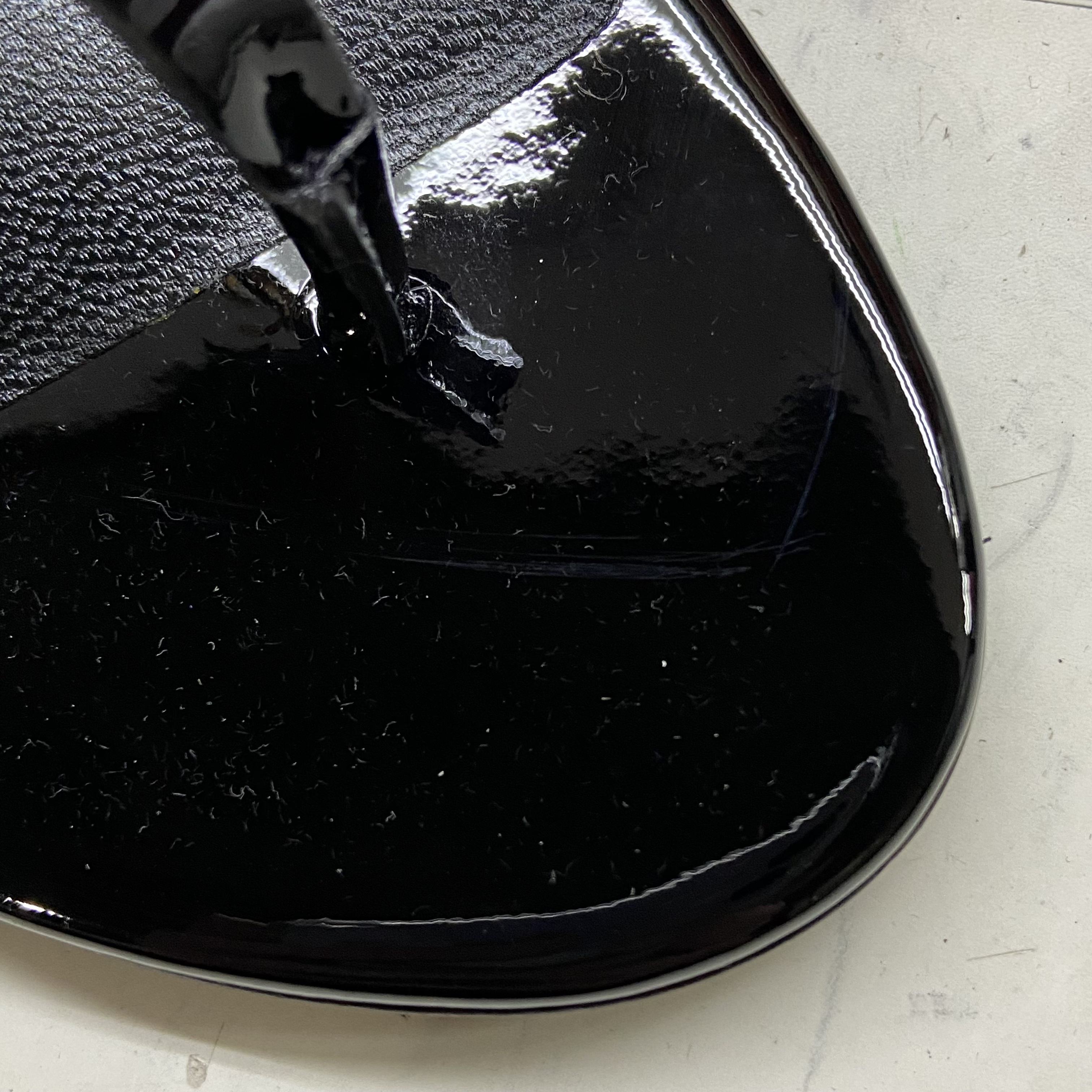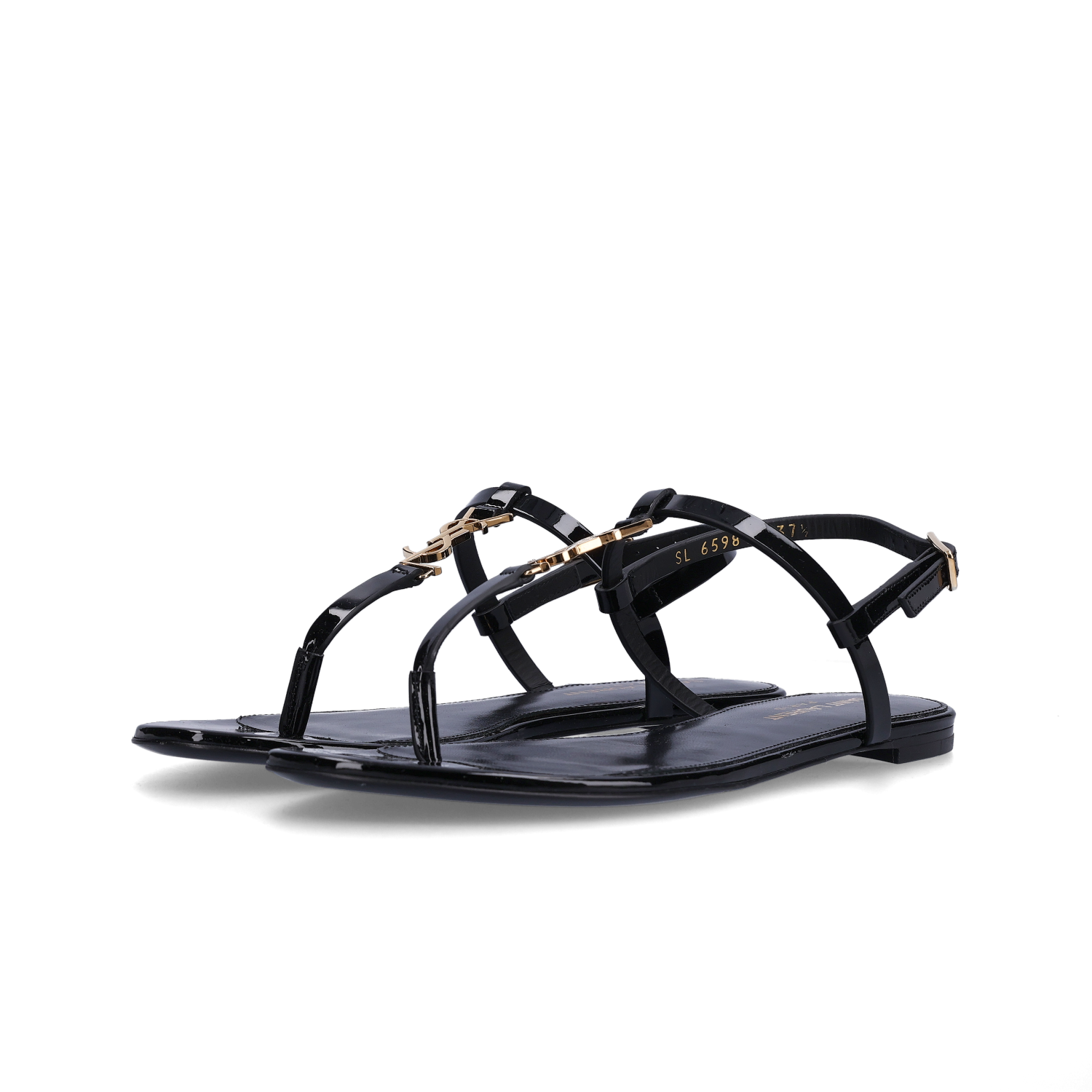 (W) 생로랑 페이턴트 레더 골드 모노그램 카산드라 플랫 샌들 블랙