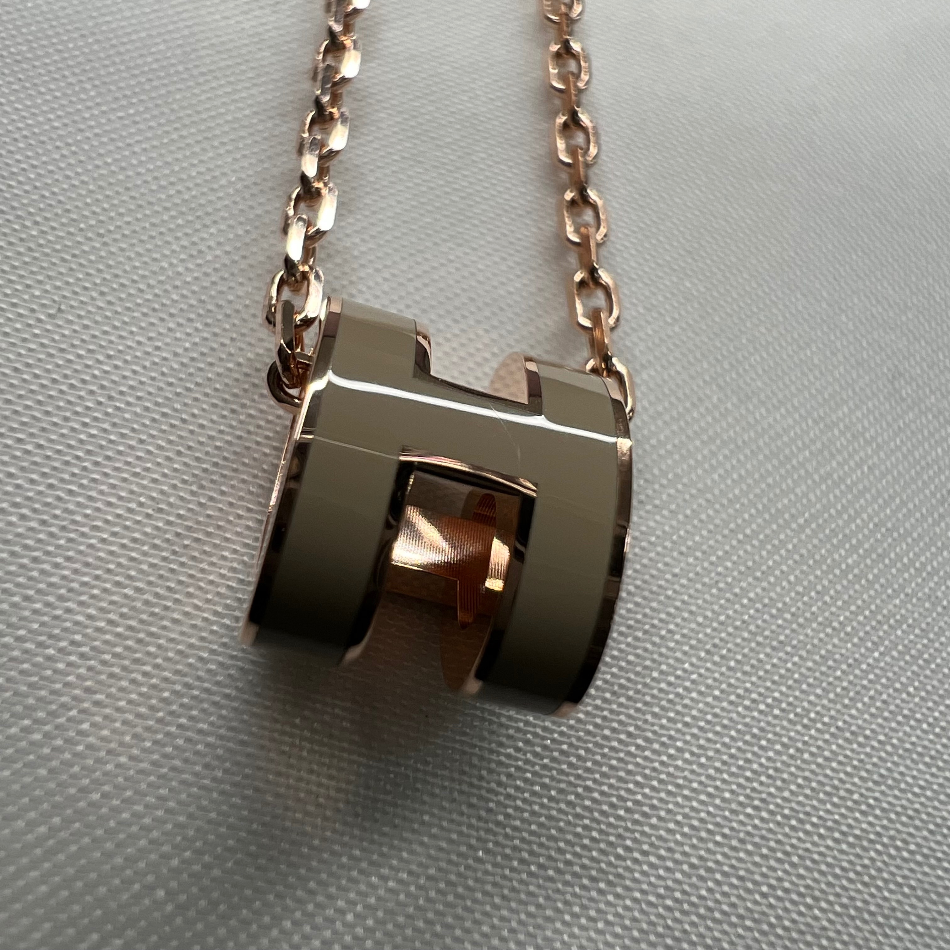 (W) Hermes Mini Pop H Pendant Rose Gold & Marron Glace