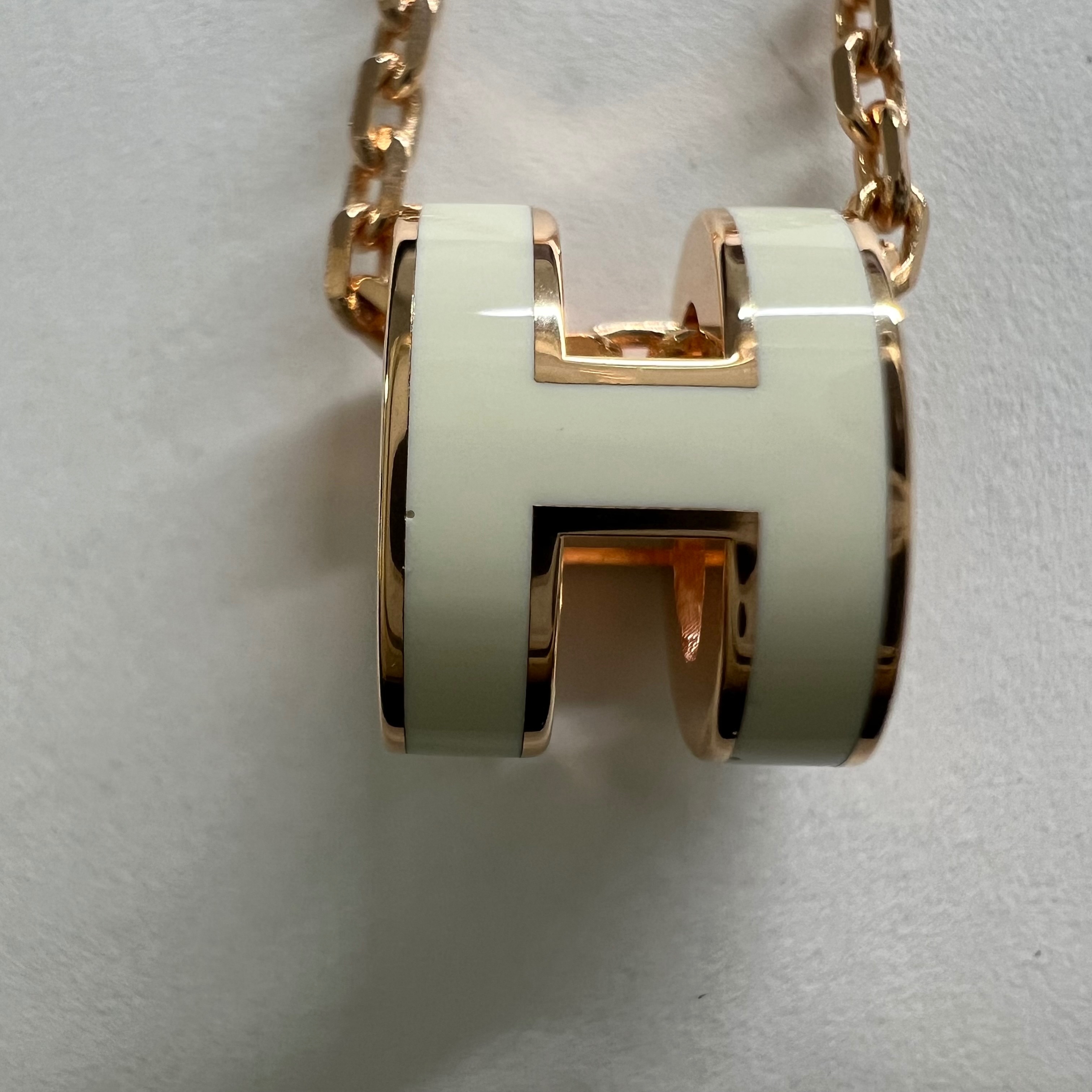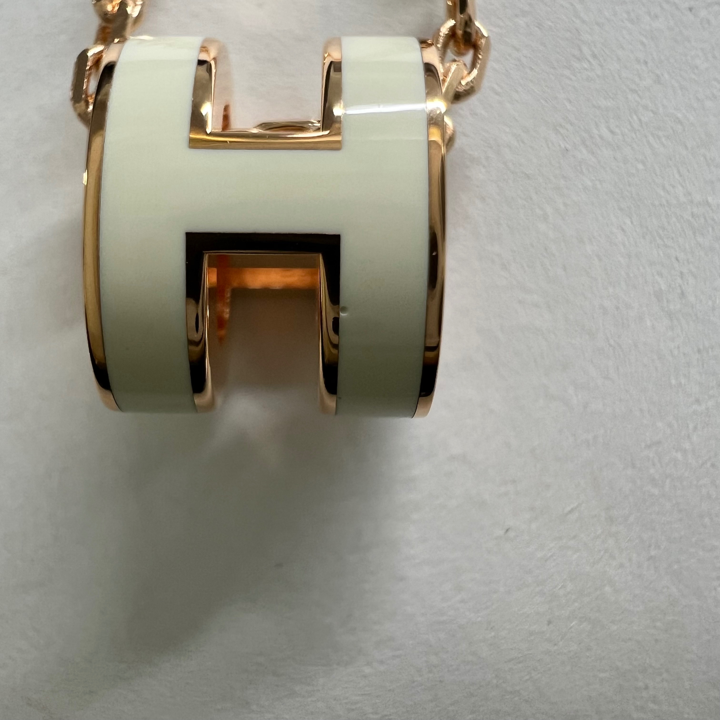 (W) Hermes Mini Pop H Pendant Rose Gold & Blanc