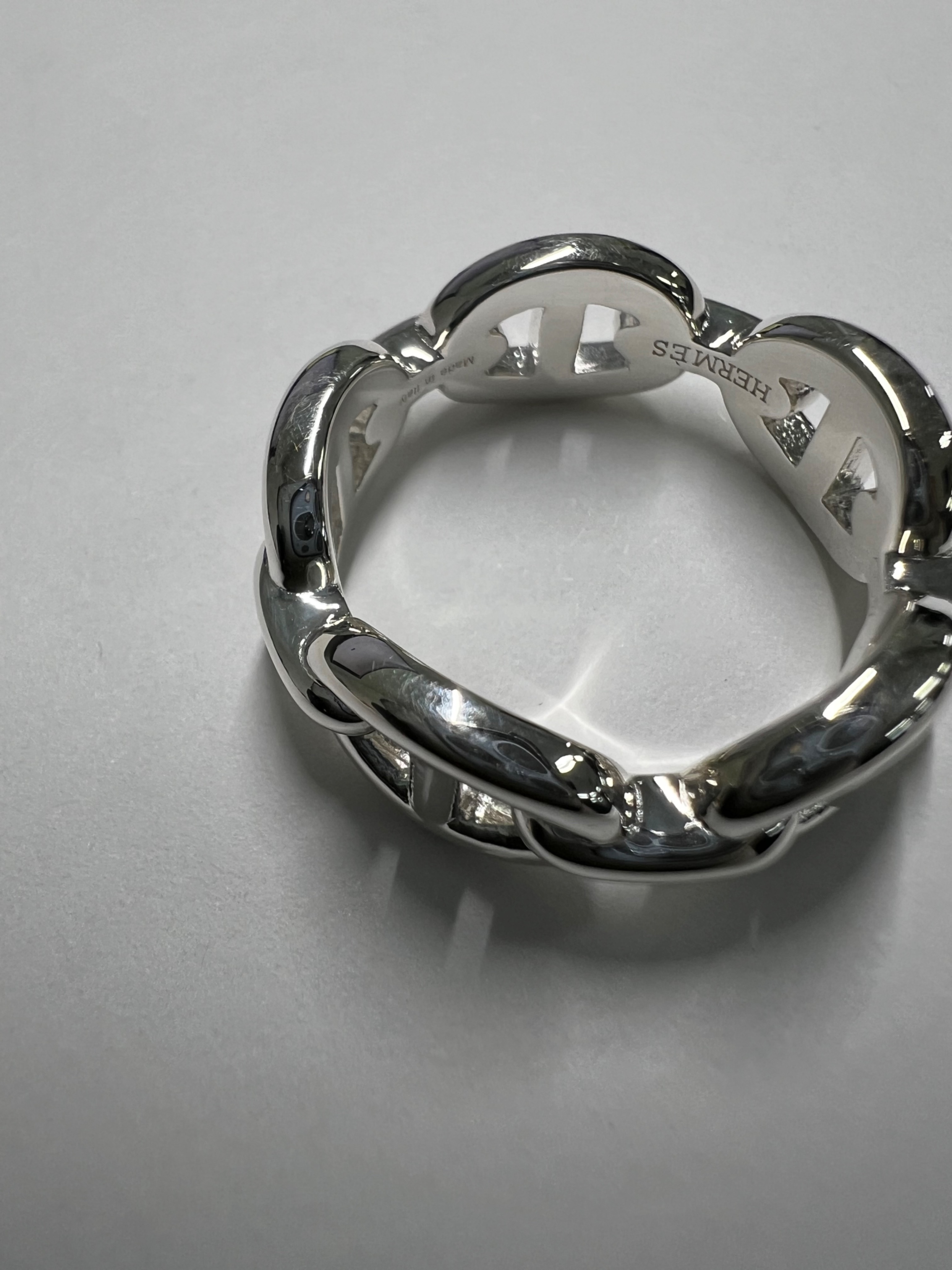 (W) Hermes Small Chaine D'Ancre Enchainee Ring Sterling Silver