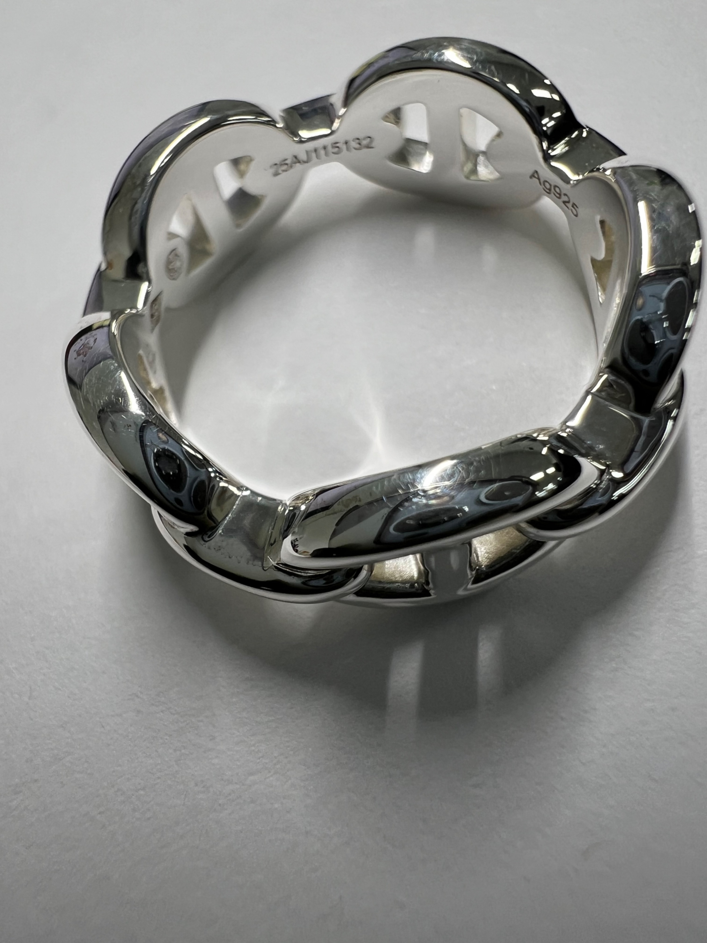 (W) Hermes Small Chaine D'Ancre Enchainee Ring Sterling Silver