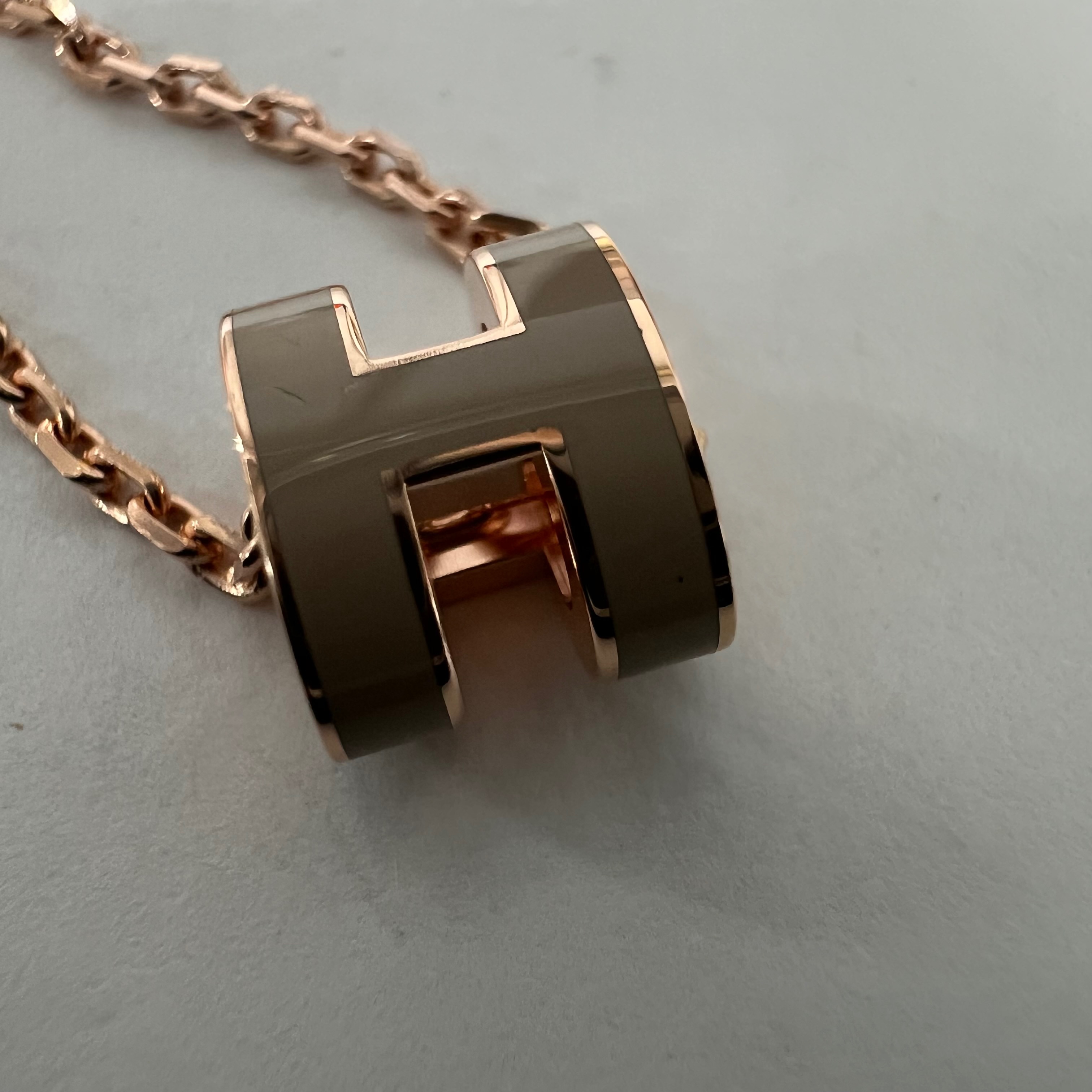(W) Hermes Mini Pop H Pendant Rose Gold & Marron Glace
