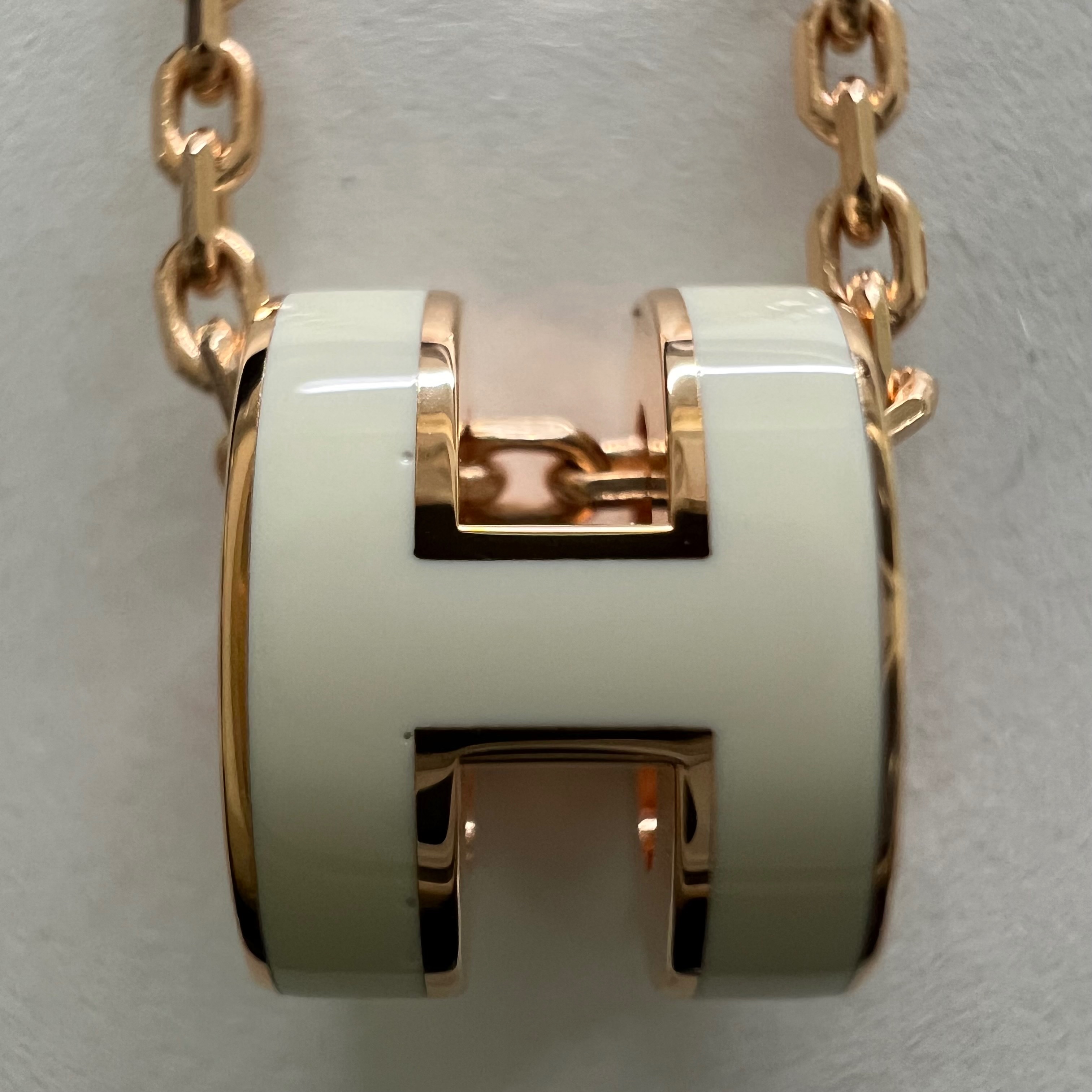 (W) Hermes Mini Pop H Pendant Rose Gold & Blanc