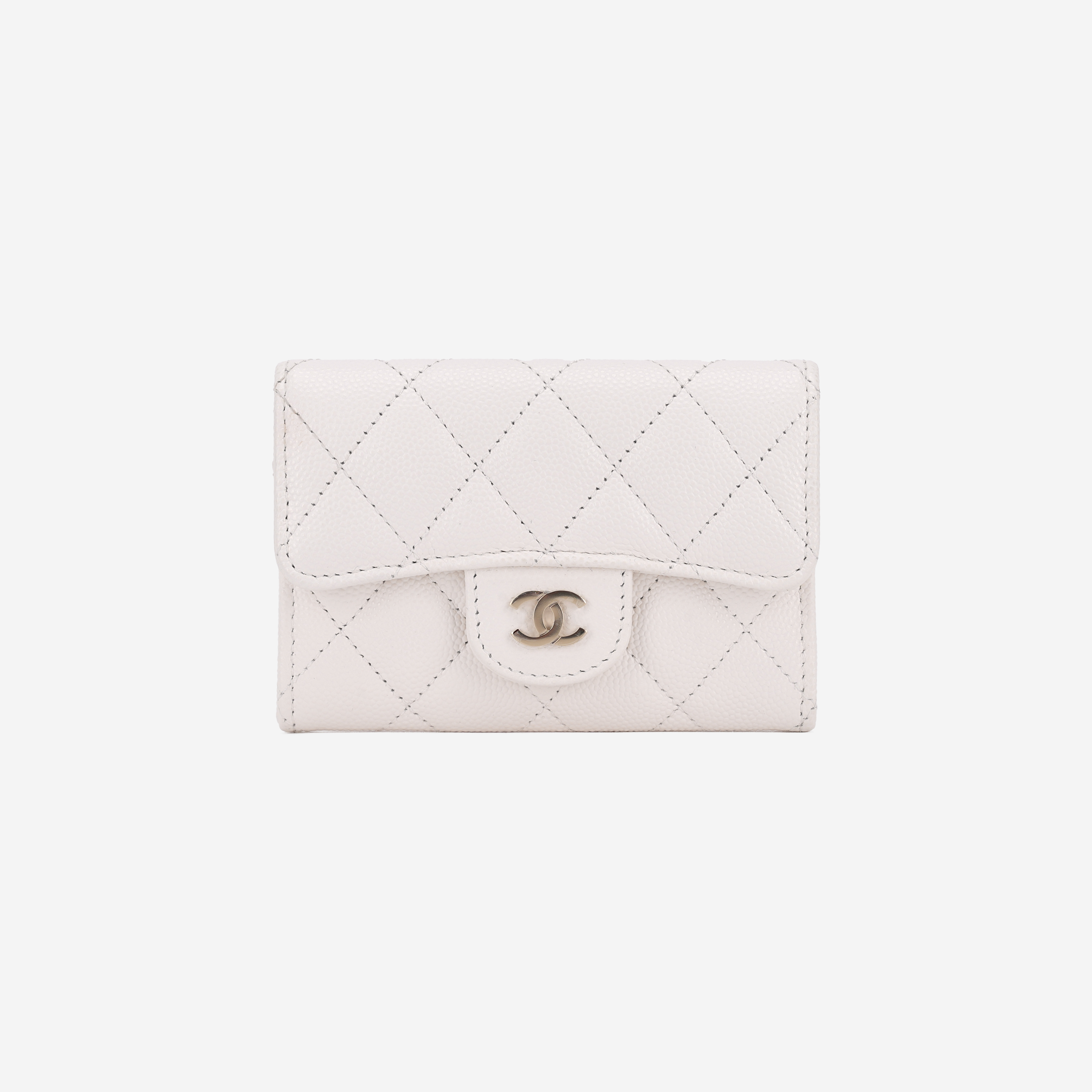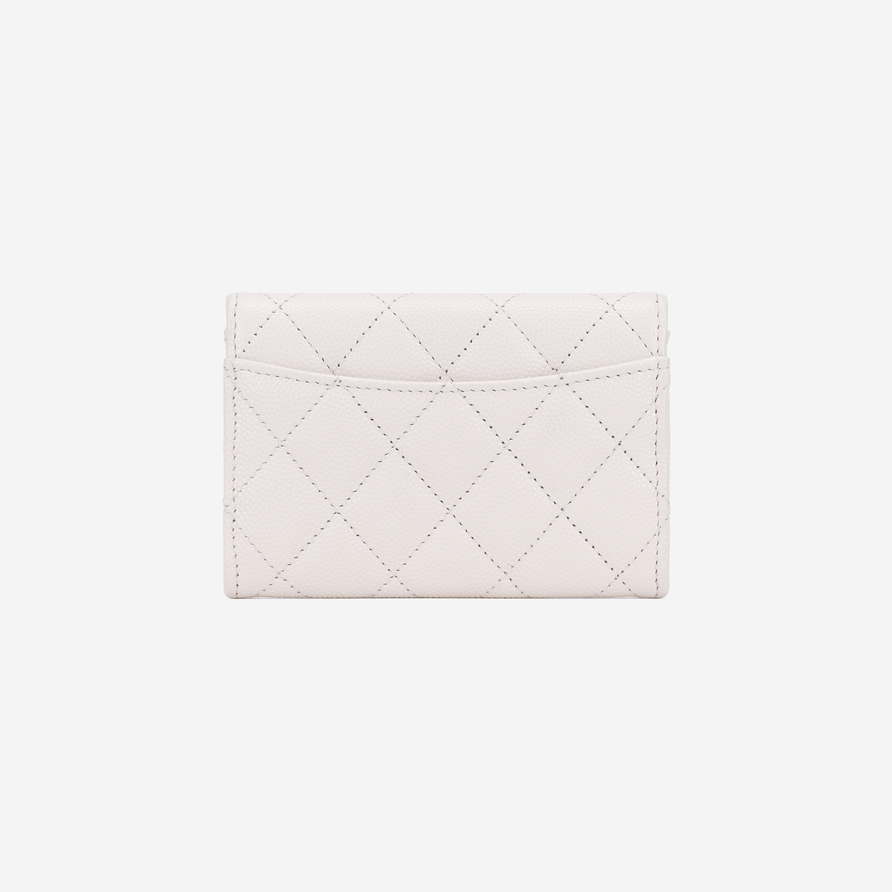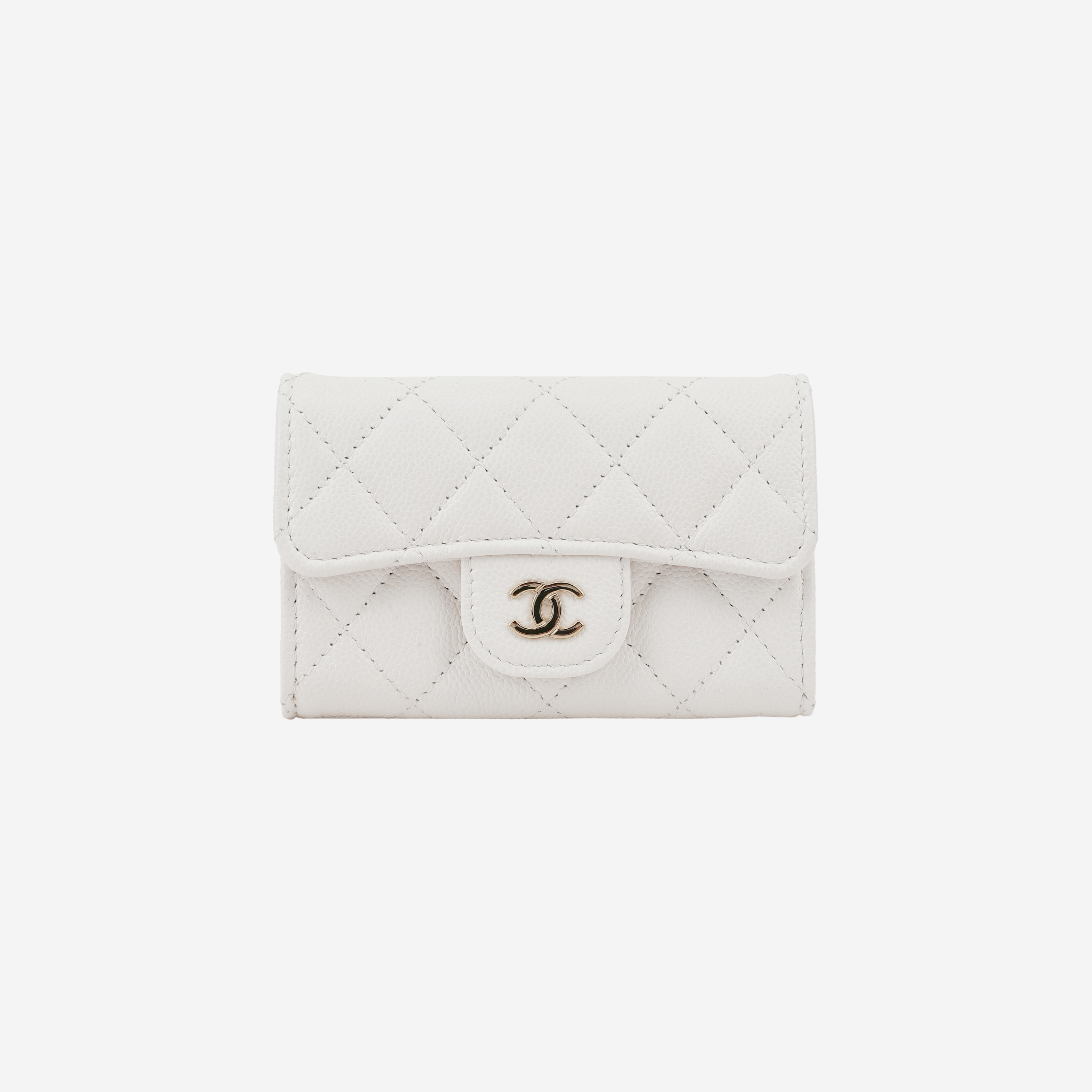 샤넬 클래식 카드 홀더 그레인드 샤이니 카프스킨 & 골드 메탈 화이트