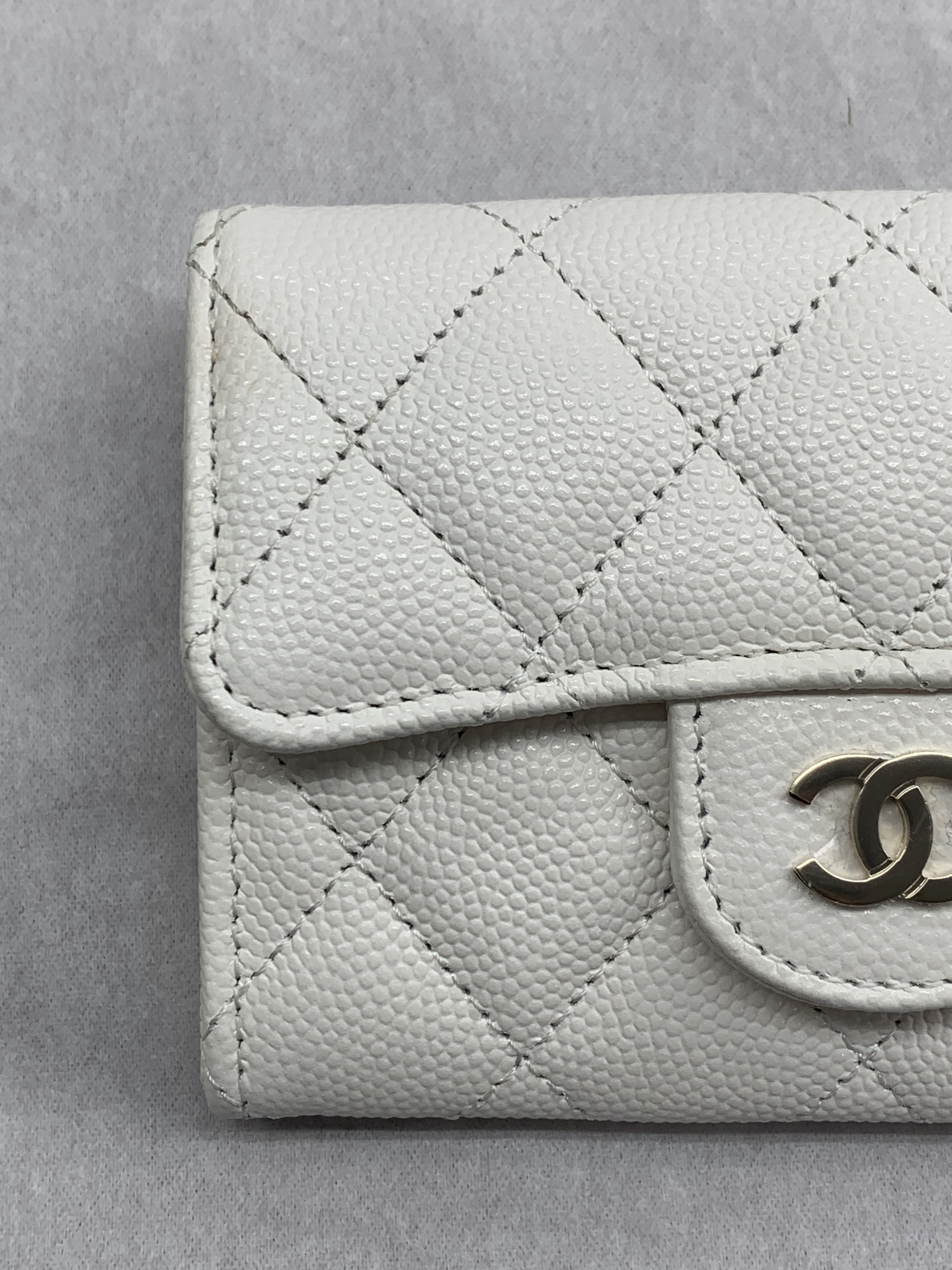 Chanel Classic Card Holder Grained Shiny Calfskin & Gold White