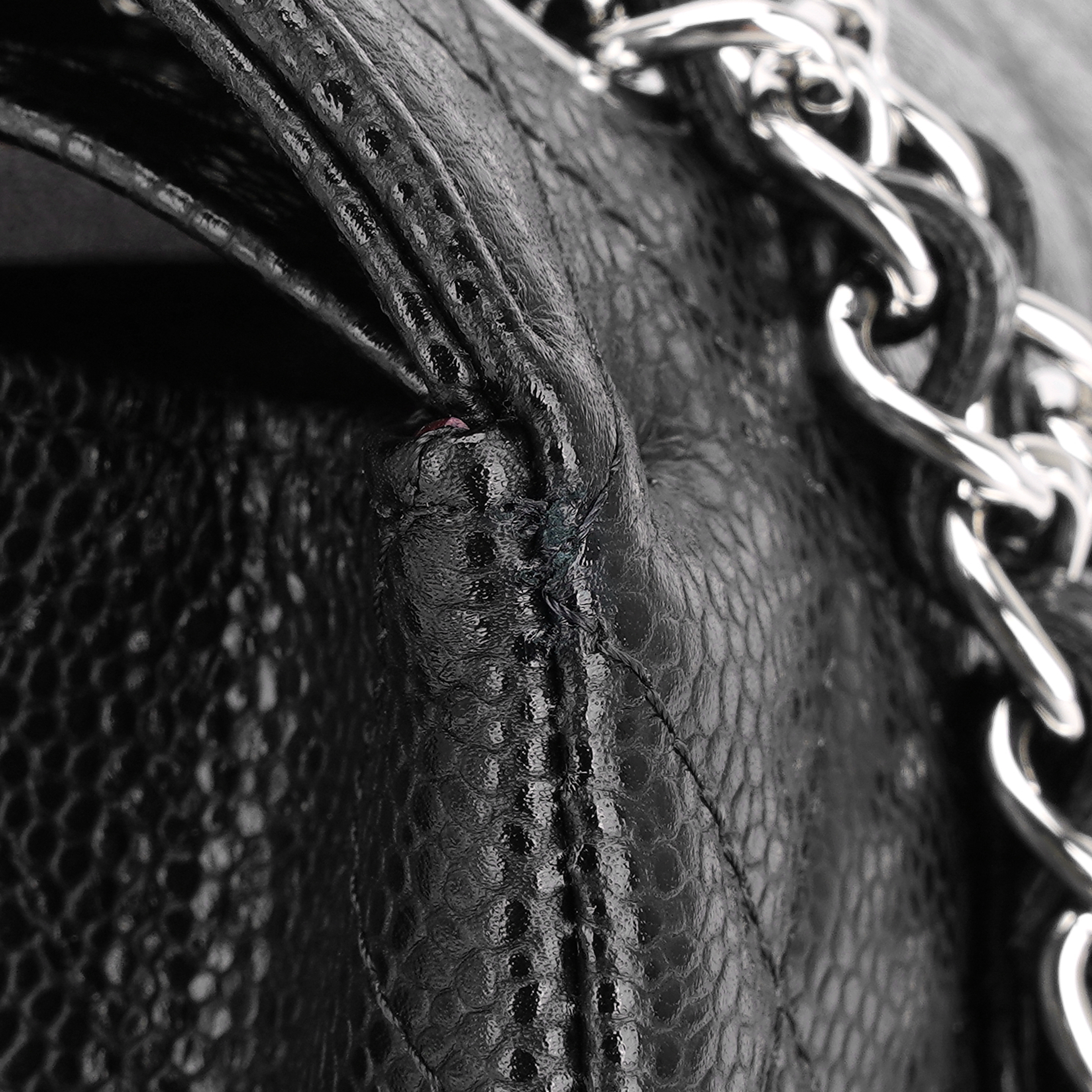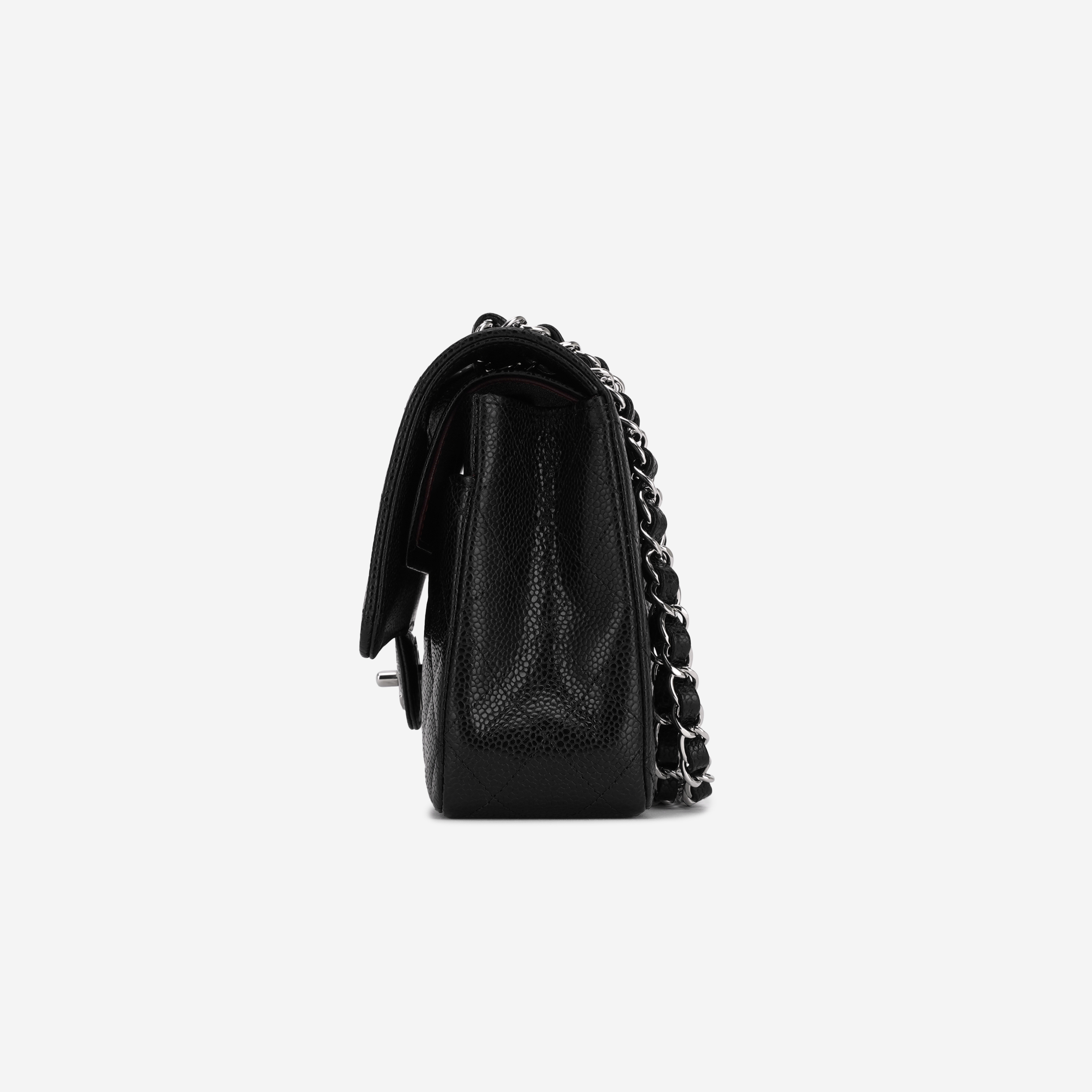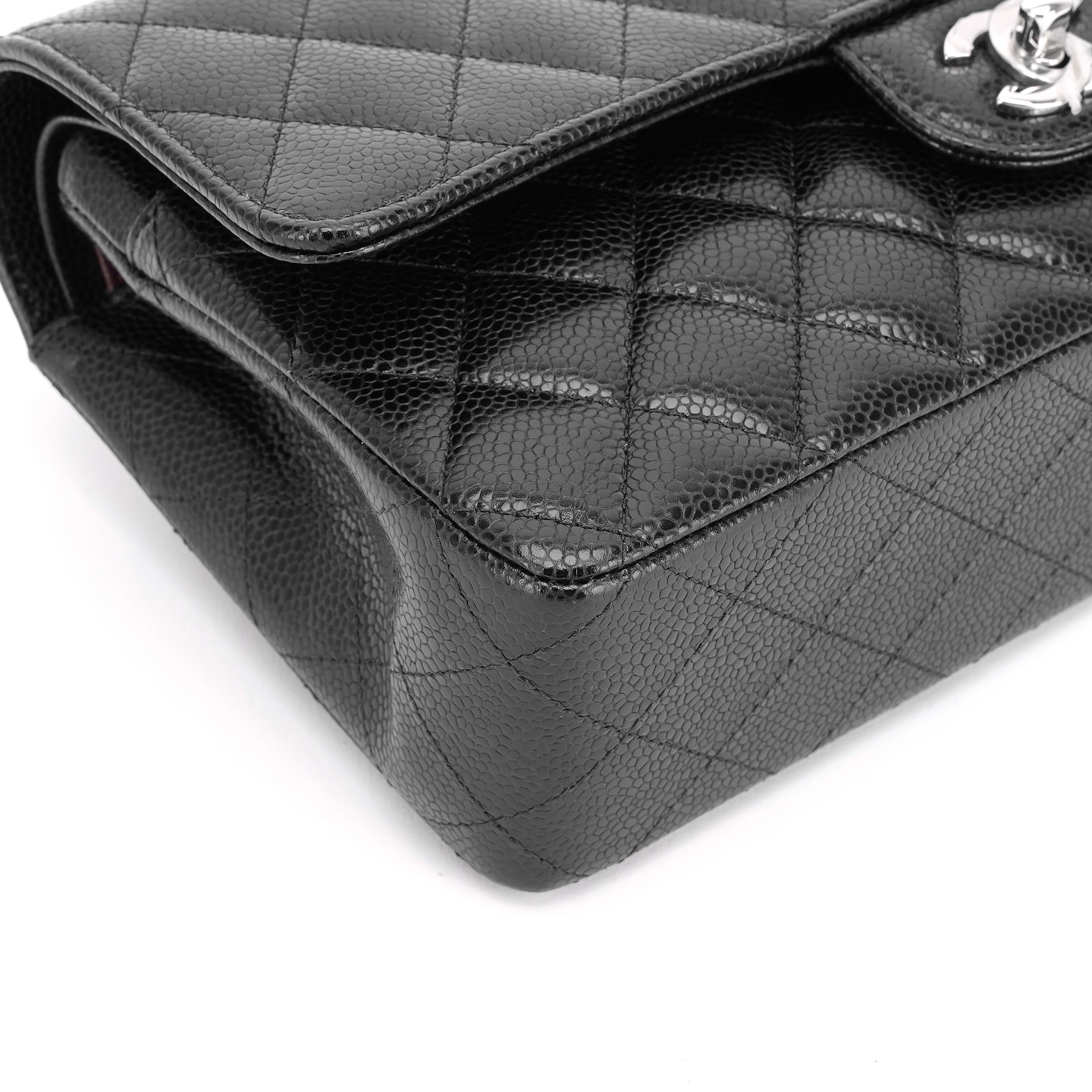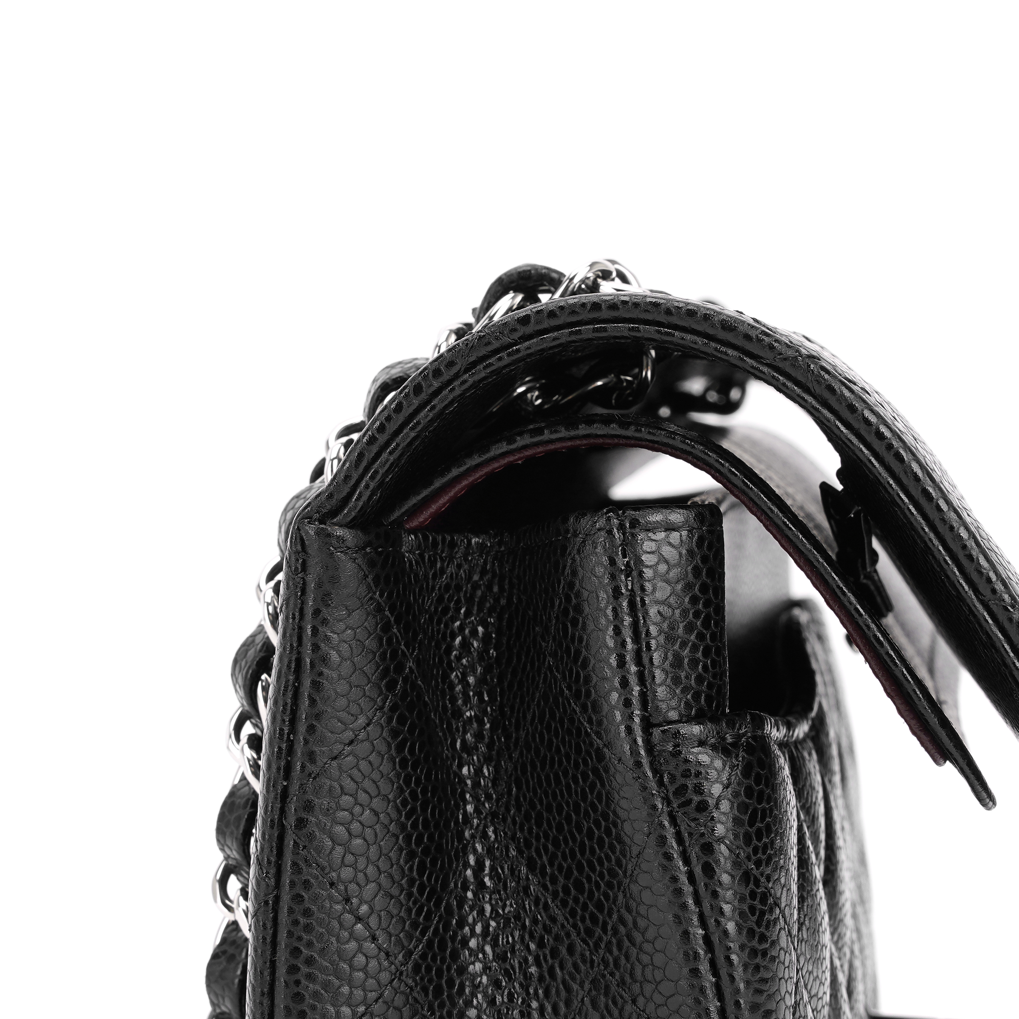 샤넬 클래식 미디움 플랩백 그레인드 카프스킨 & 실버 메탈 블랙