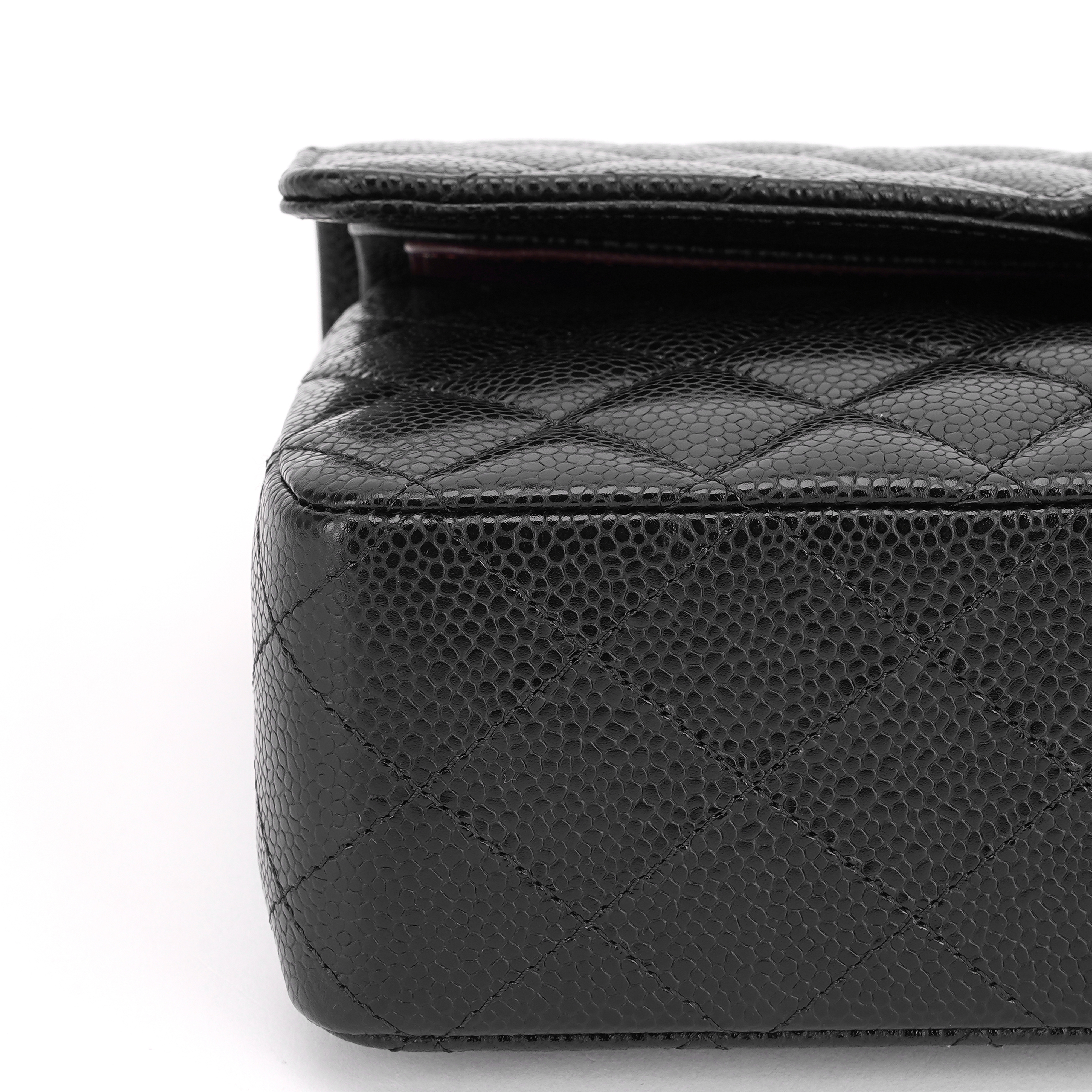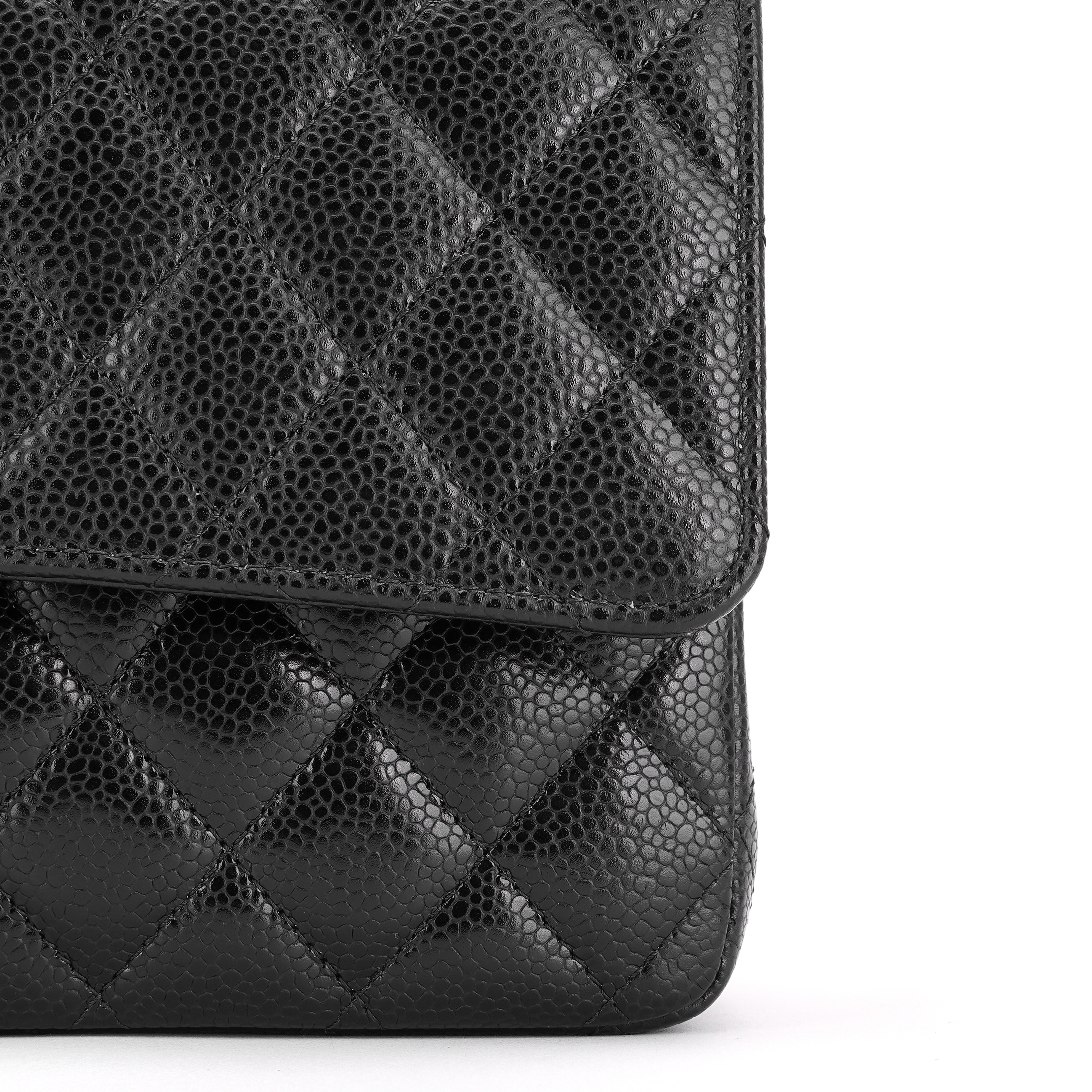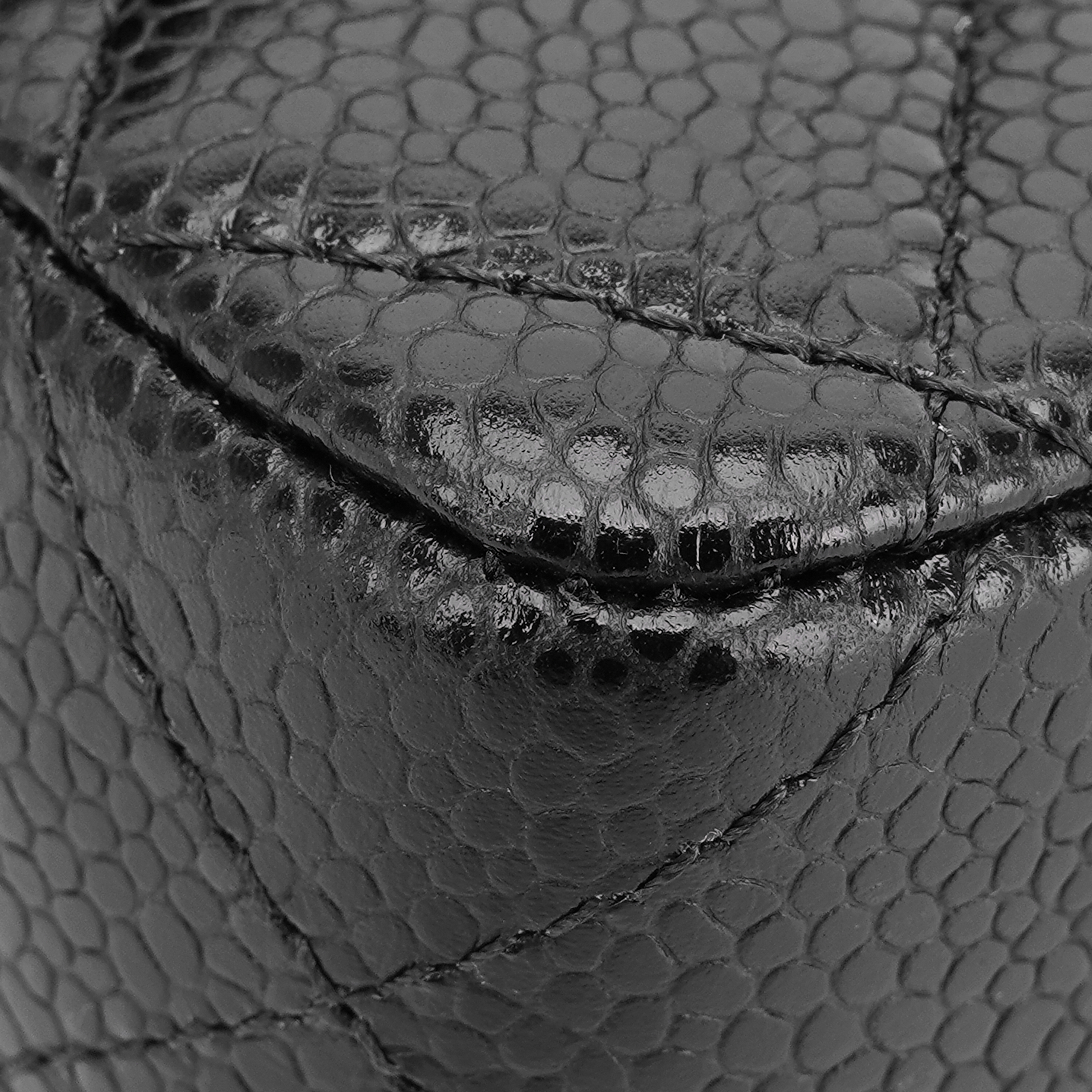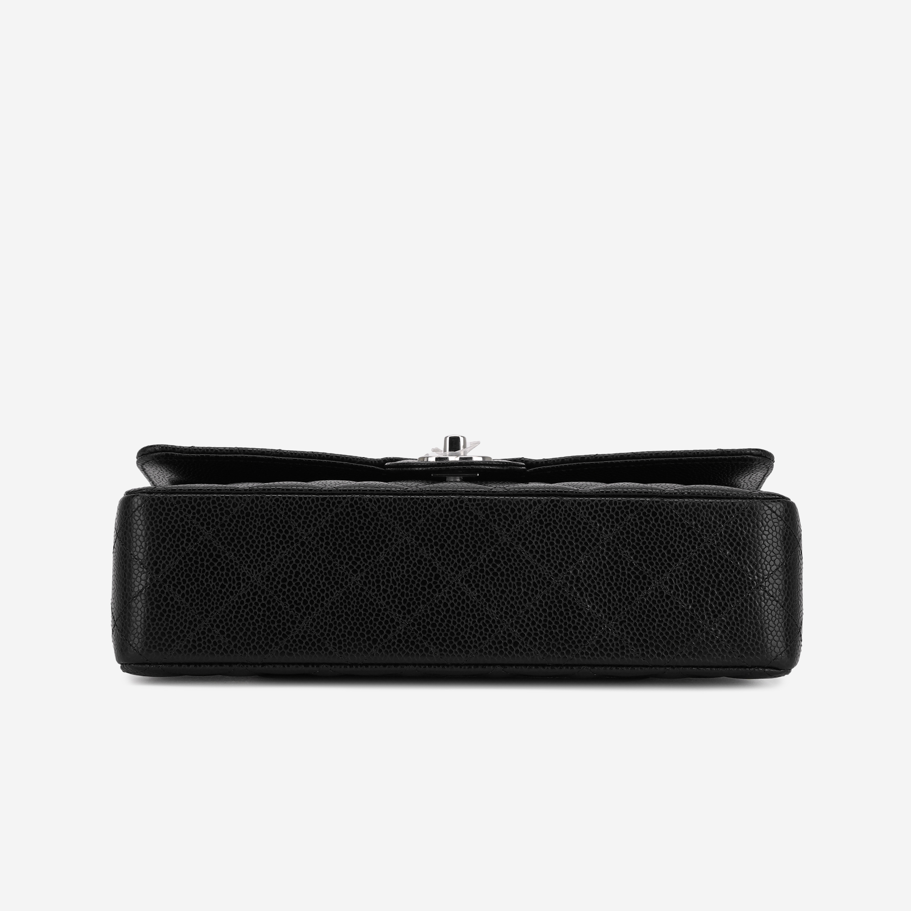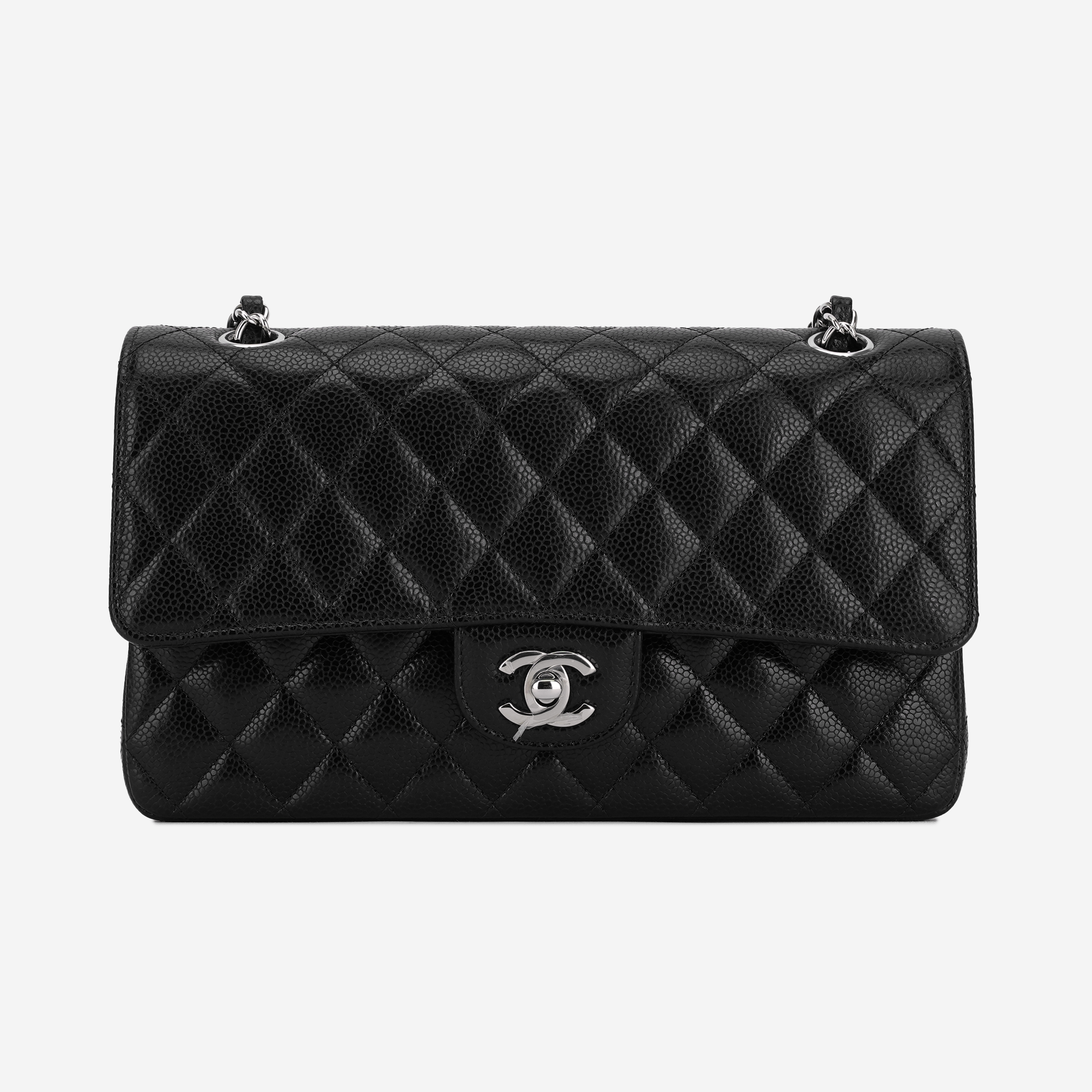 샤넬 클래식 미디움 플랩백 그레인드 카프스킨 & 실버 메탈 블랙