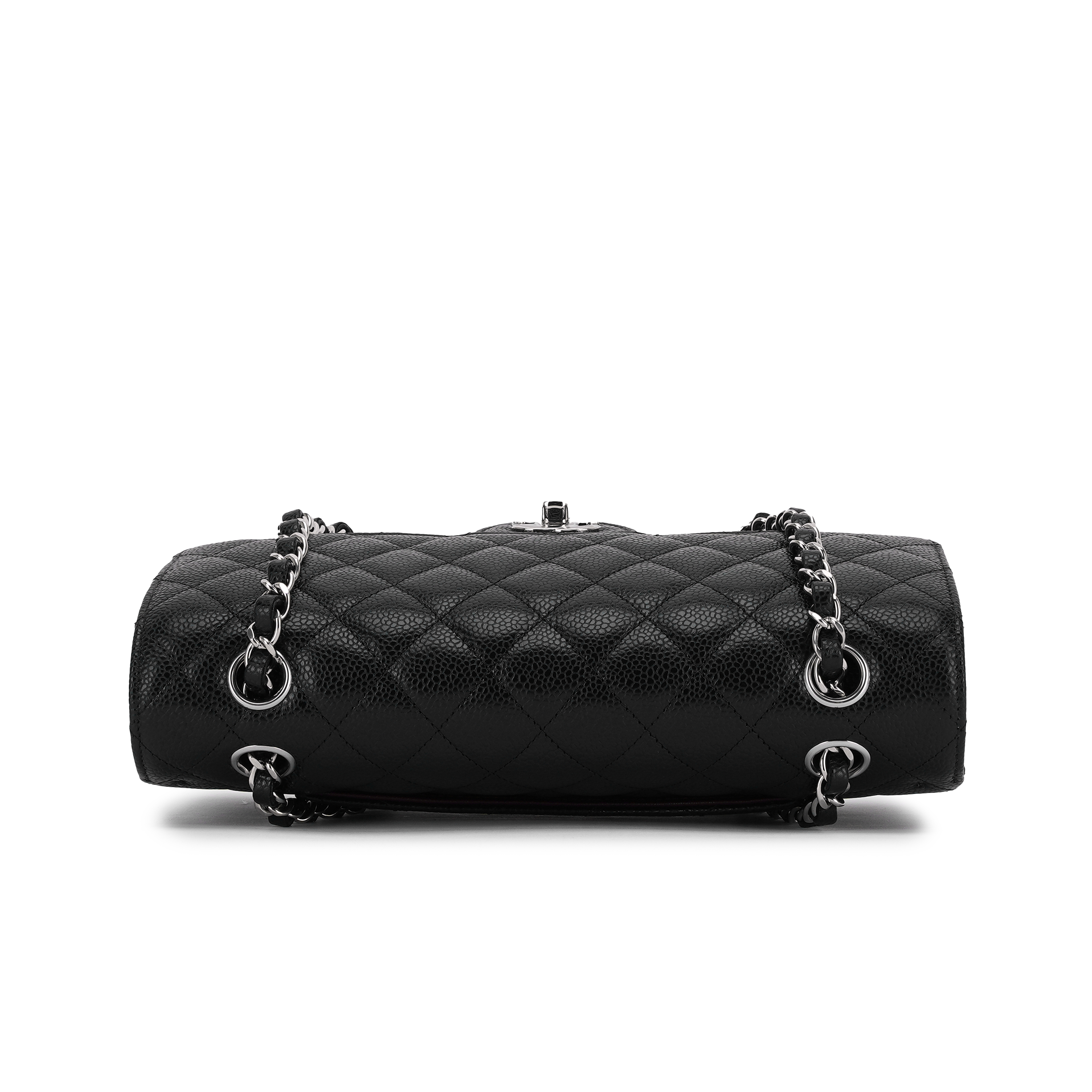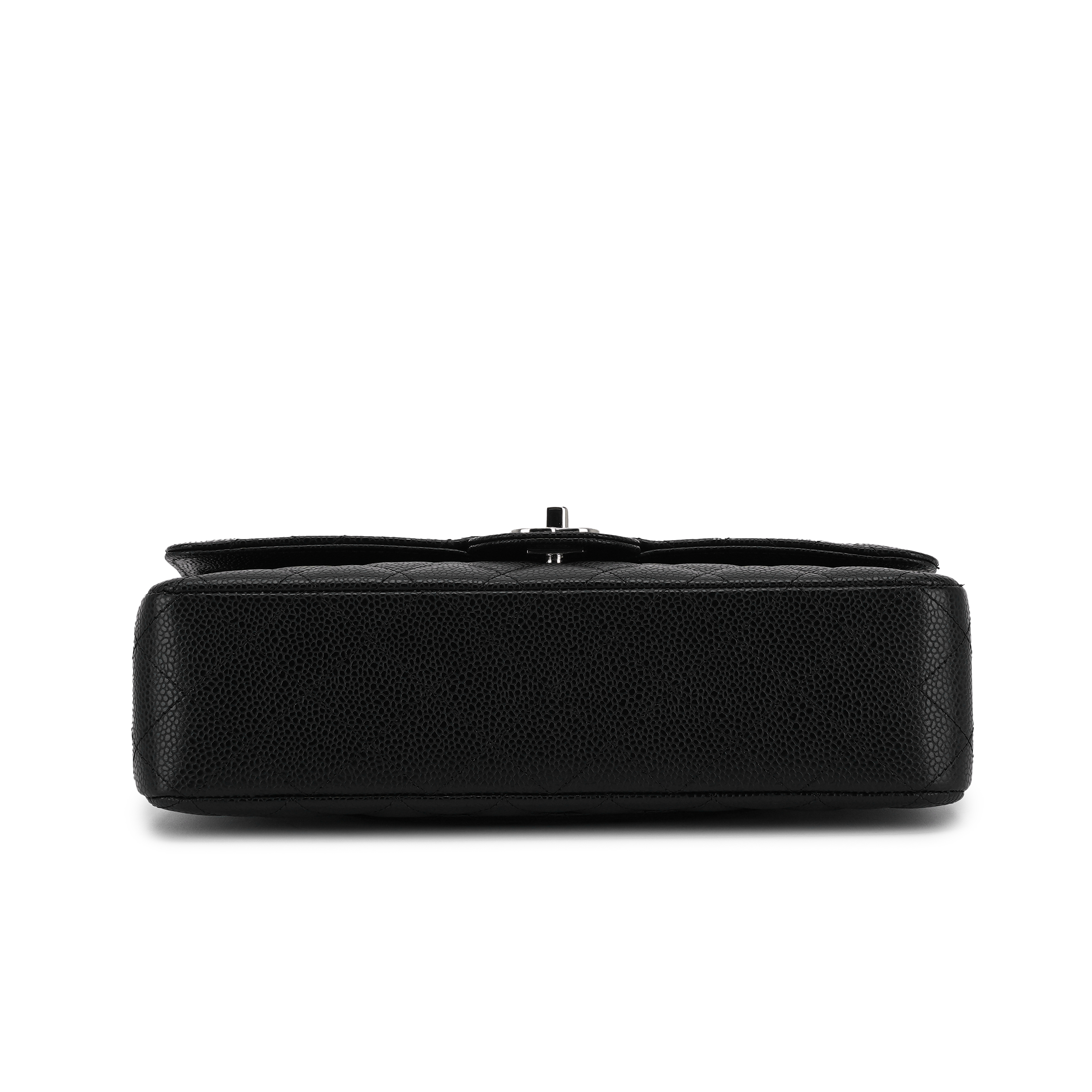 샤넬 클래식 미디움 플랩백 그레인드 카프스킨 & 실버 메탈 블랙
