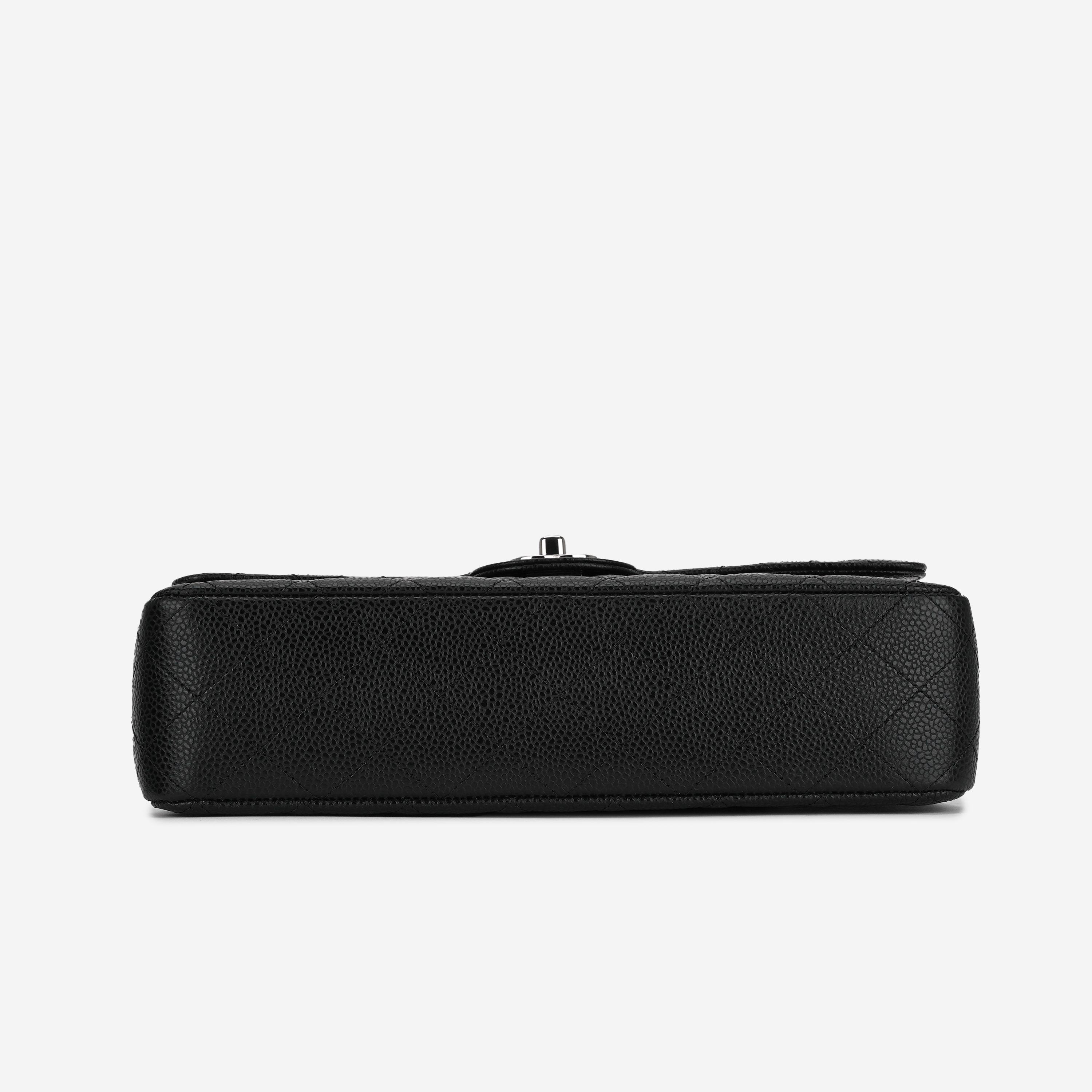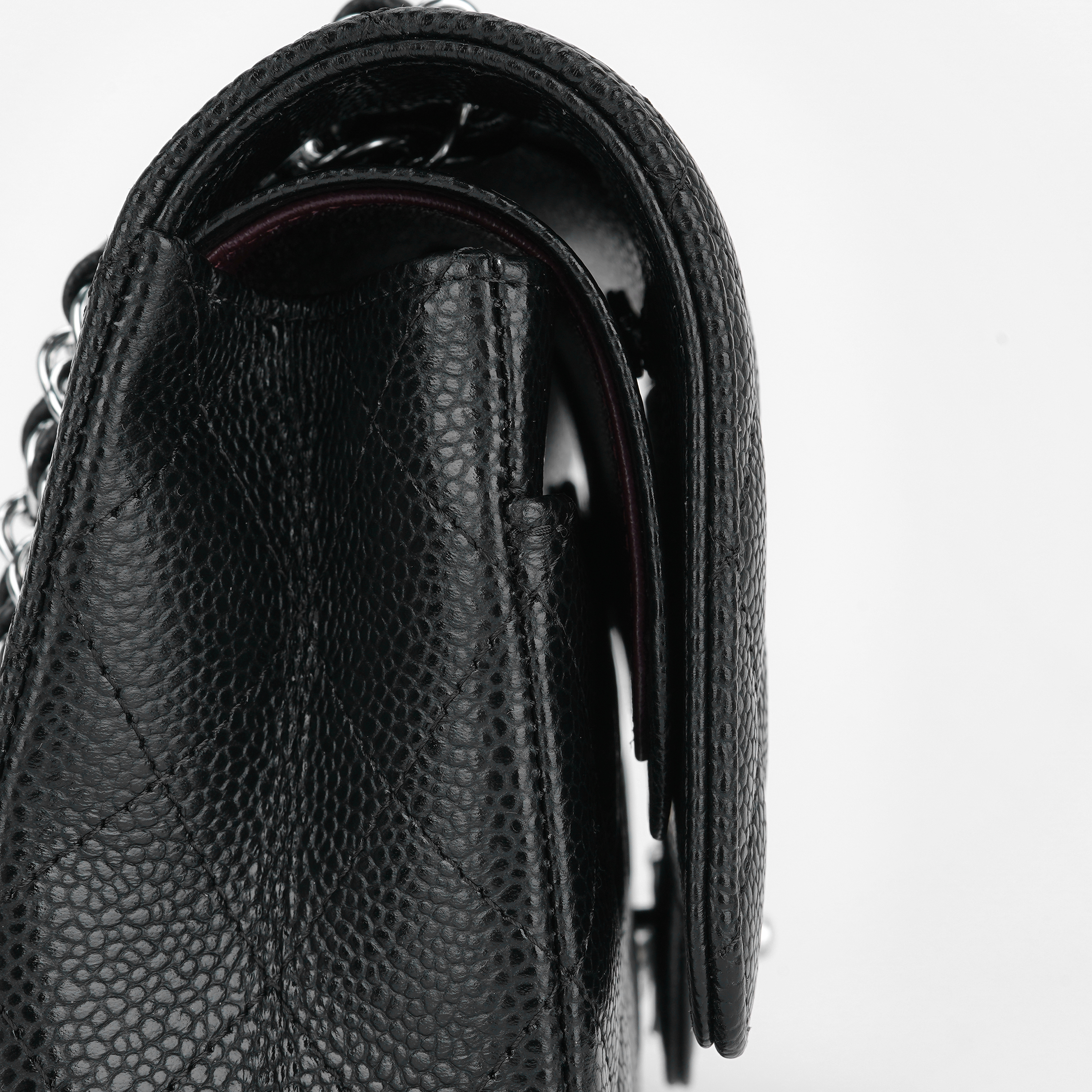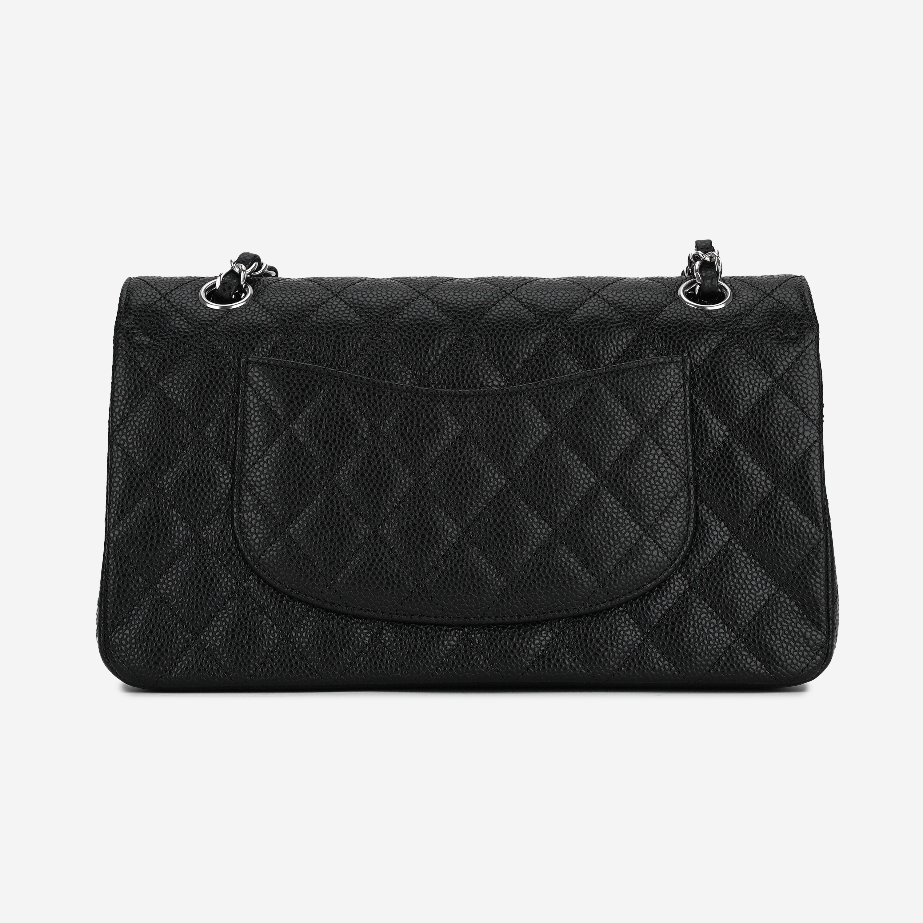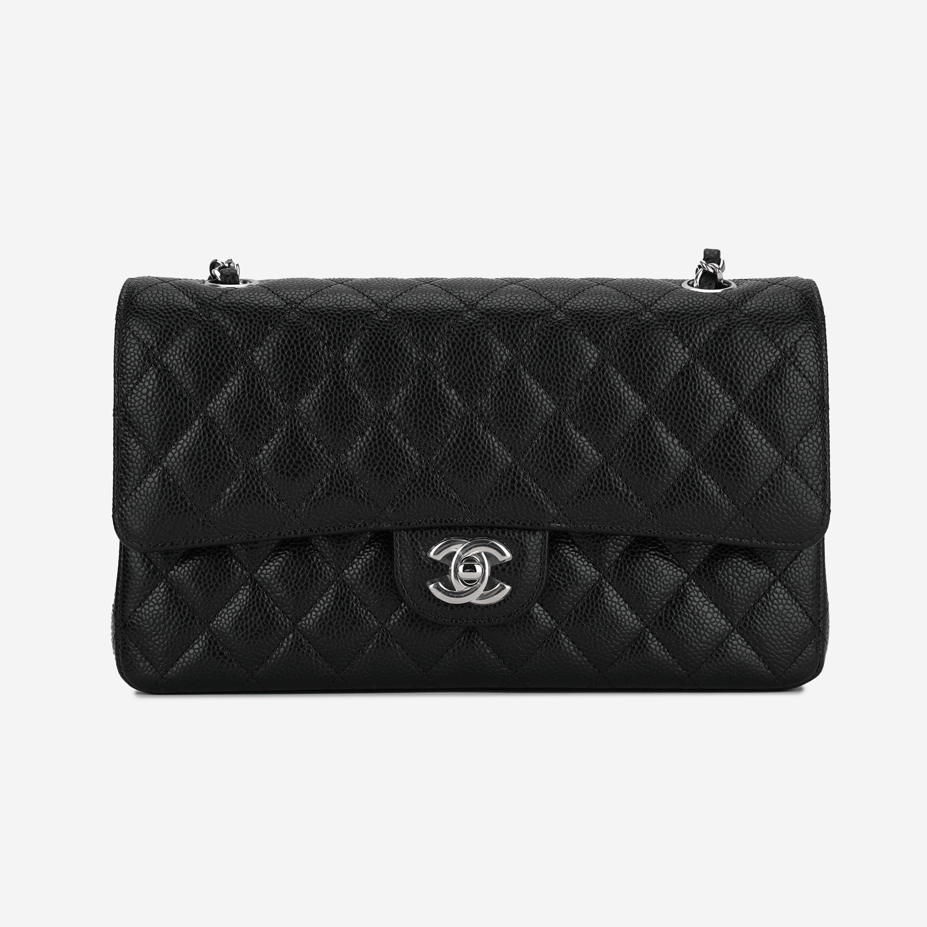 샤넬 클래식 미디움 플랩백 그레인드 카프스킨 & 실버 메탈 블랙