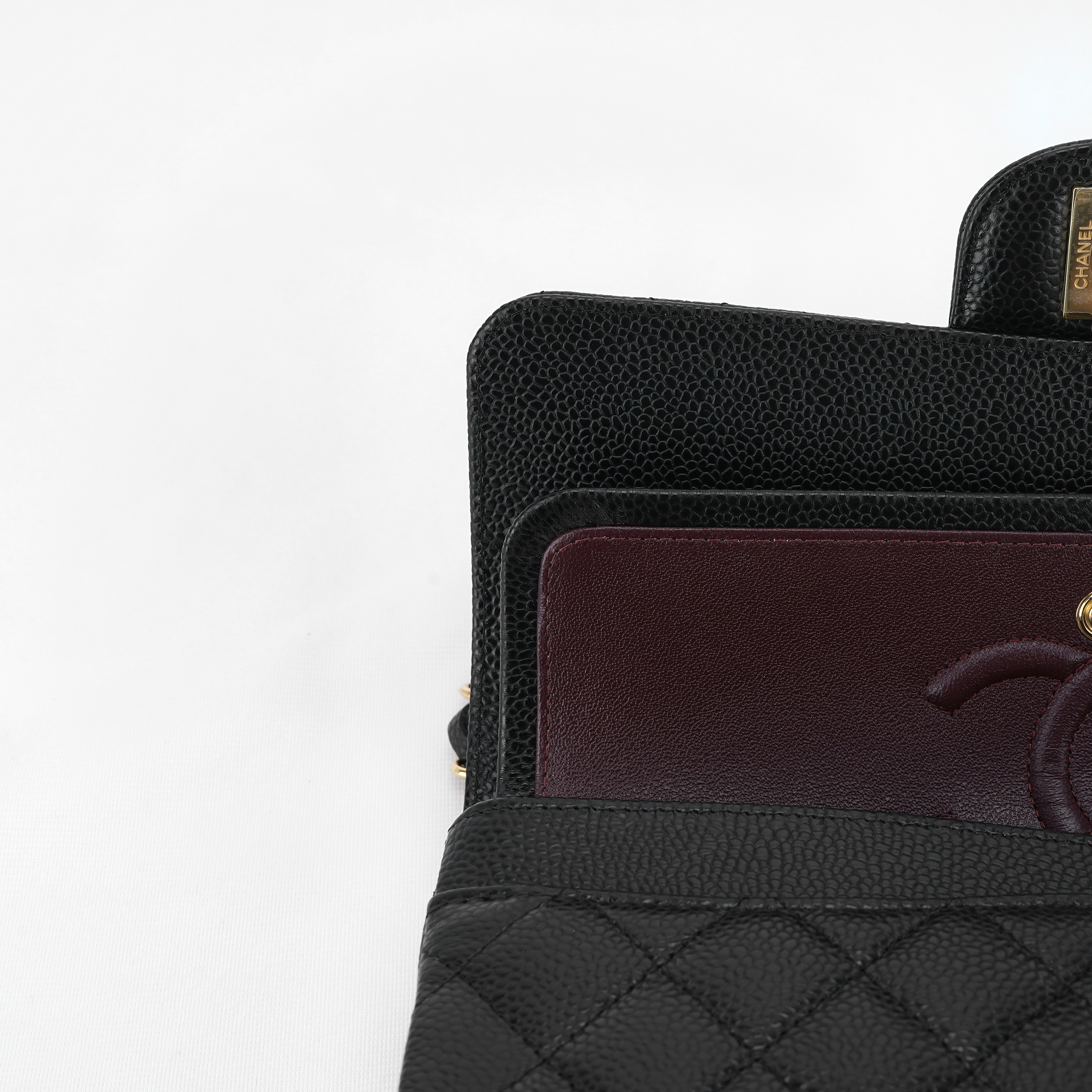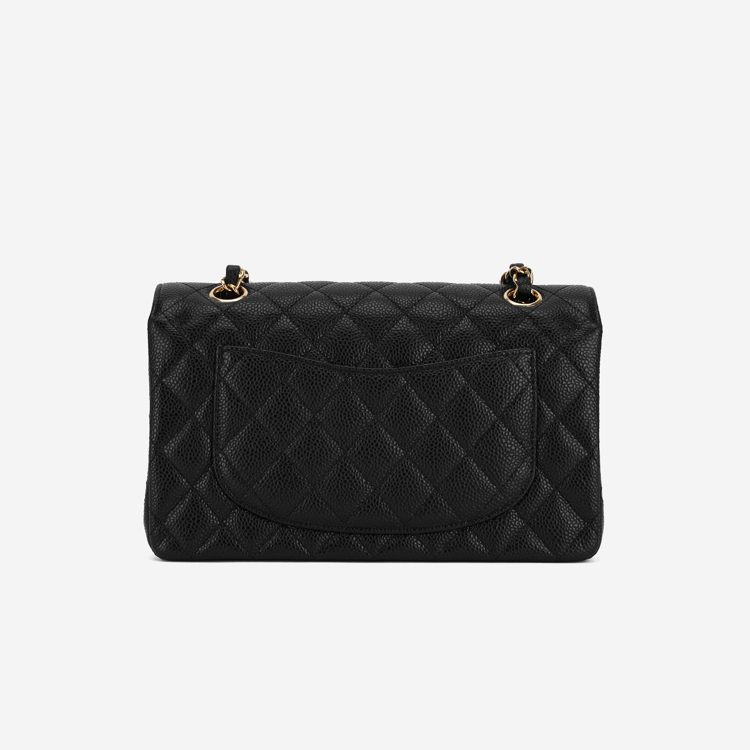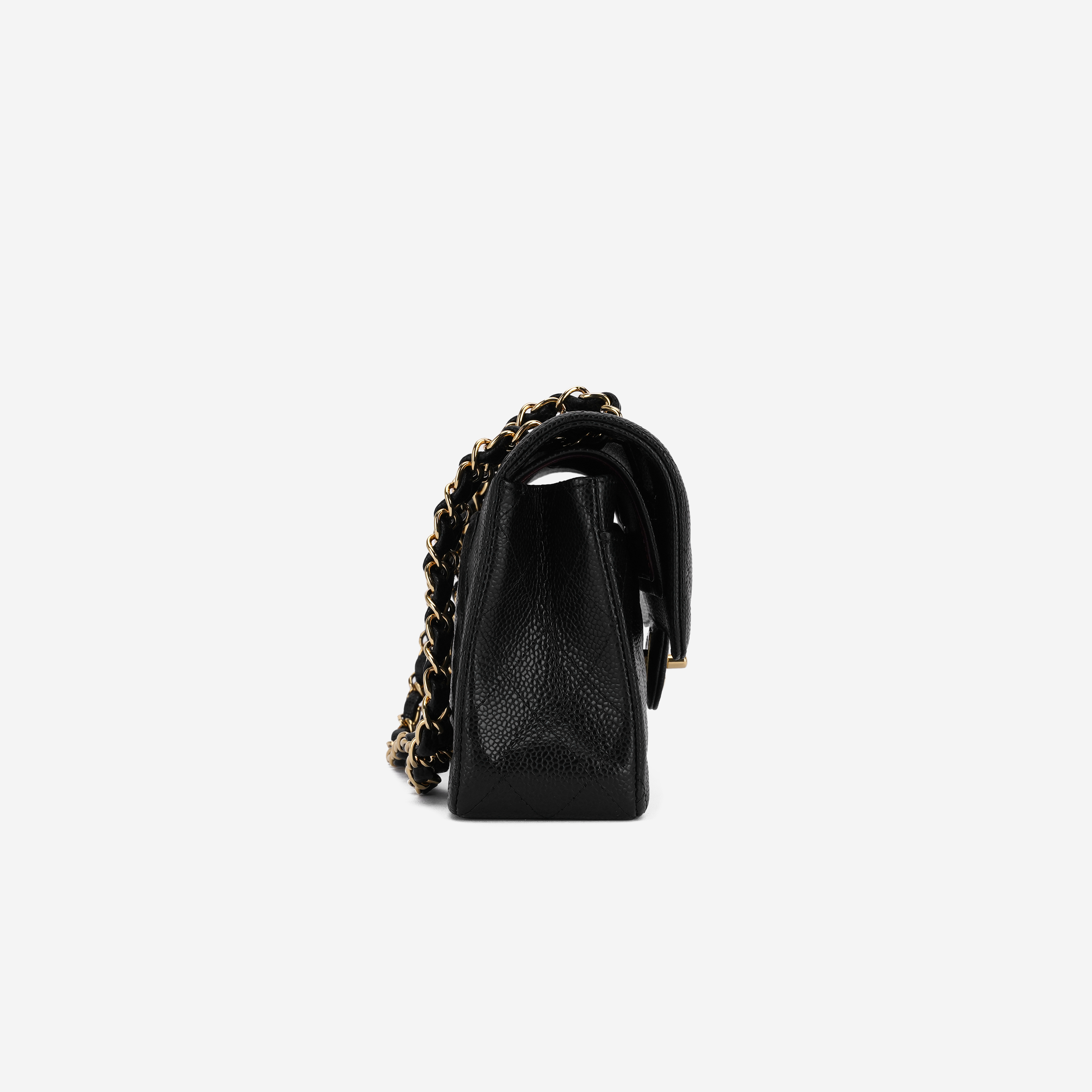 샤넬 클래식 스몰 플랩백 그레인드 카프스킨 & 골드 메탈 블랙
