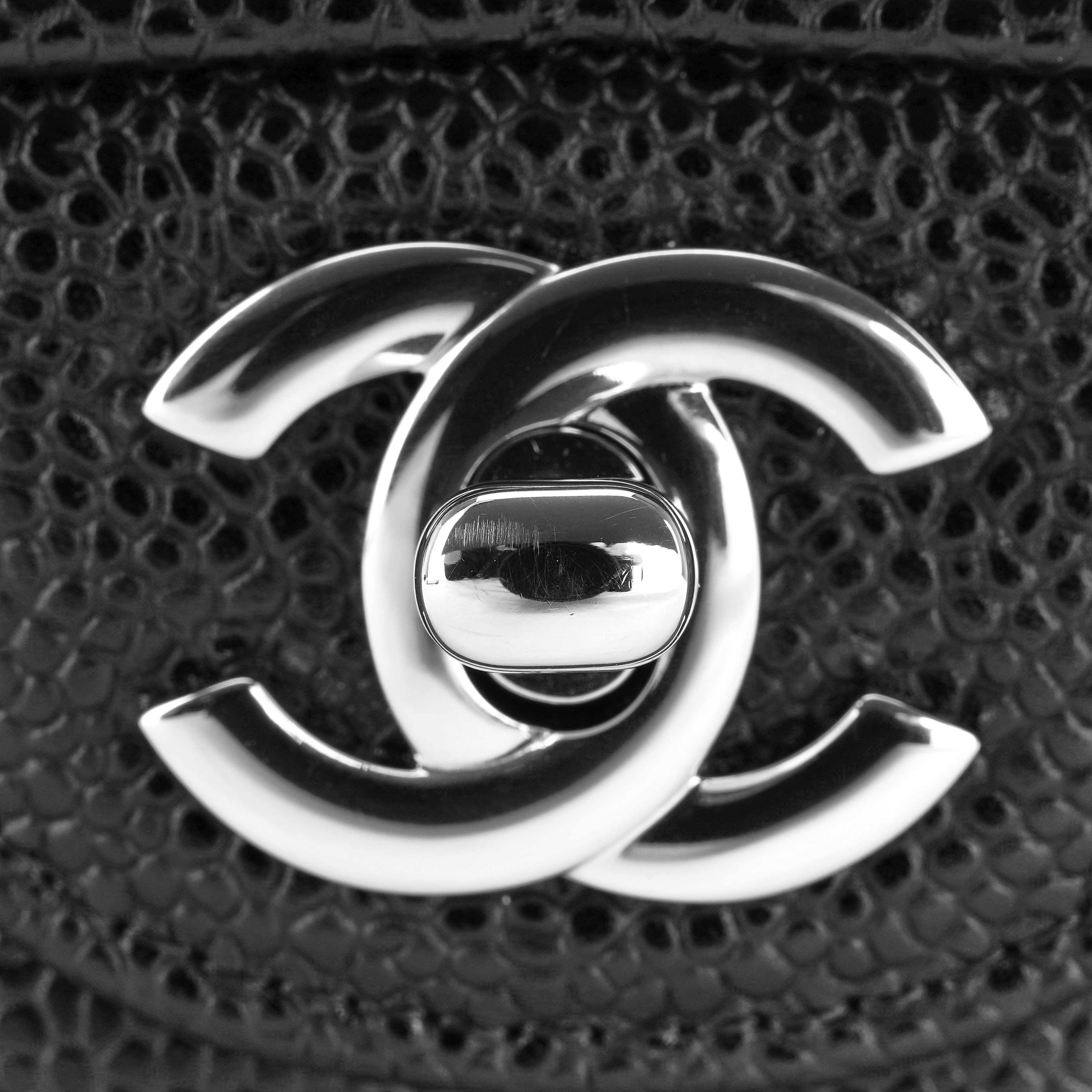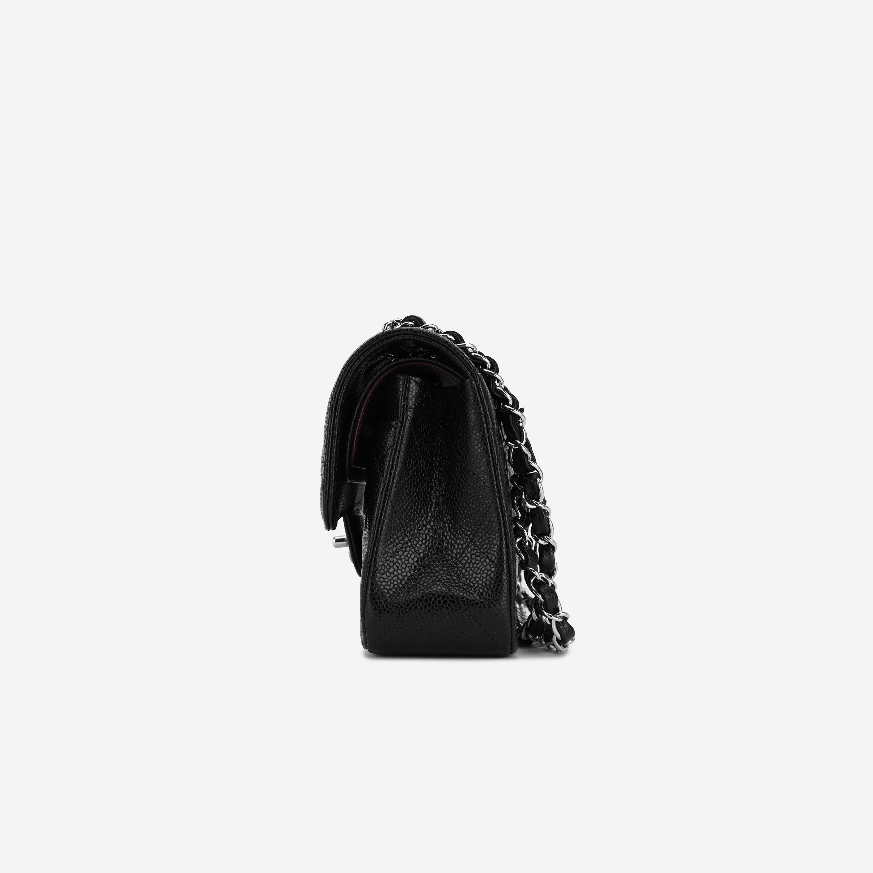 샤넬 클래식 스몰 플랩백 그레인드 카프스킨 & 실버 메탈 블랙