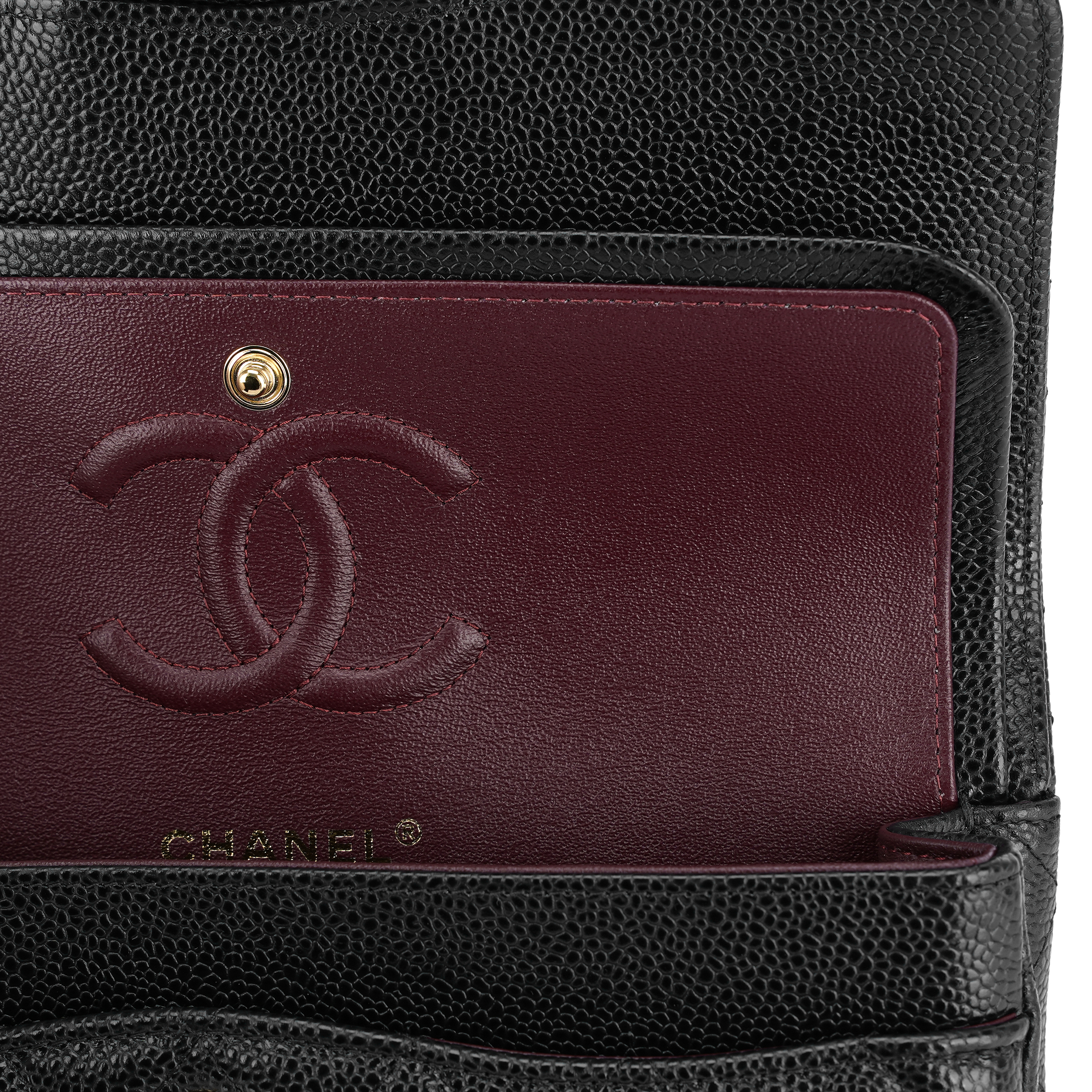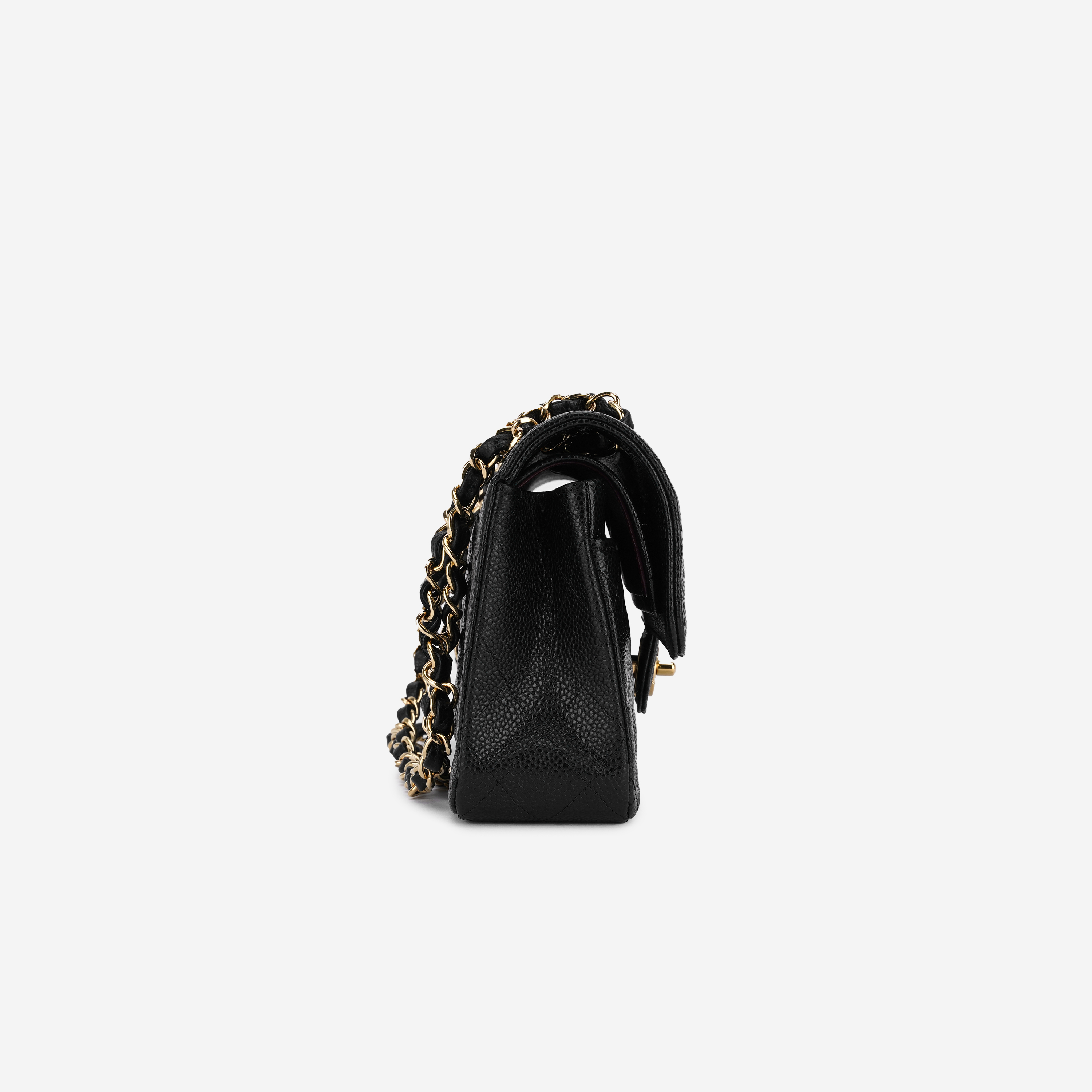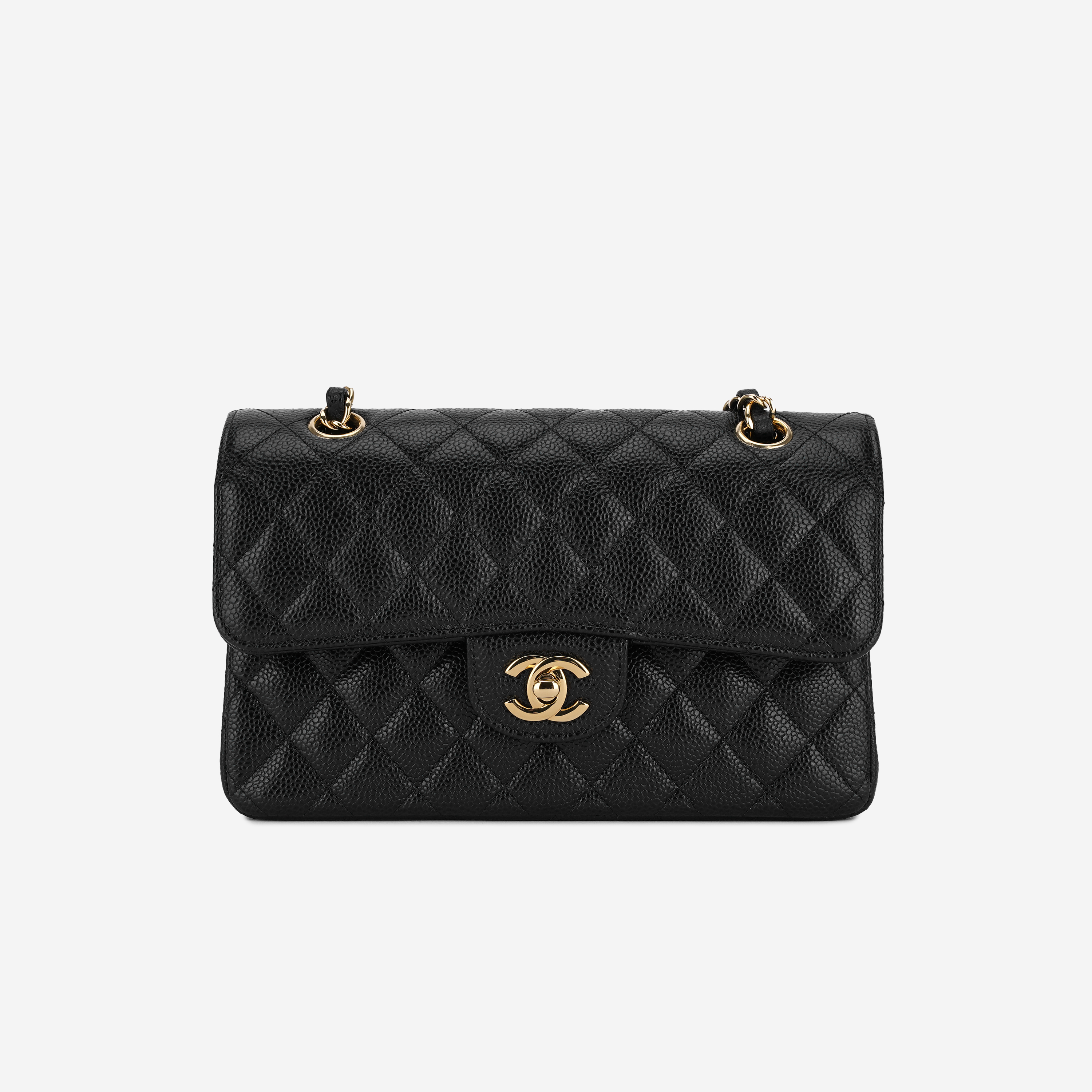 샤넬 클래식 스몰 플랩백 그레인드 카프스킨 & 골드 메탈 블랙