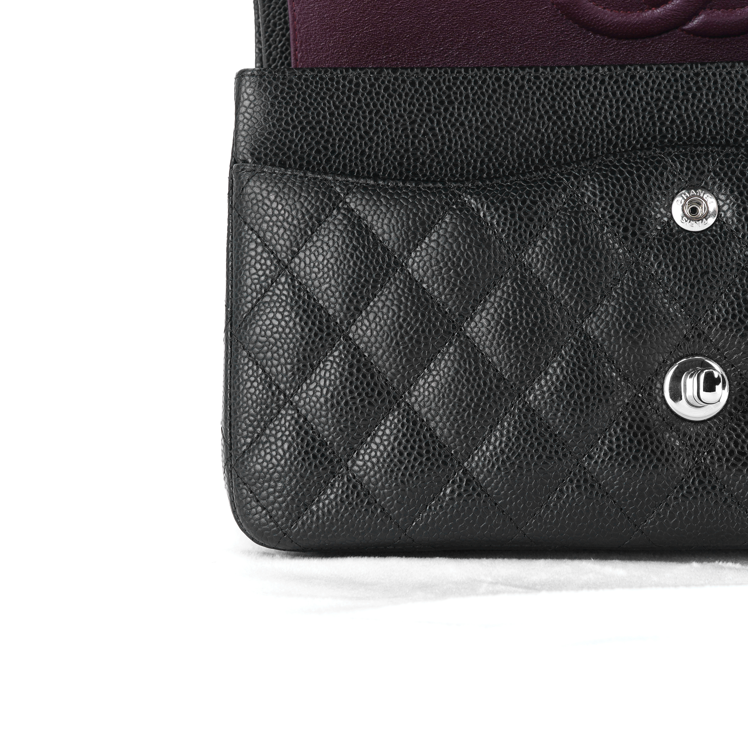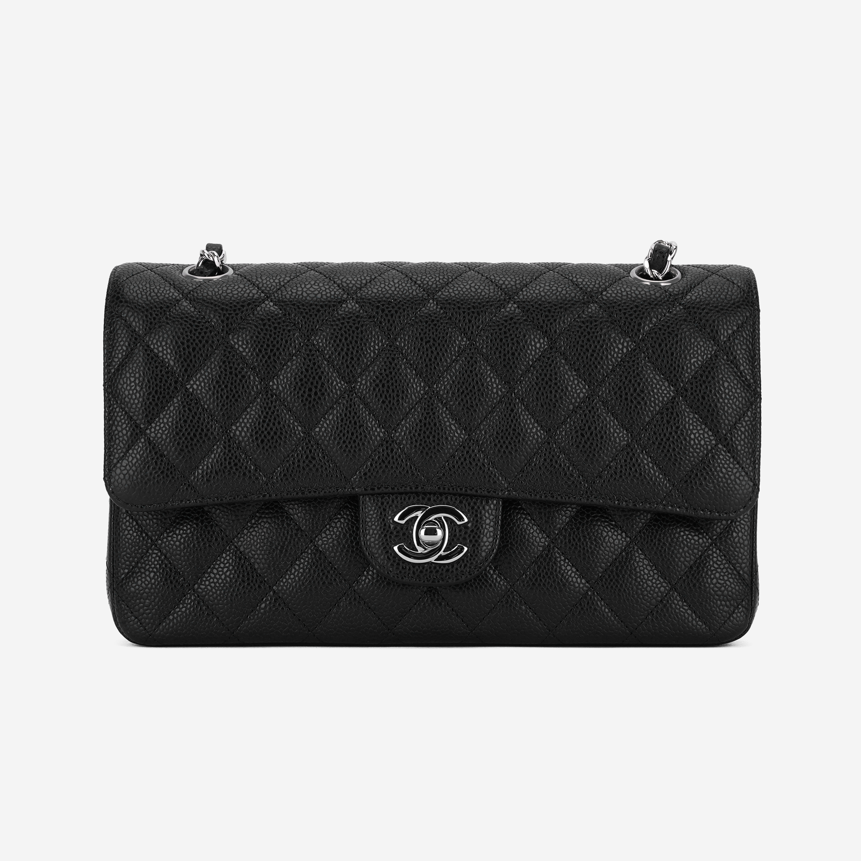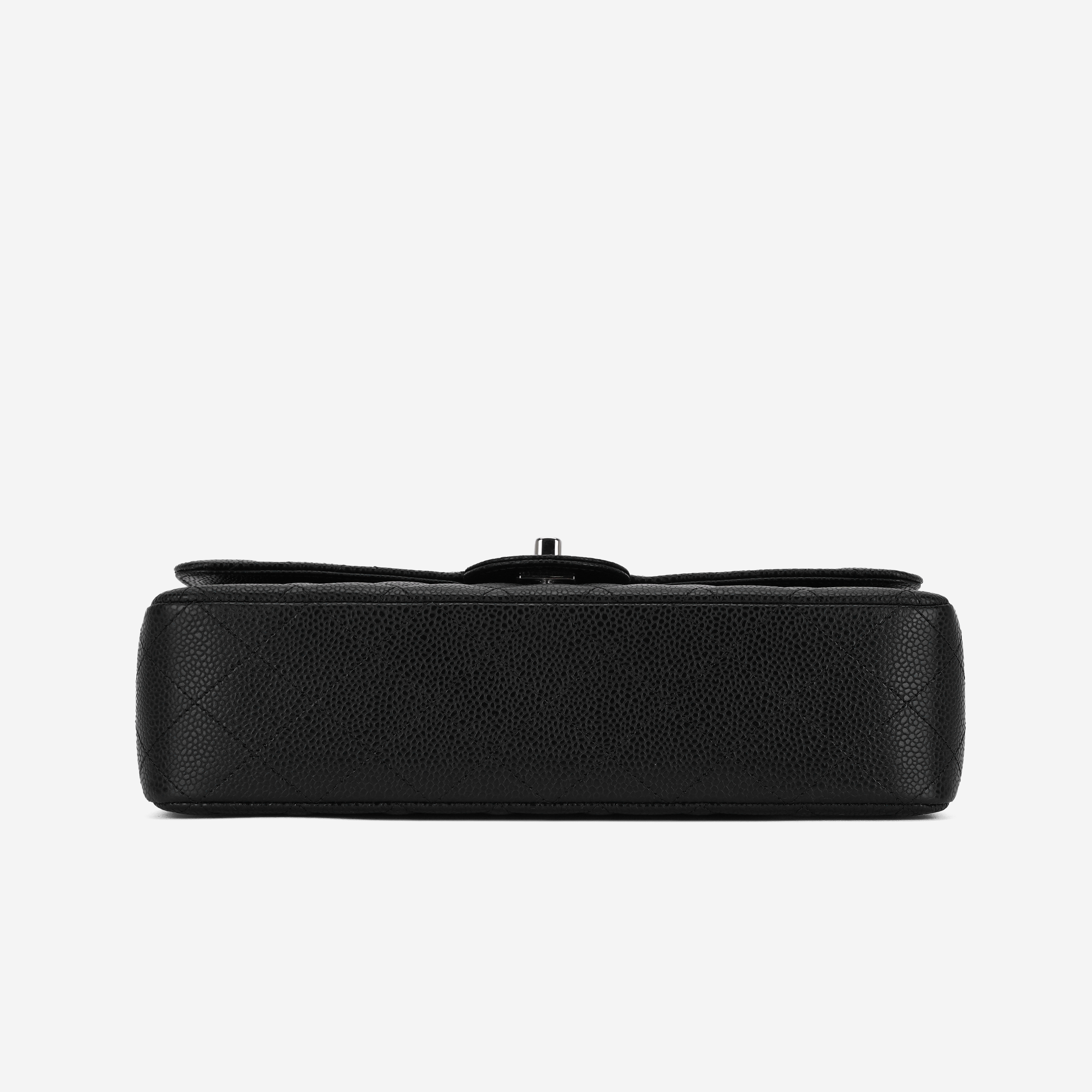 샤넬 클래식 미디움 플랩백 그레인드 카프스킨 & 실버 메탈 블랙