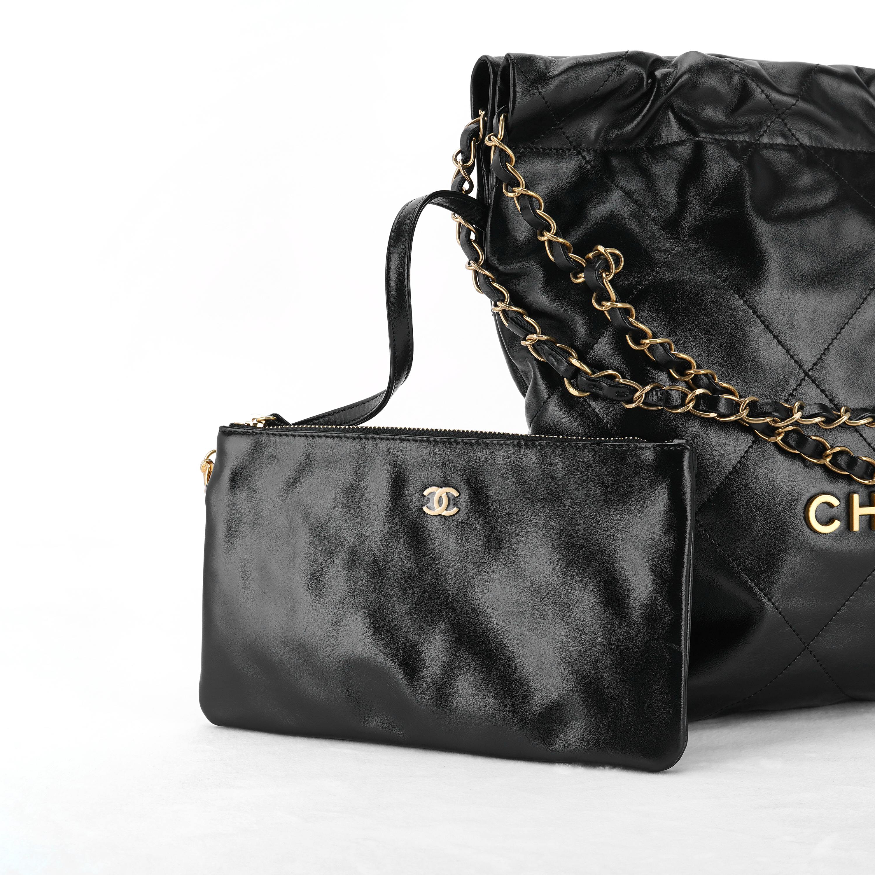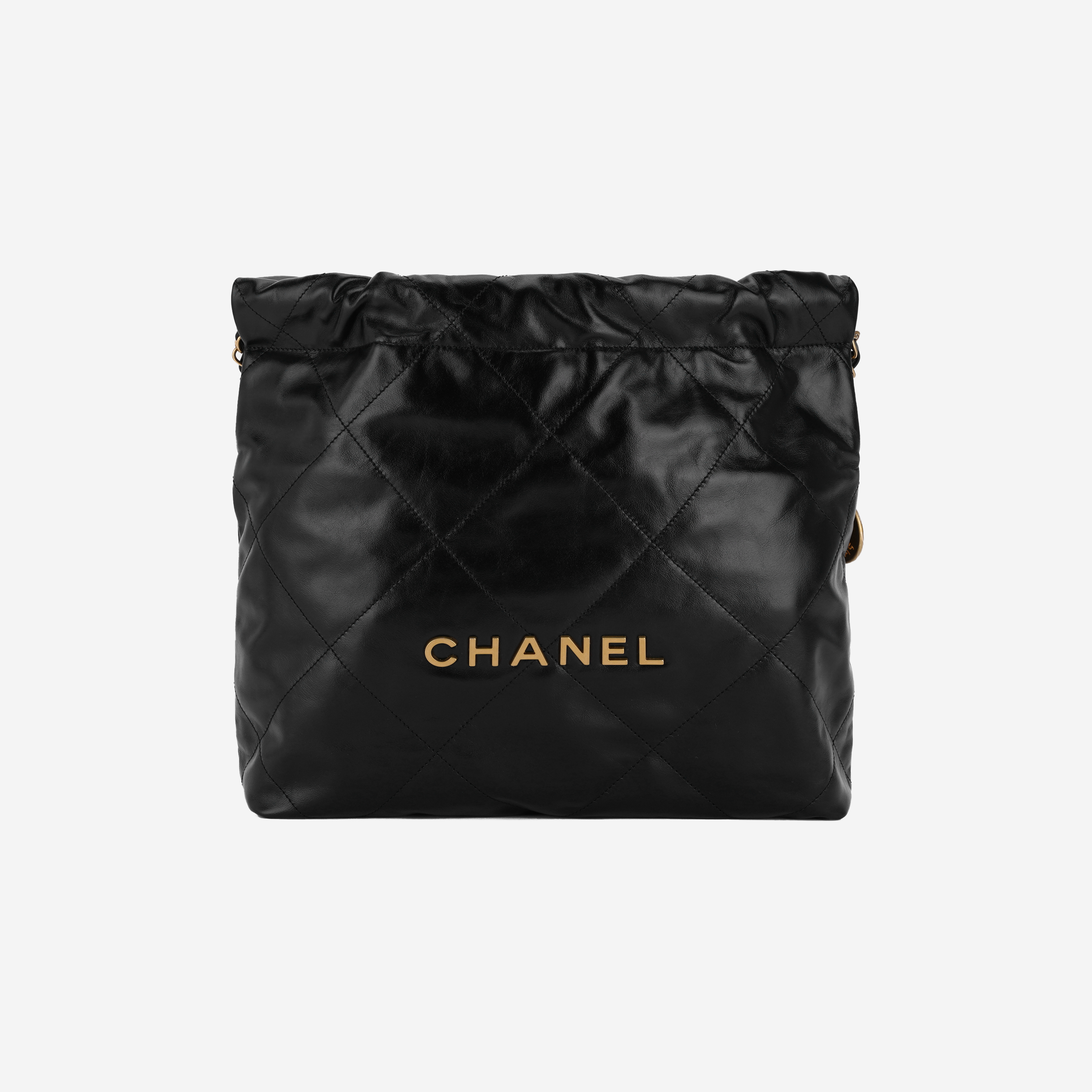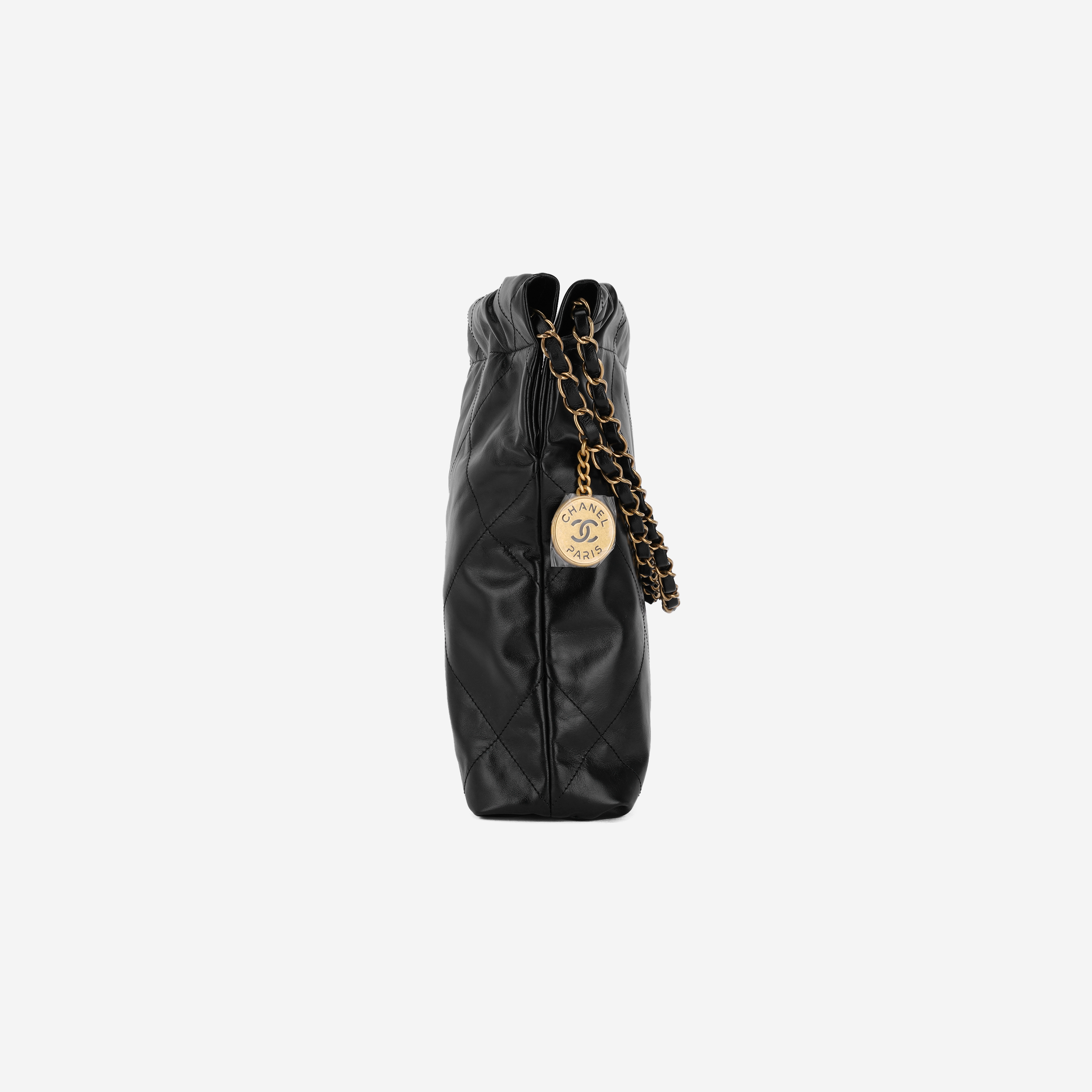 샤넬 22 스몰 핸드백 샤이니 카프스킨 & 골드 메탈 블랙