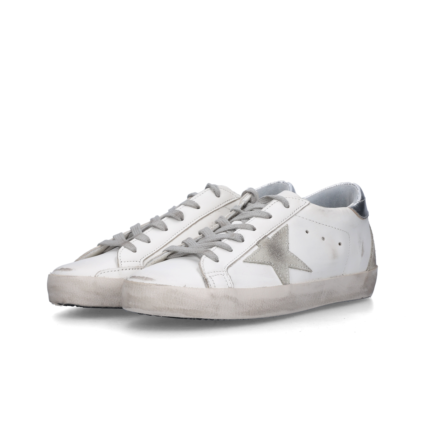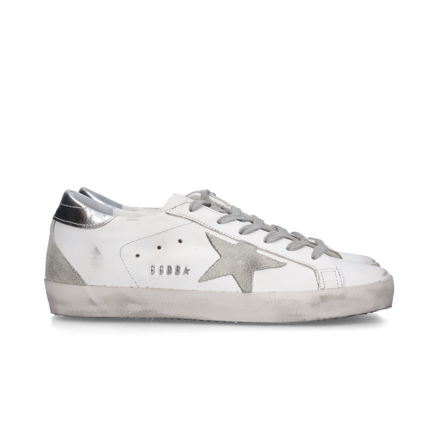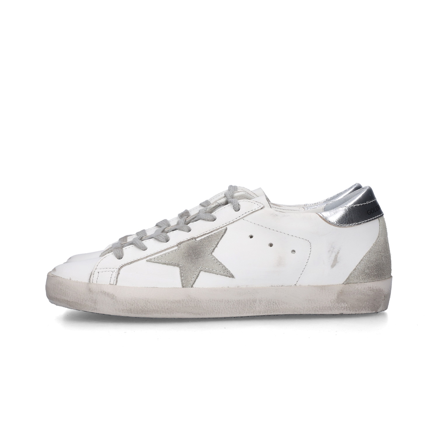 (W) Golden Goose Superstar White Silver Heel Tab Sneakers