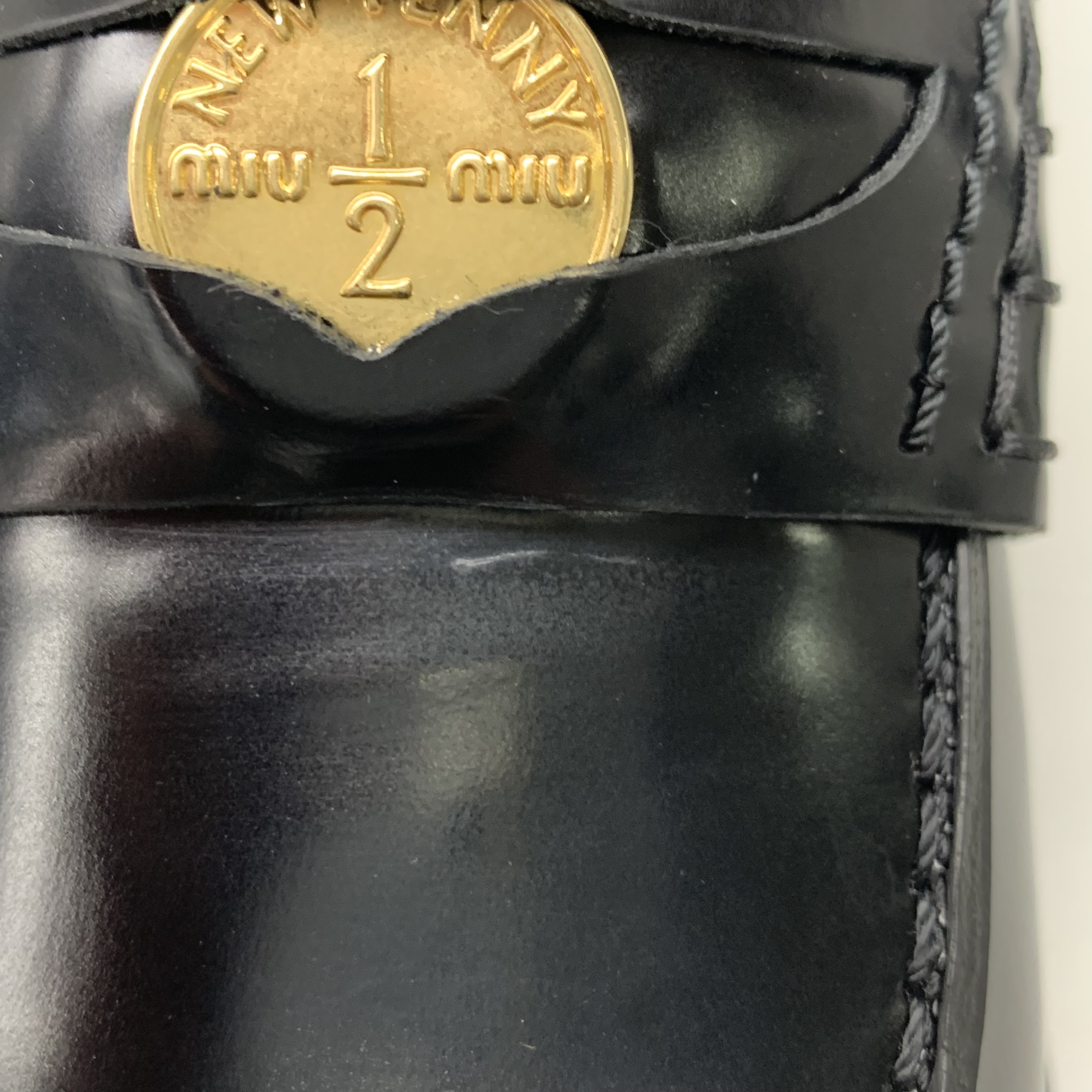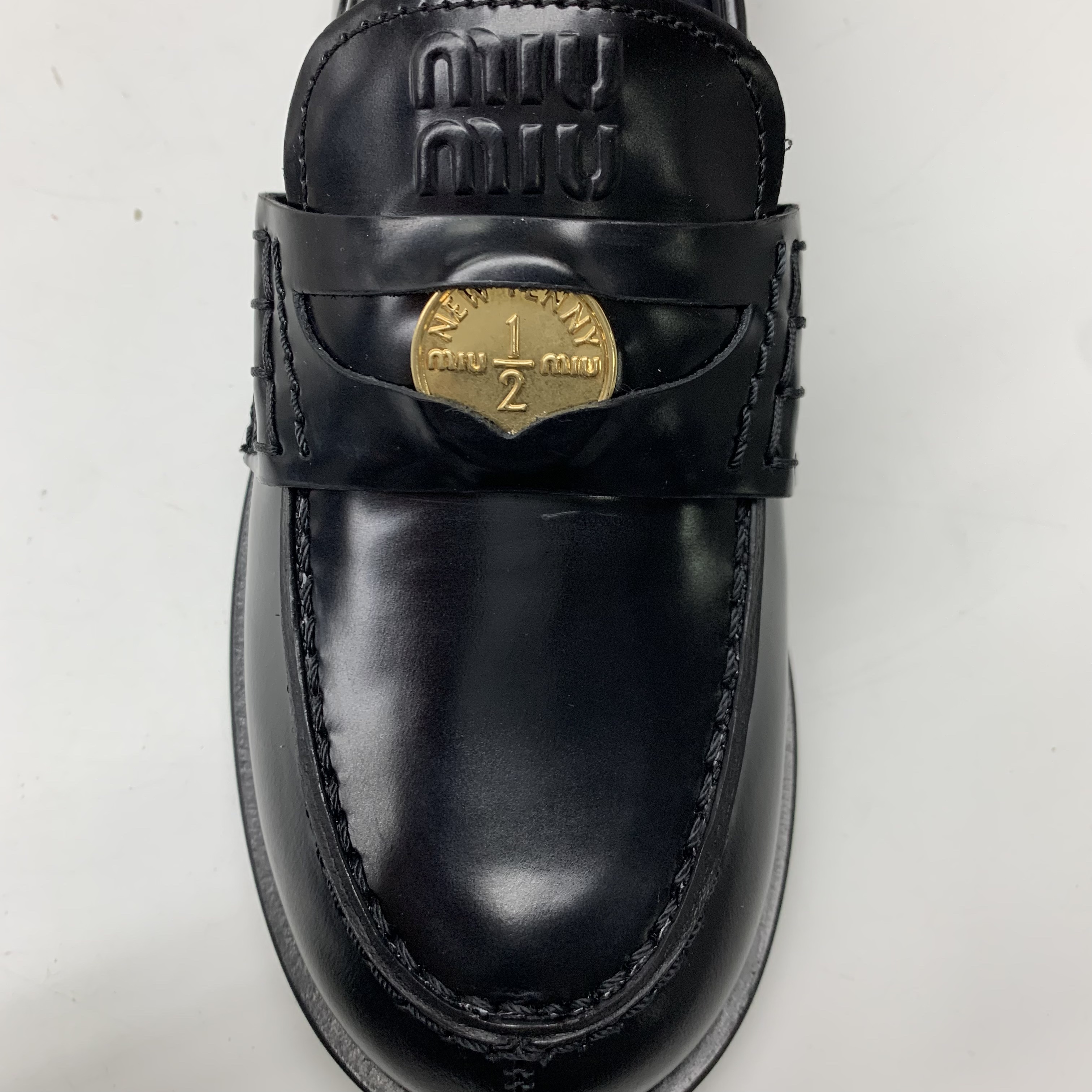 (W) Miu Miu Leather Penny Loafers Black 95점