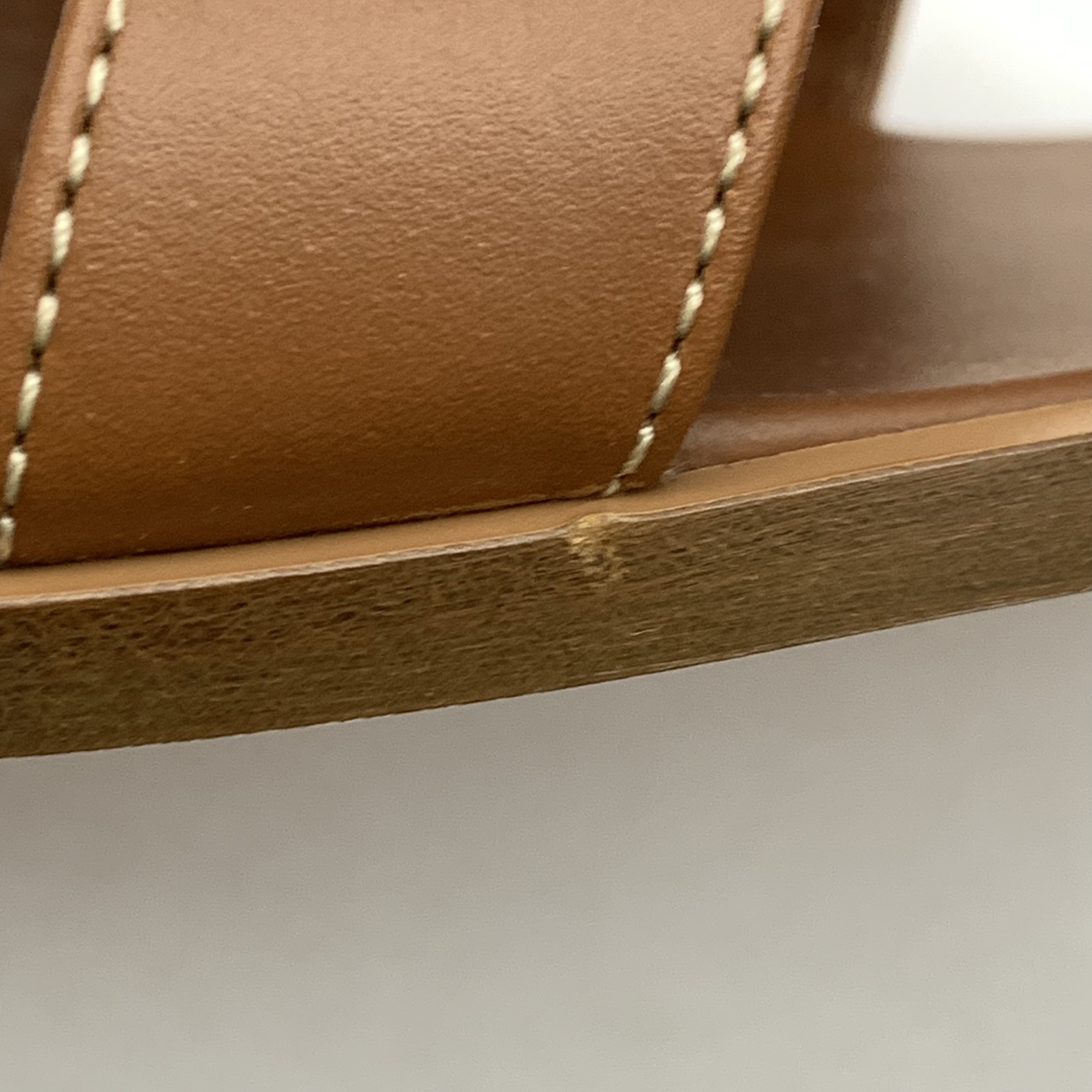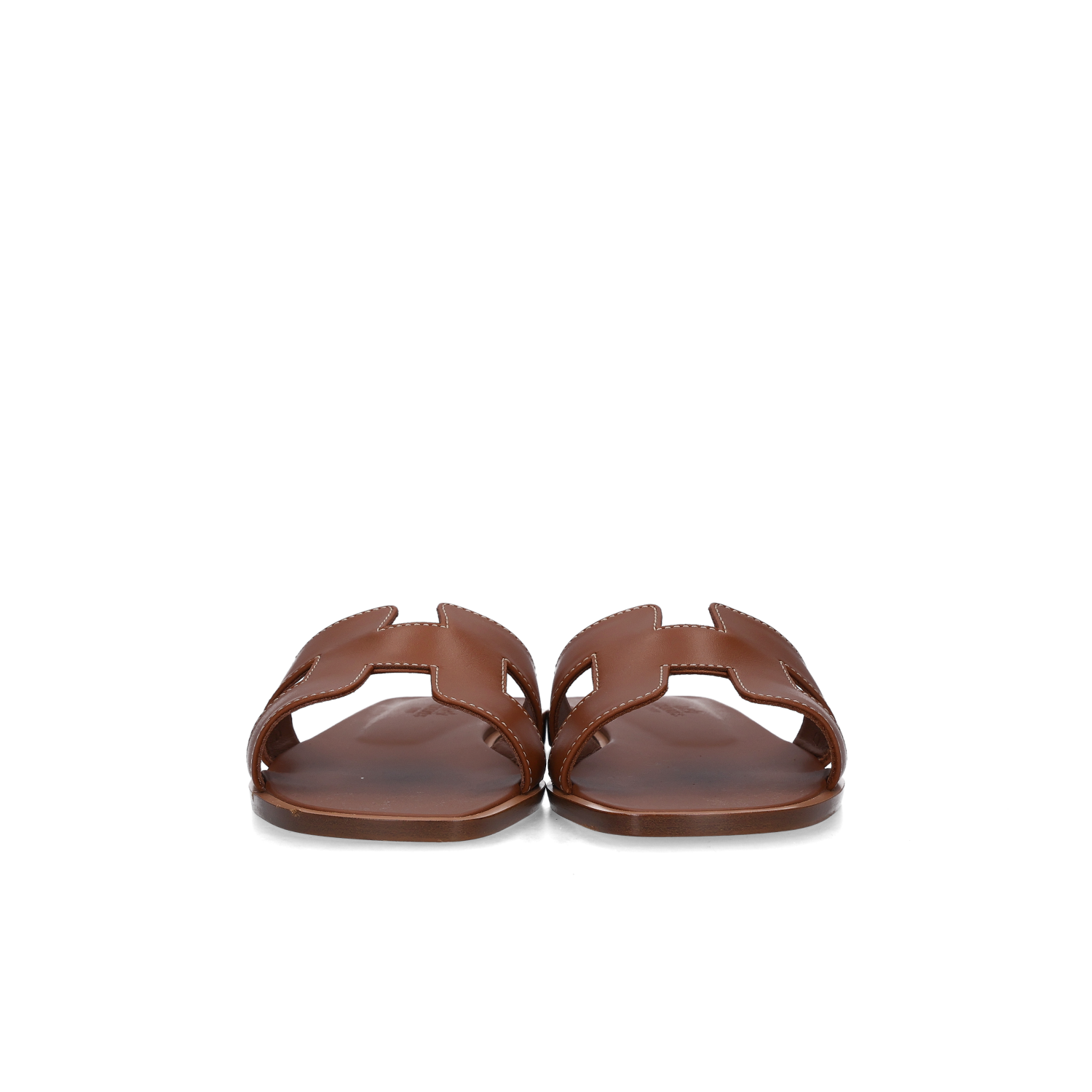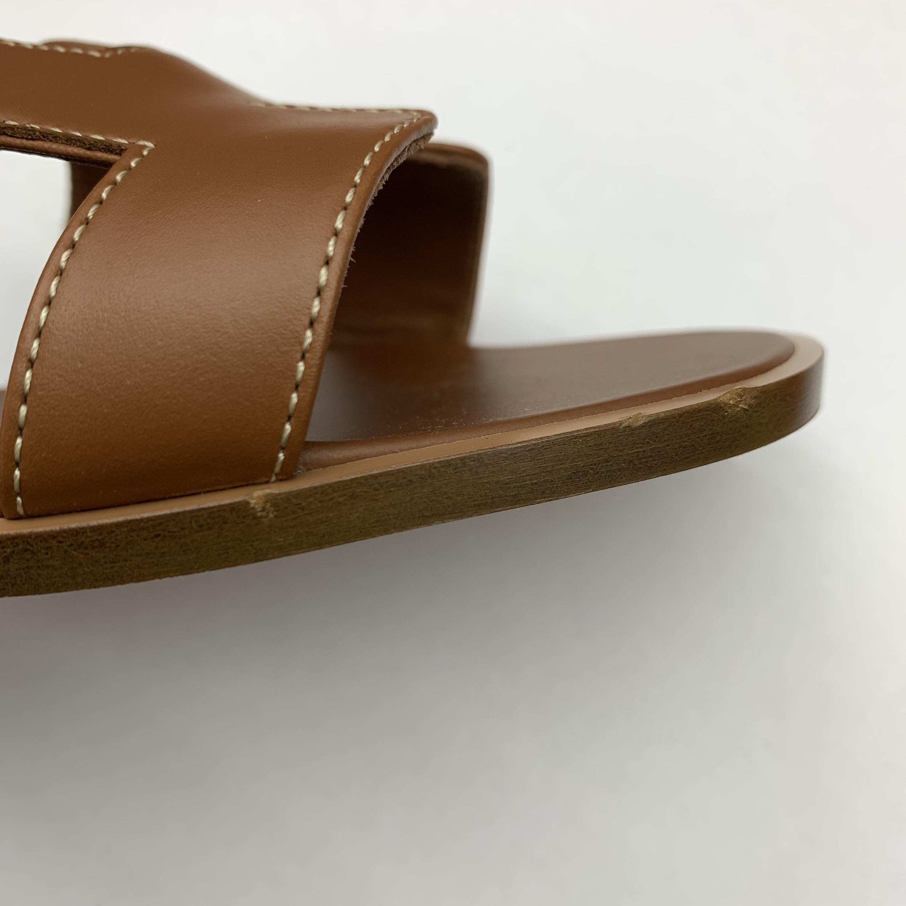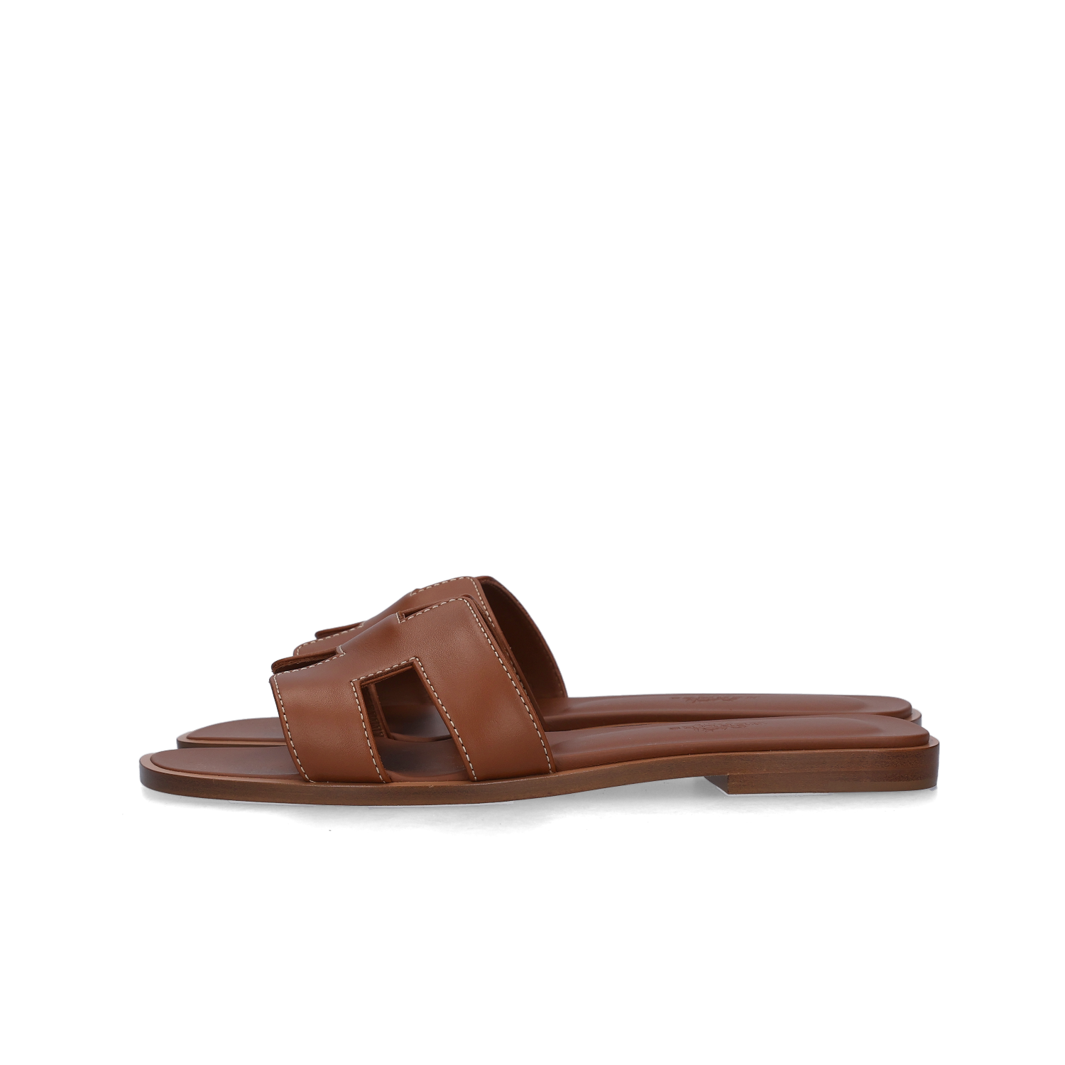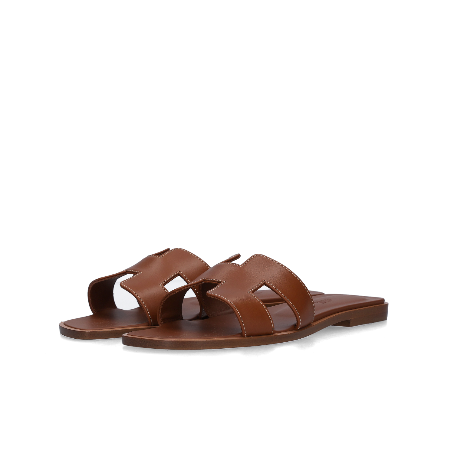 (W) Hermes Oran Sandal Calfskin & Gold Piqures Ecrues