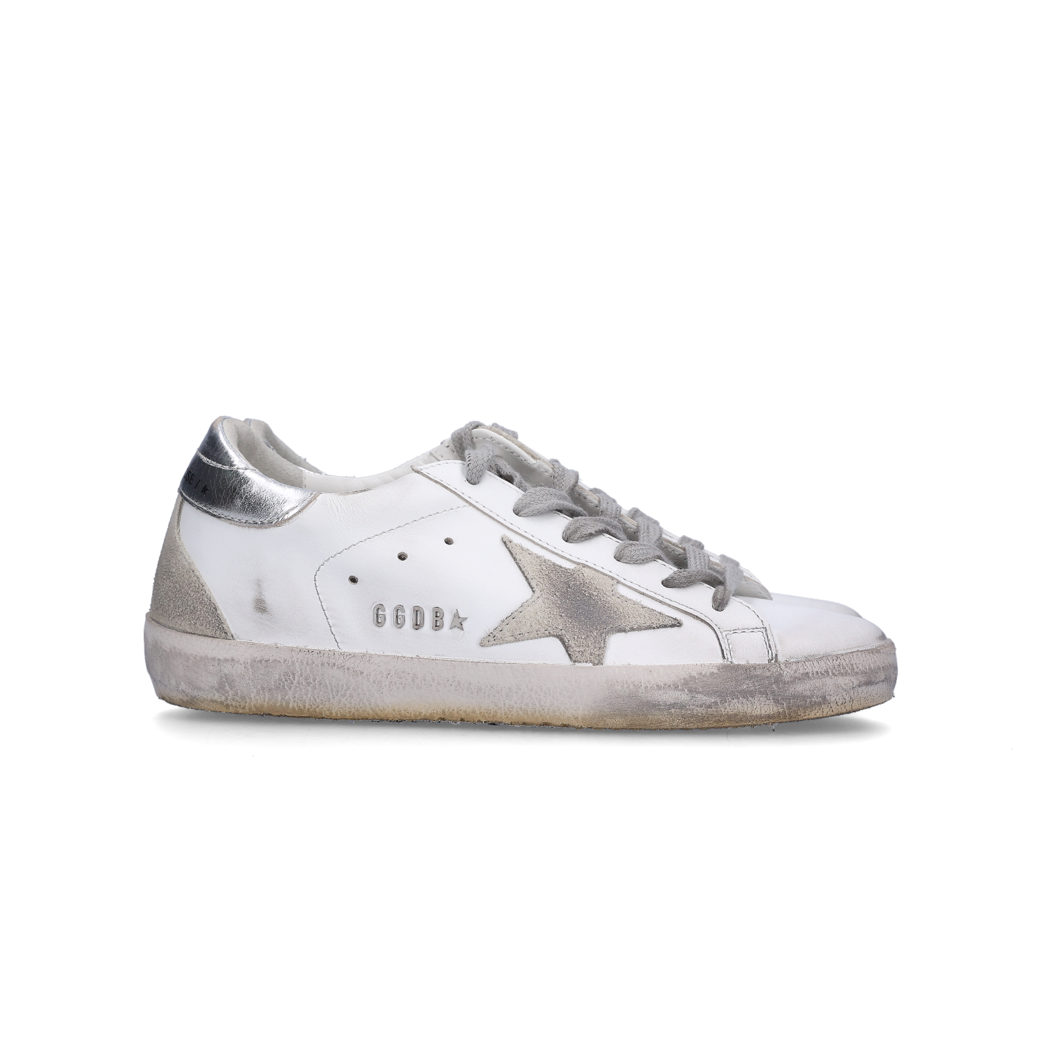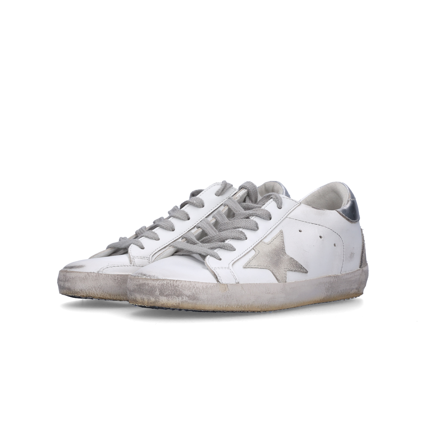 (W) Golden Goose Superstar White Silver Heel Tab Sneakers