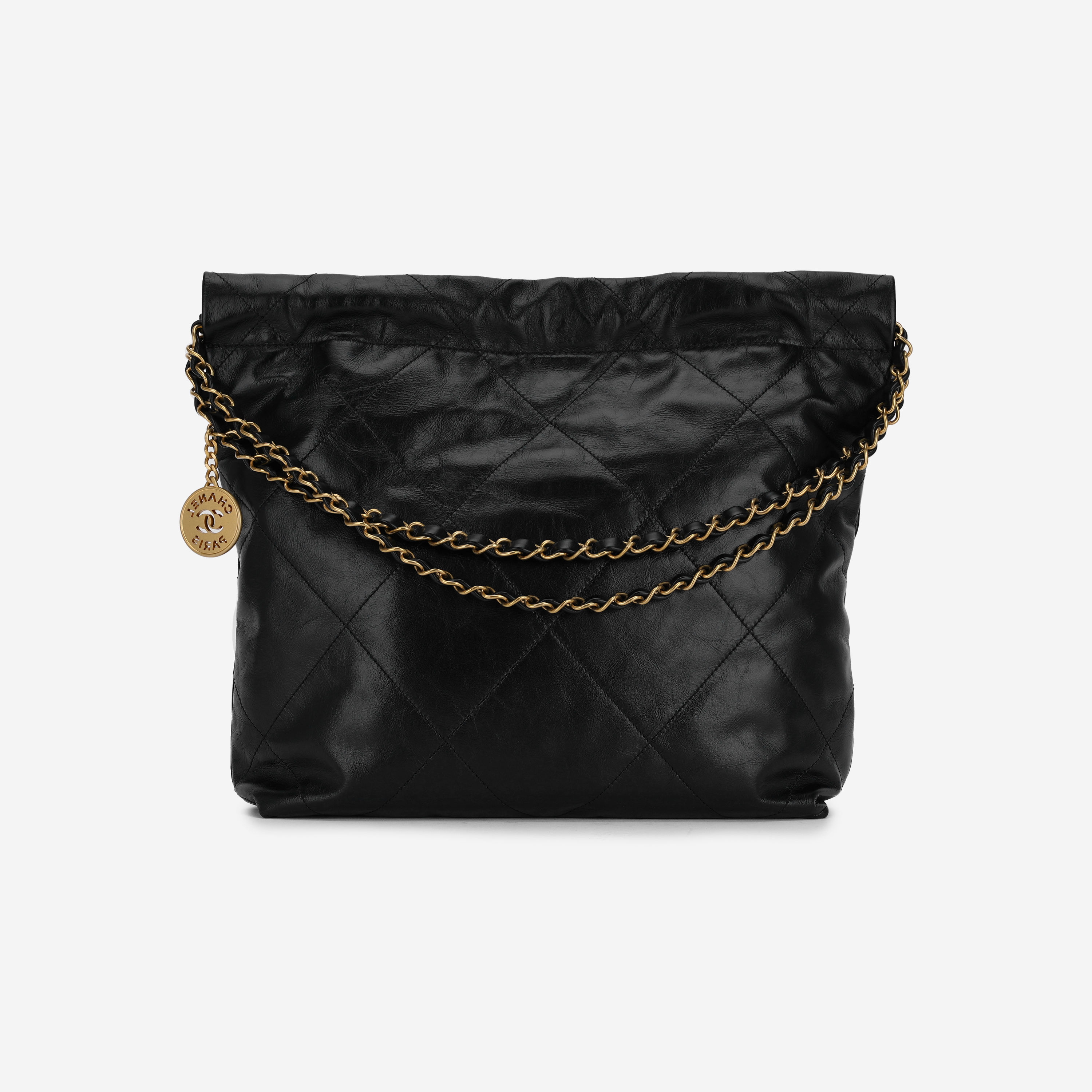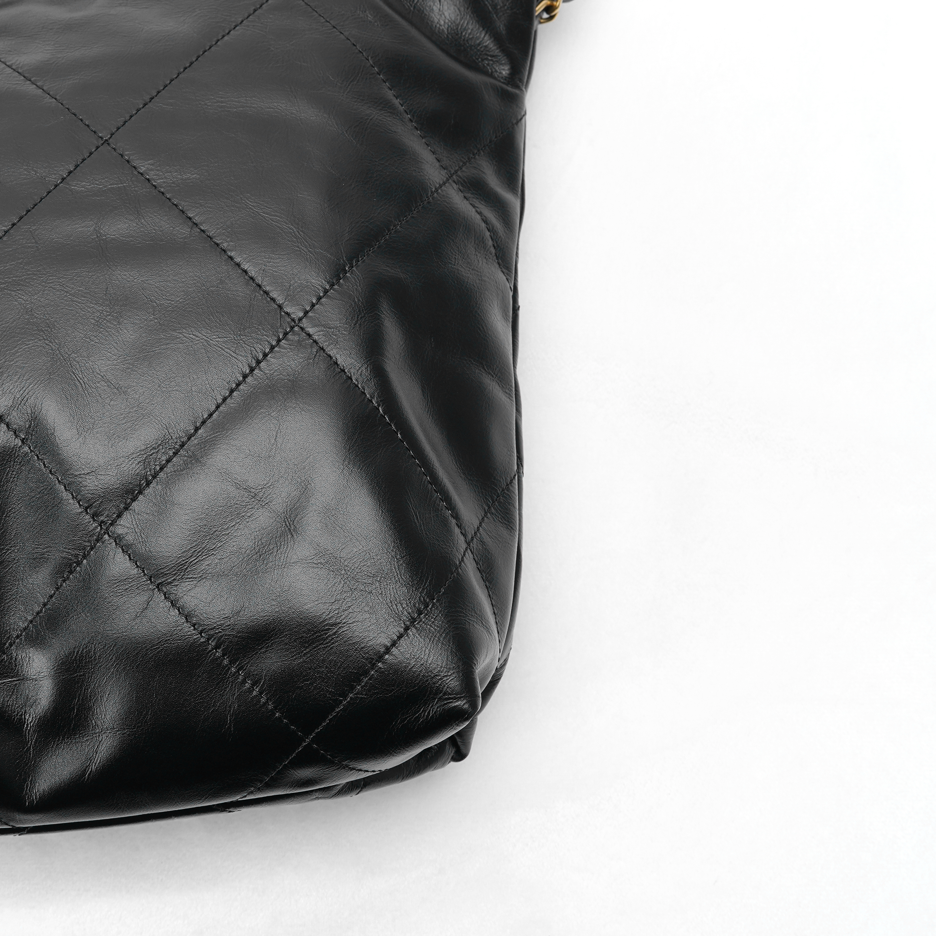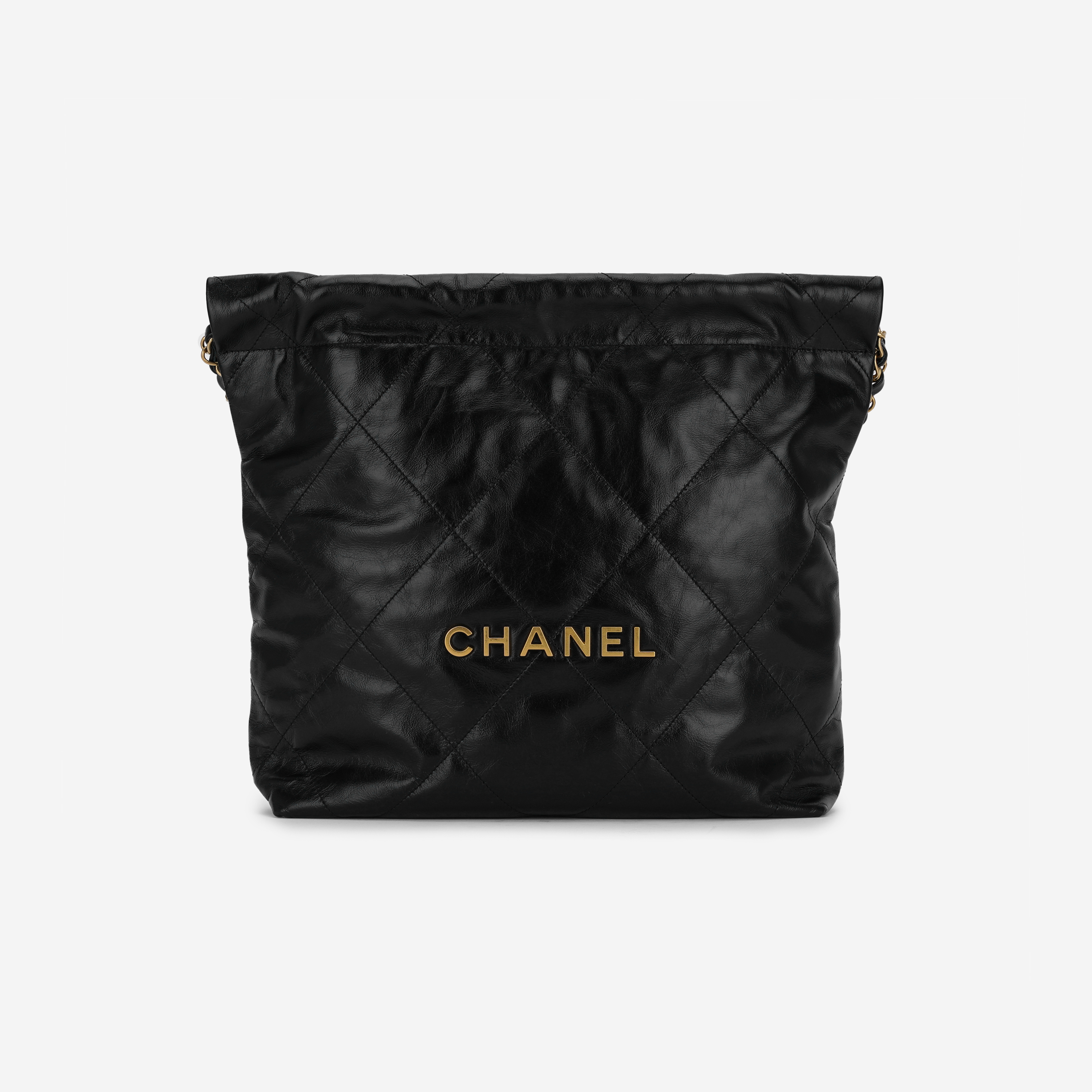 샤넬 22 스몰 핸드백 샤이니 카프스킨 & 골드 메탈 블랙