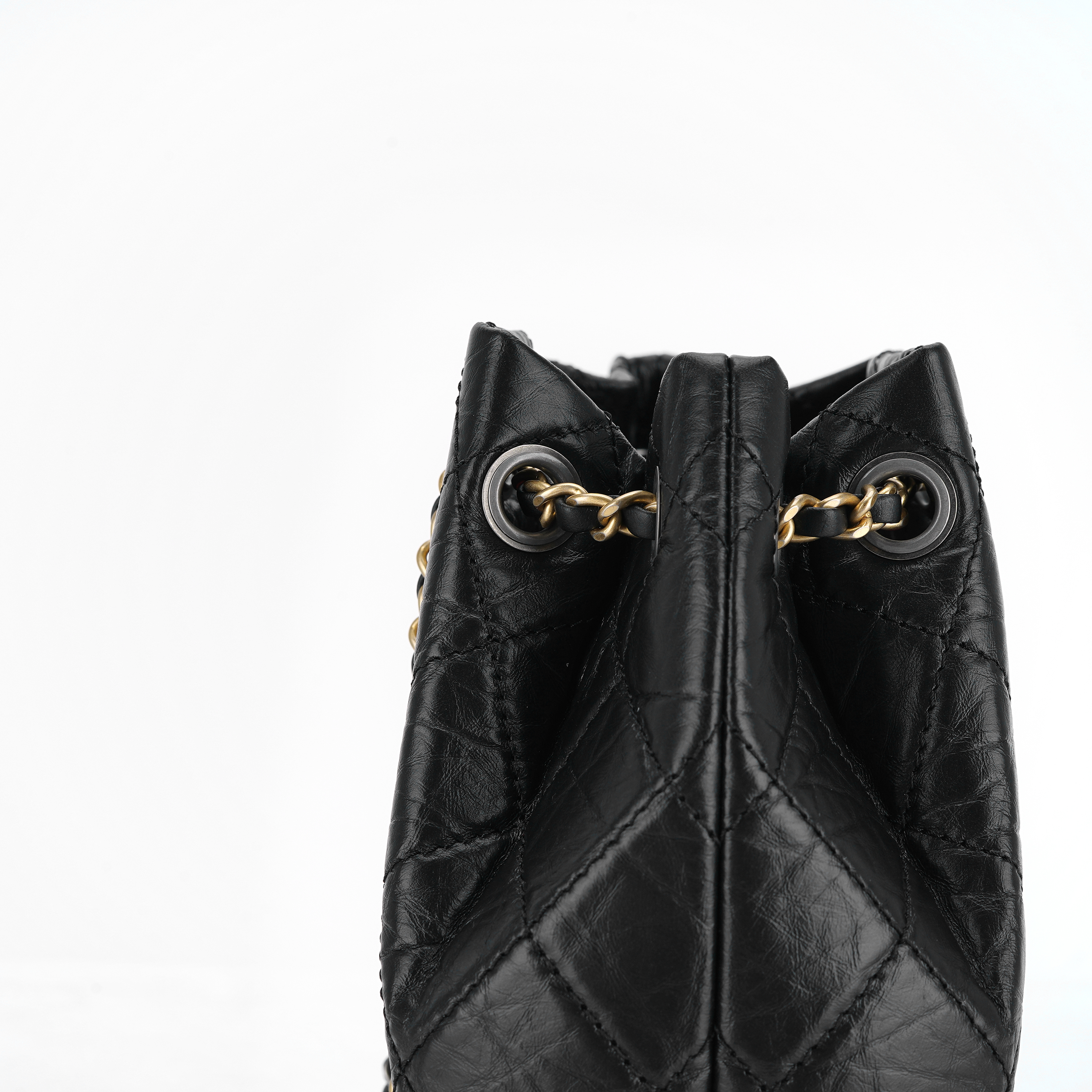 Chanel Small Gabrielle Backpack Aged Calfskin & Gold Silver Black