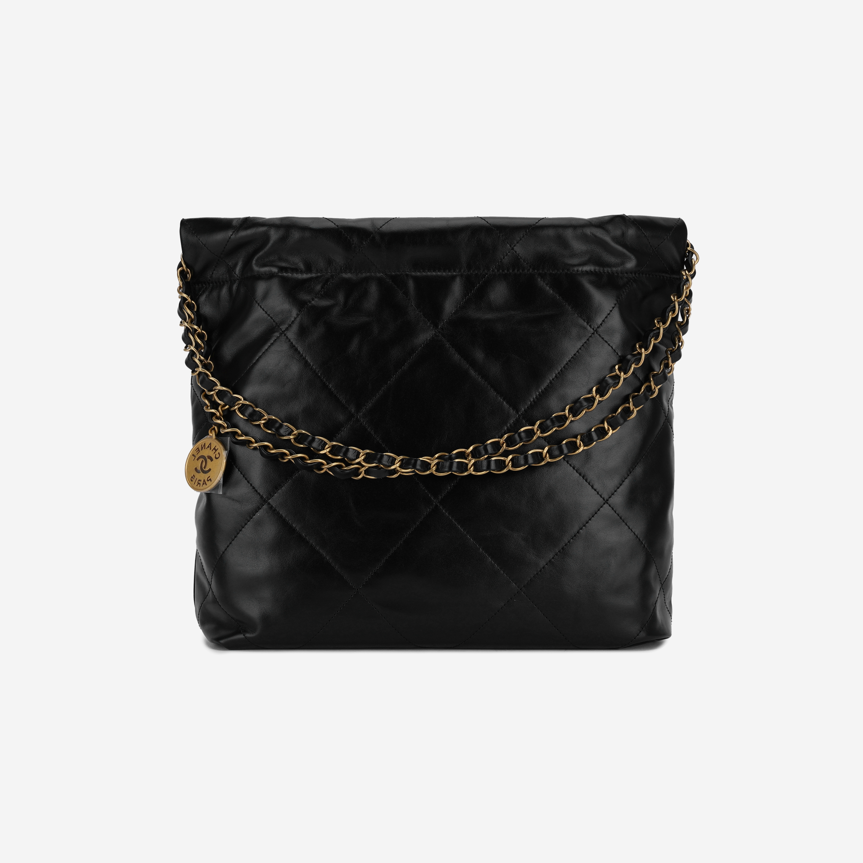 샤넬 22 스몰 핸드백 샤이니 카프스킨 & 골드 메탈 블랙