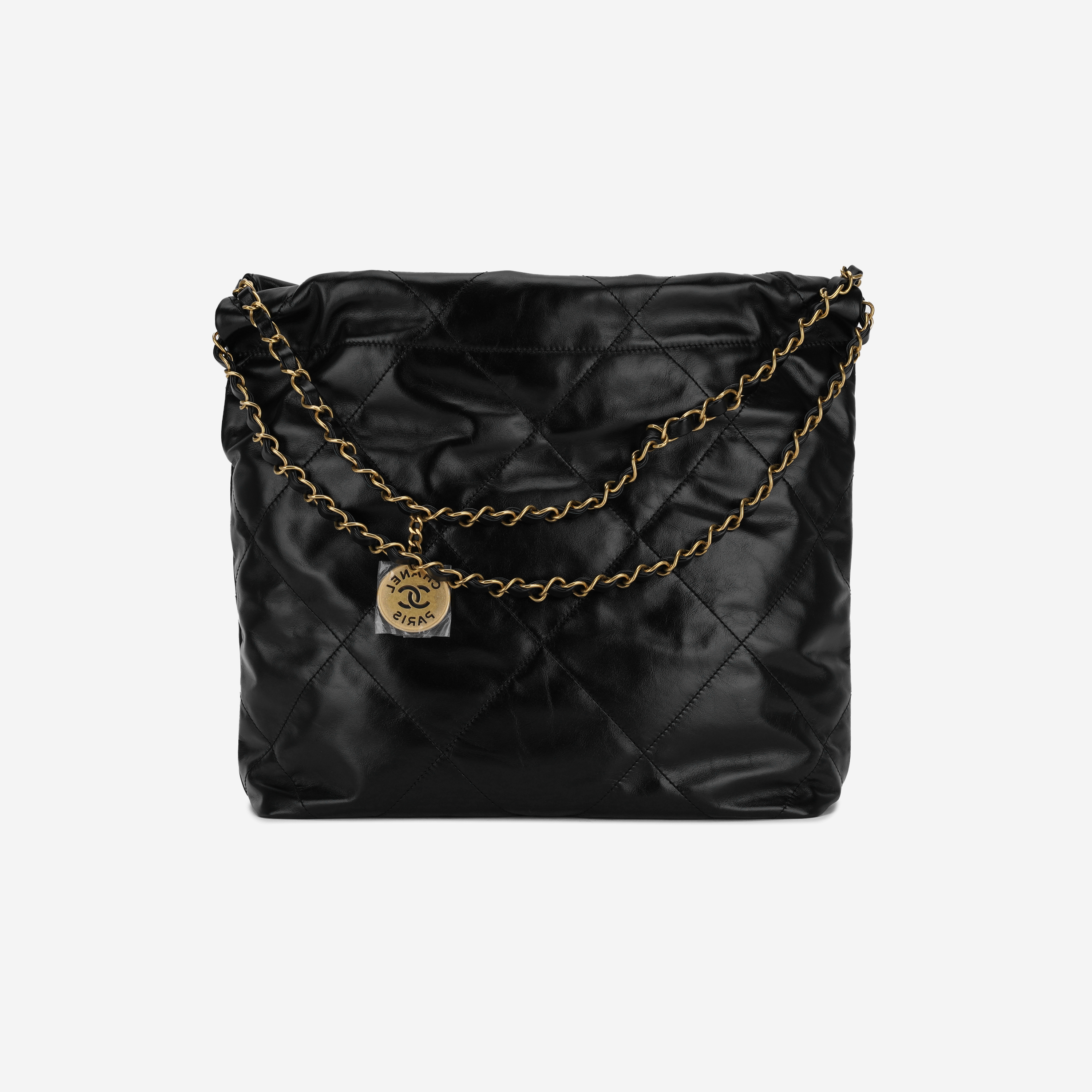 샤넬 22 스몰 핸드백 샤이니 카프스킨 & 골드 메탈 블랙
