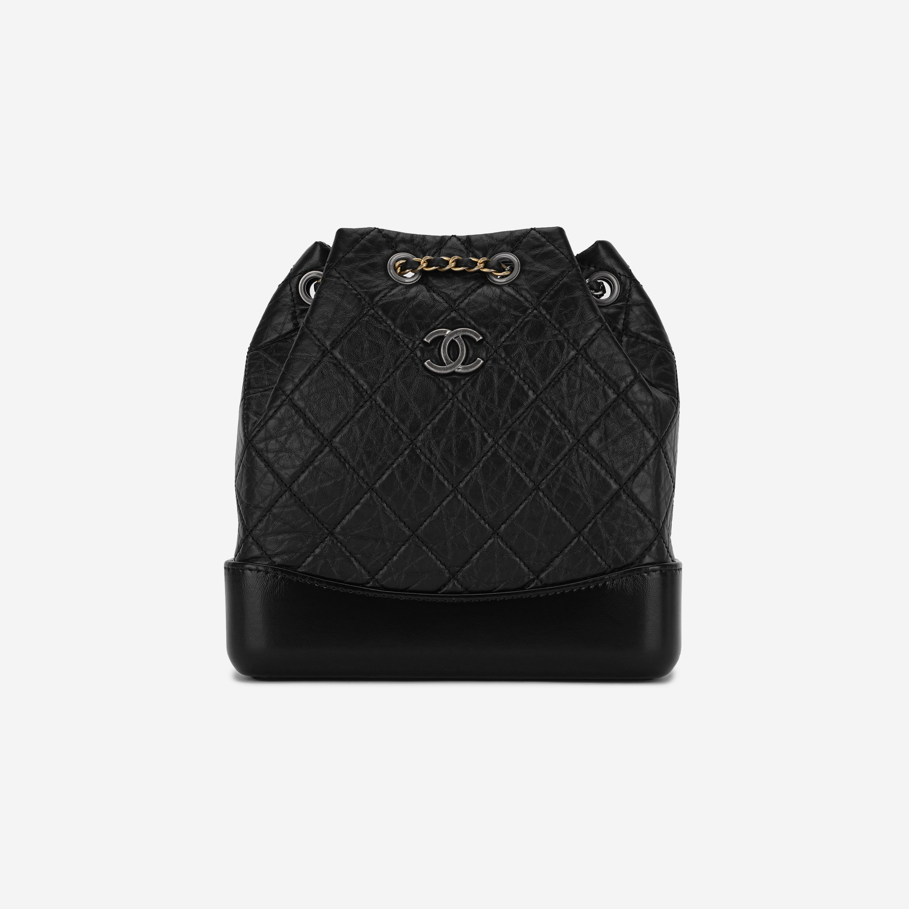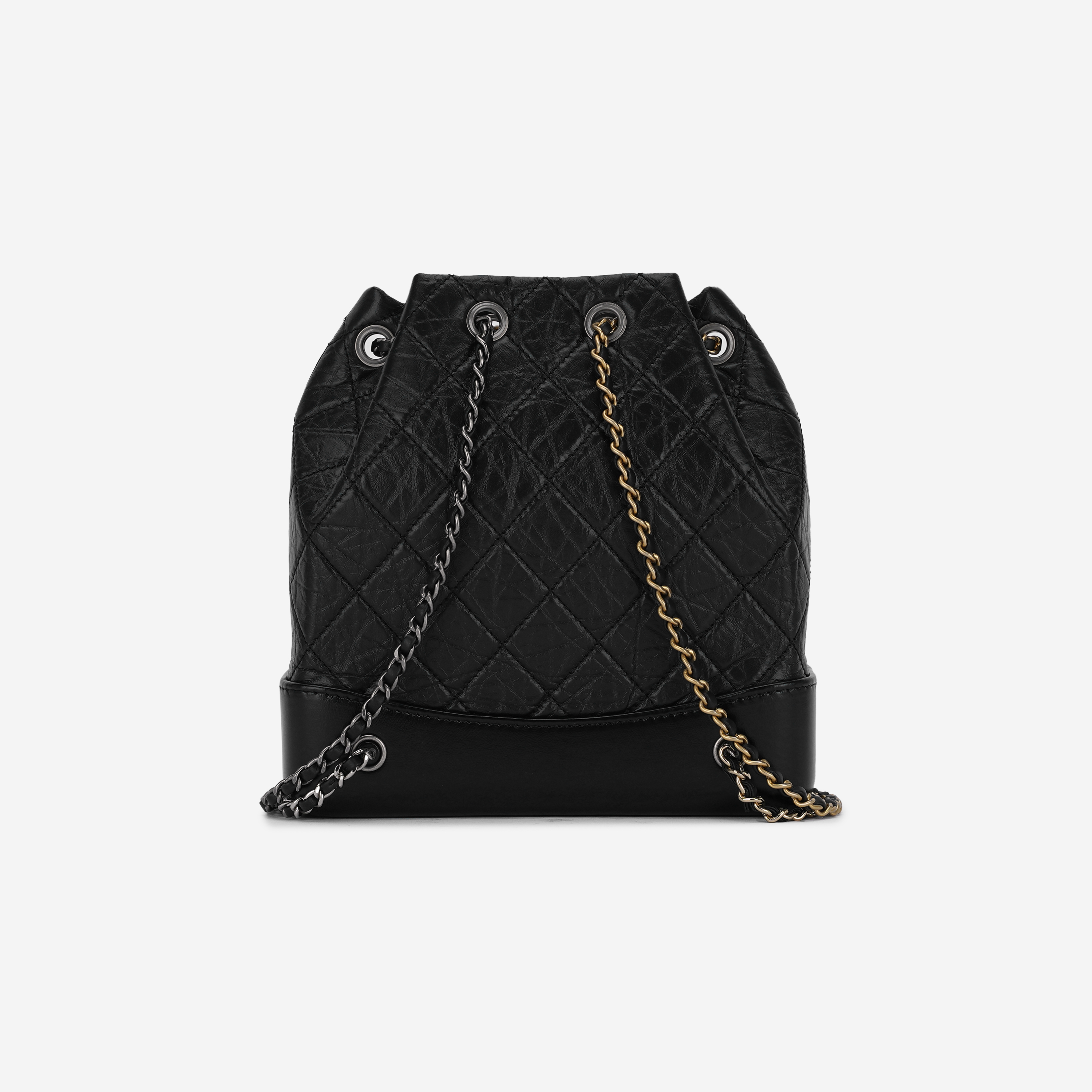 Chanel Small Gabrielle Backpack Aged Calfskin & Gold Silver Black