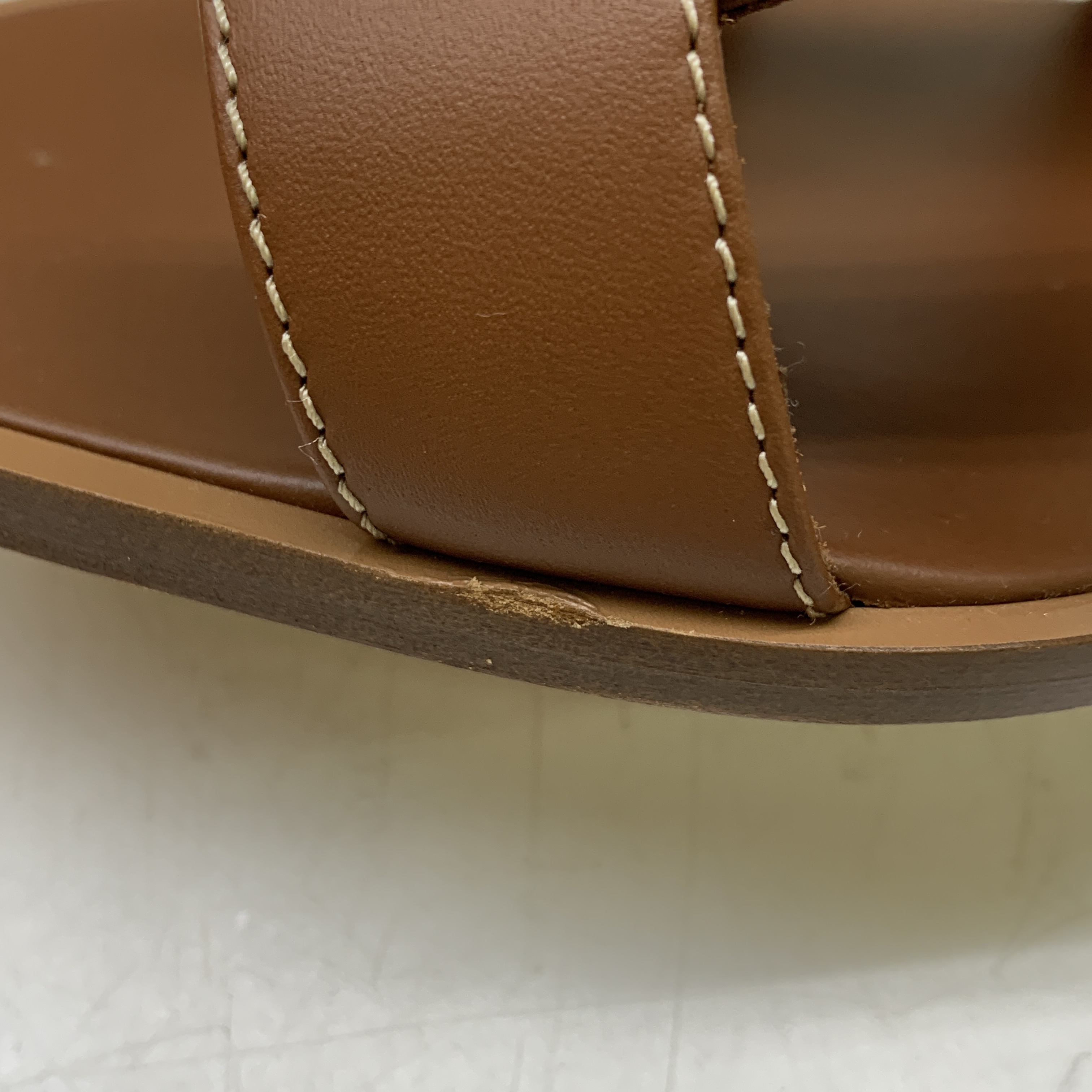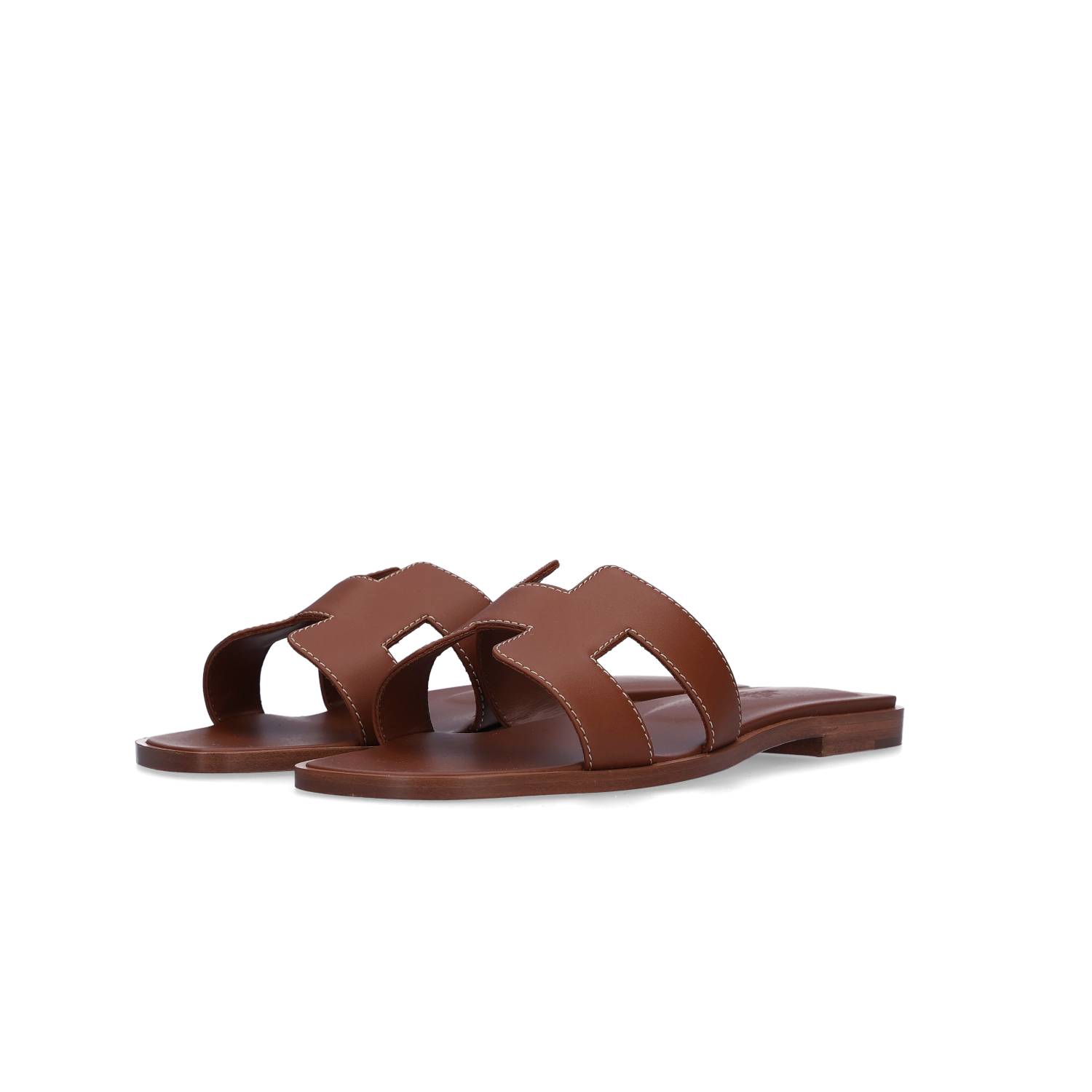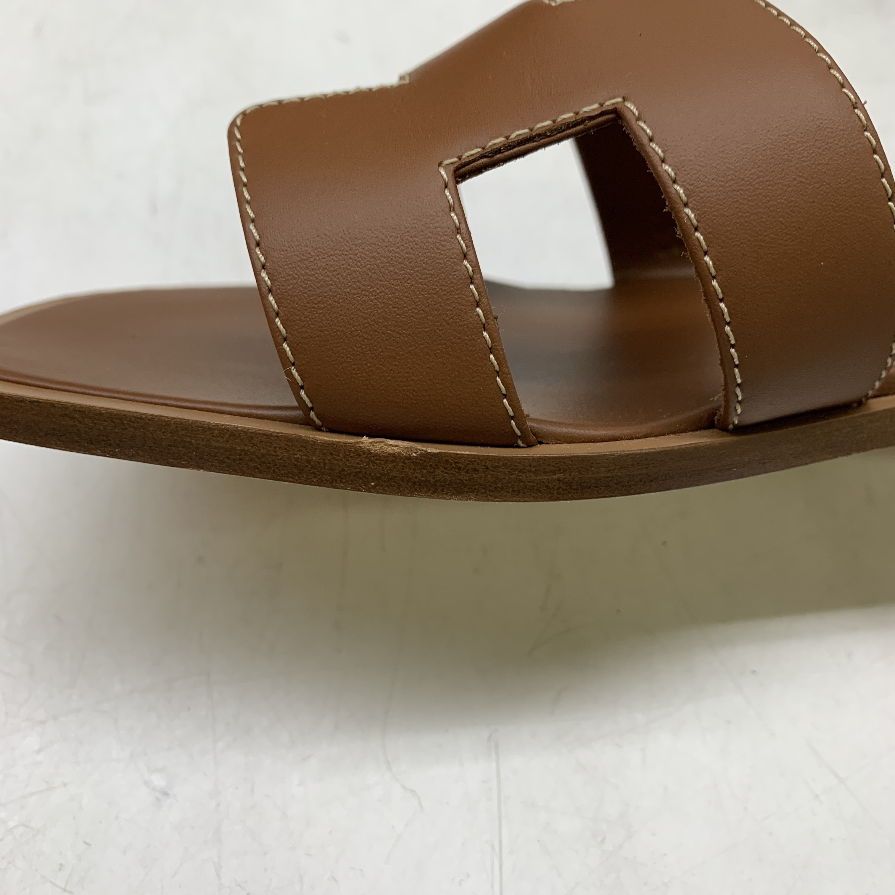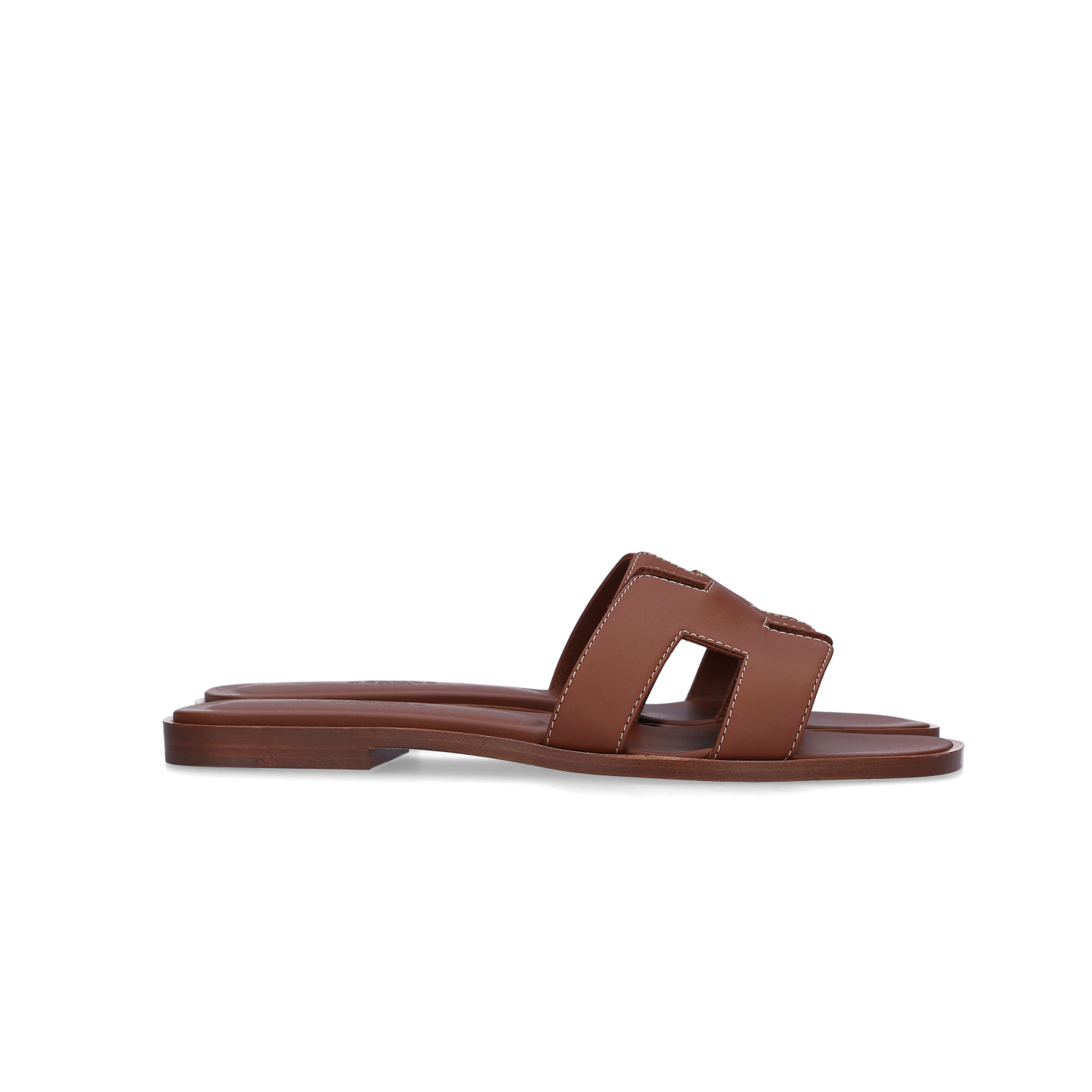 (W) Hermes Oran Sandal Calfskin & Gold Piqures Ecrues