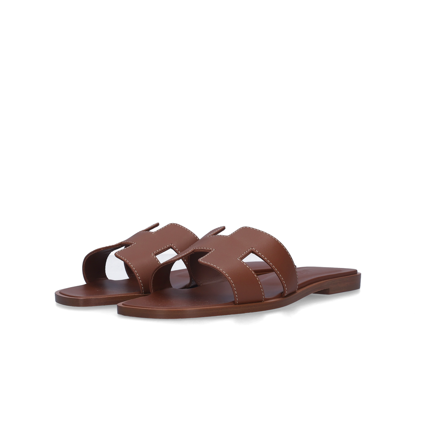 (W) 에르메스 오란 샌들 카프스킨 & 골드 피케르 에크루즈