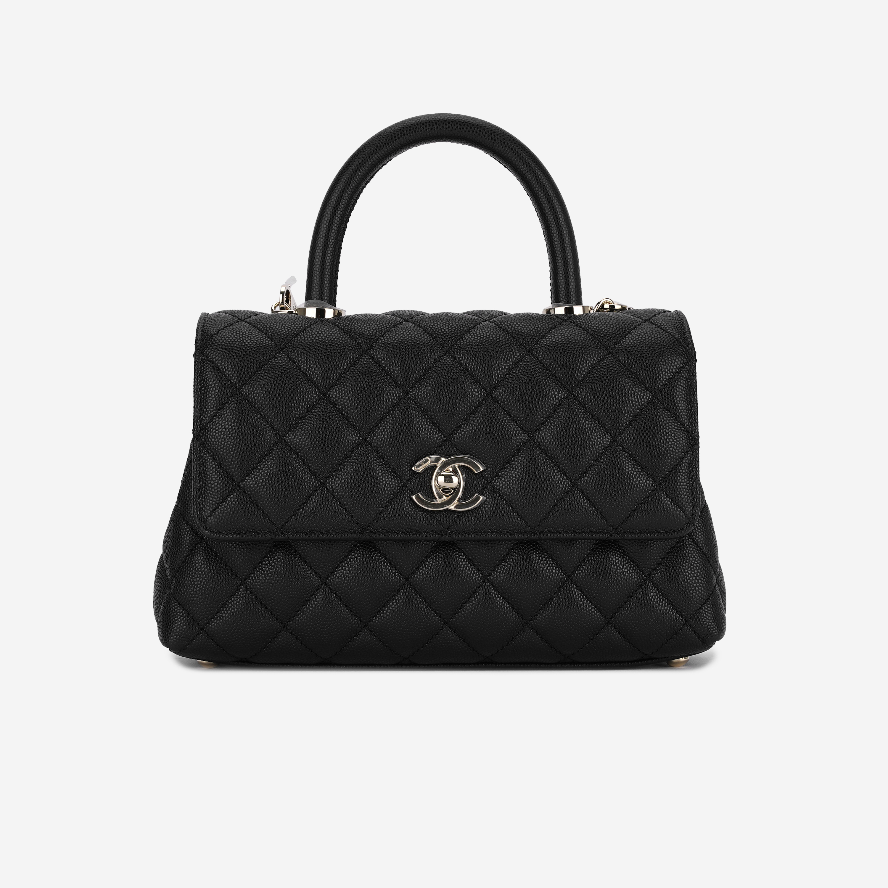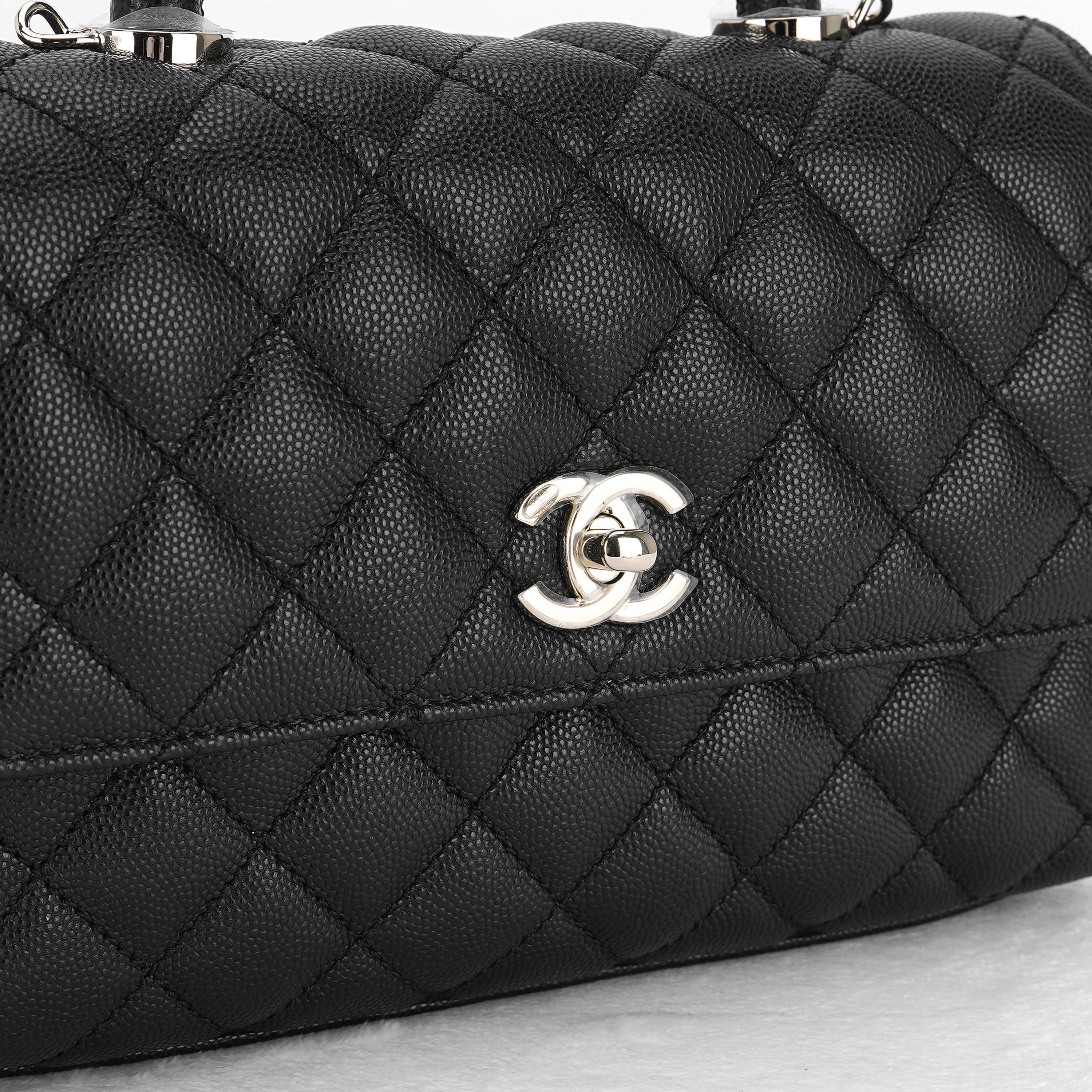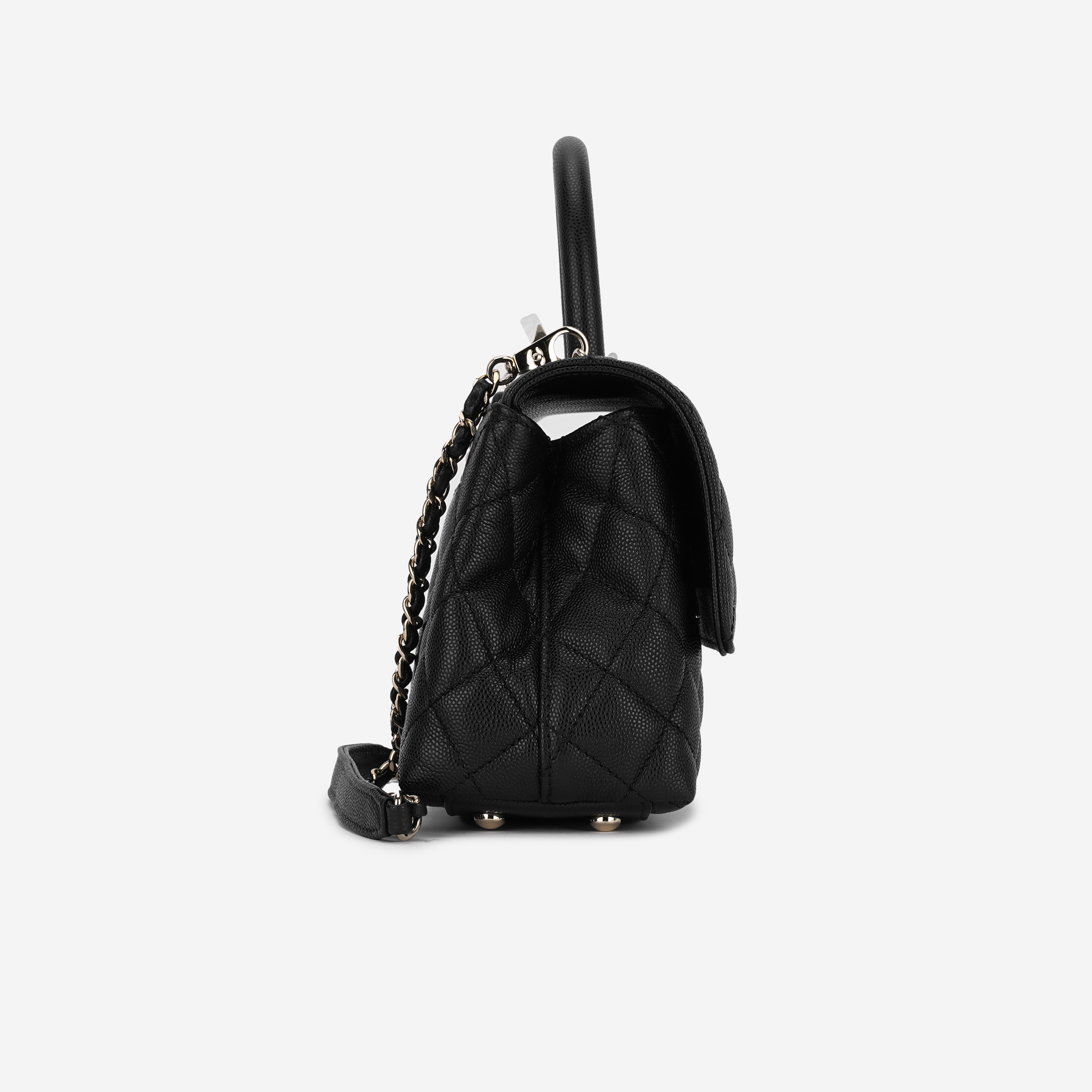 샤넬 핸들 장식의 스몰 플랩백 그레인드 카프스킨 & 골드 메탈 블랙