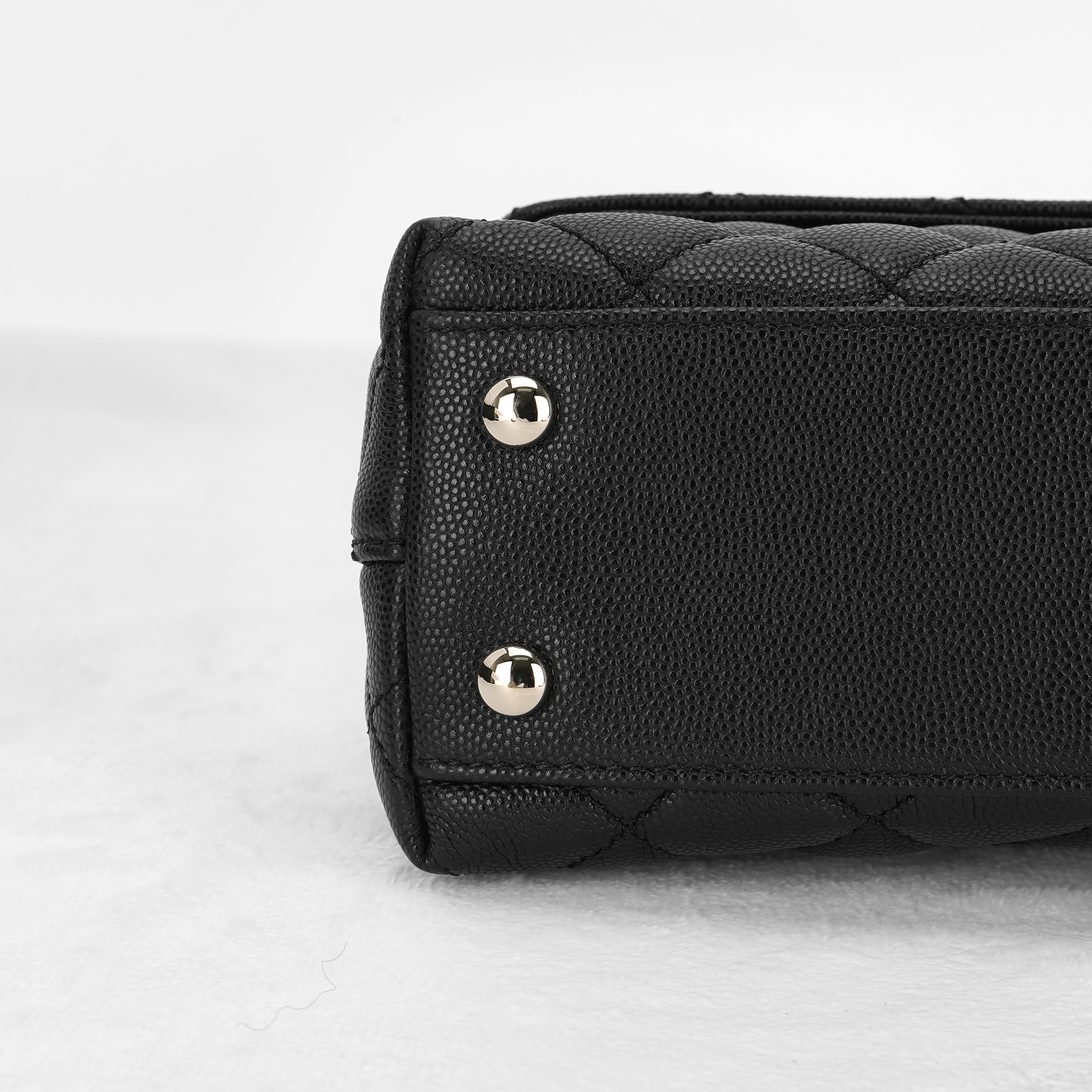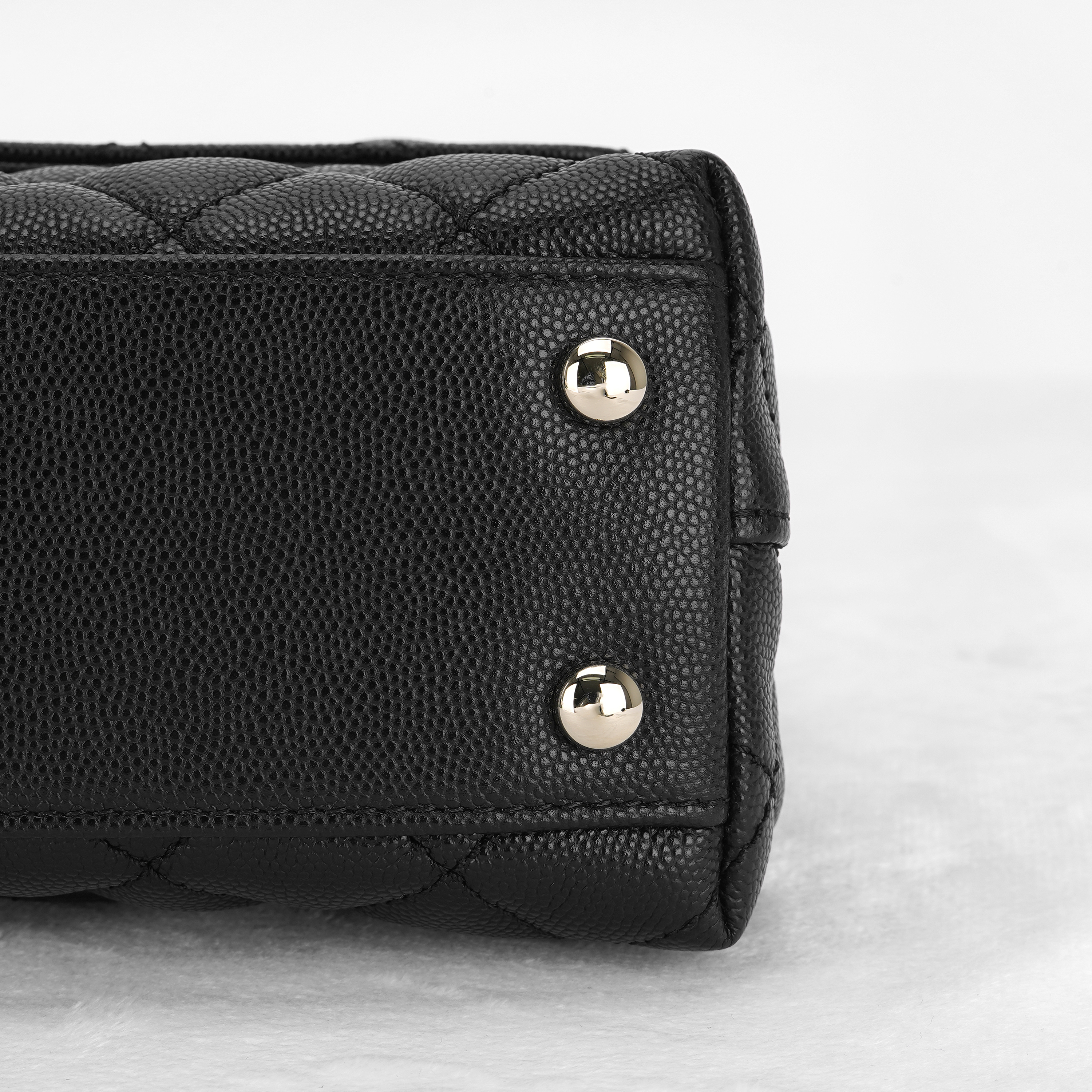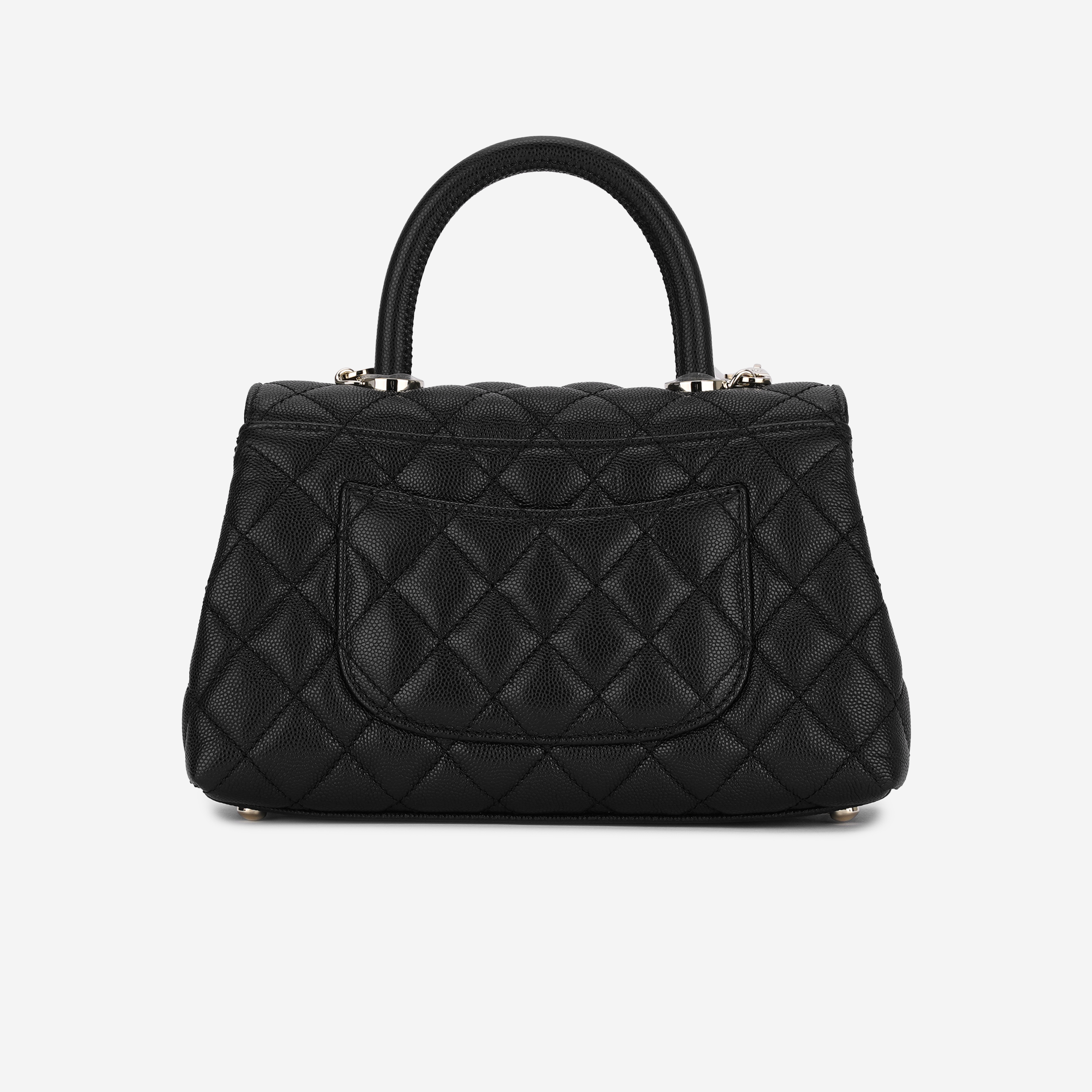샤넬 핸들 장식의 스몰 플랩백 그레인드 카프스킨 & 골드 메탈 블랙