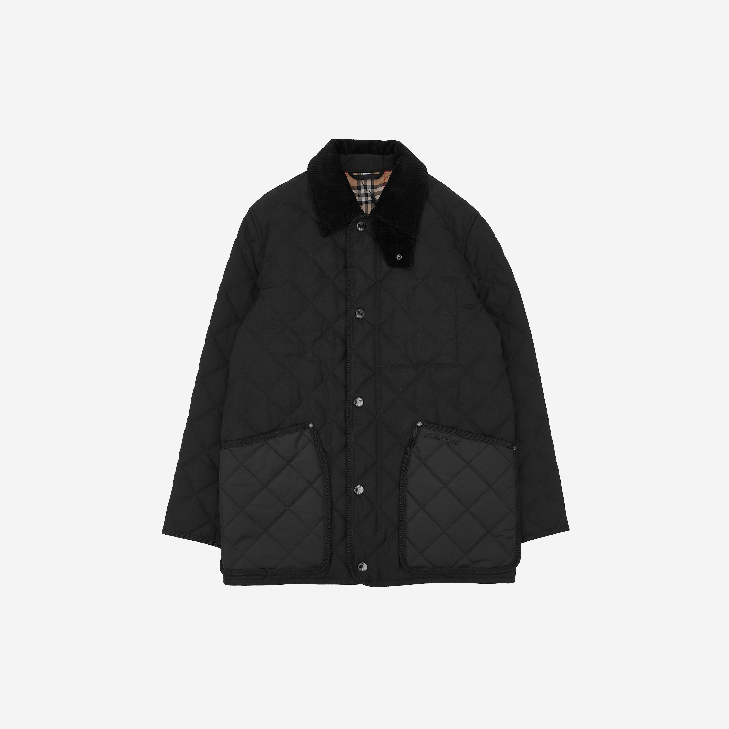 버버리 코듀로이 칼라 다이아몬드 퀼티드 반 자켓 블랙