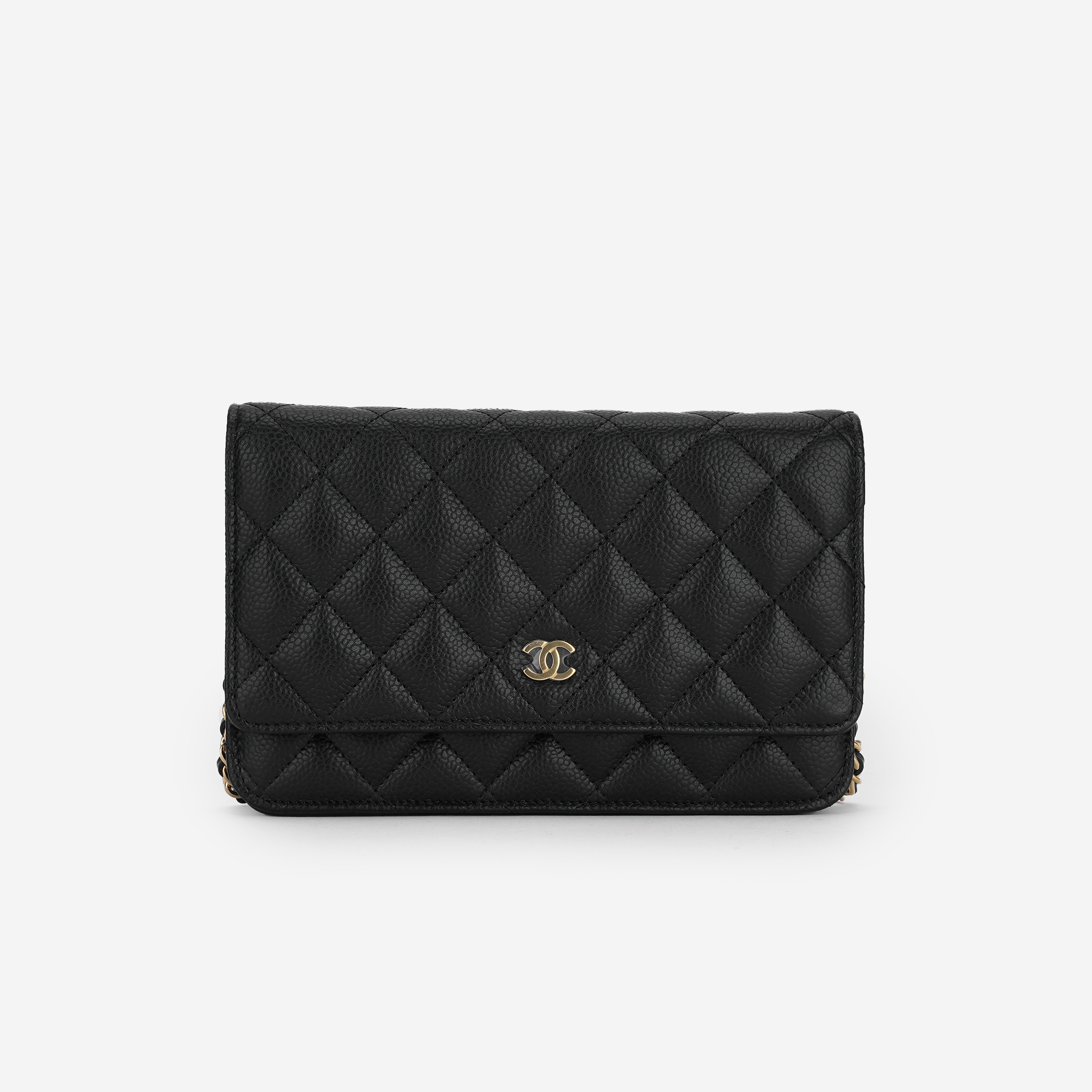 샤넬 클래식 체인 지갑 그레인드 카프스킨 & 골드 메탈 블랙